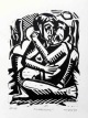 Tino Rex - UMARMUNG - OriginalLinolschnitt handsigniert 2003 tituliert - Handabzug - CHEMNITZER KÜNSTLERBUND - Verkocht