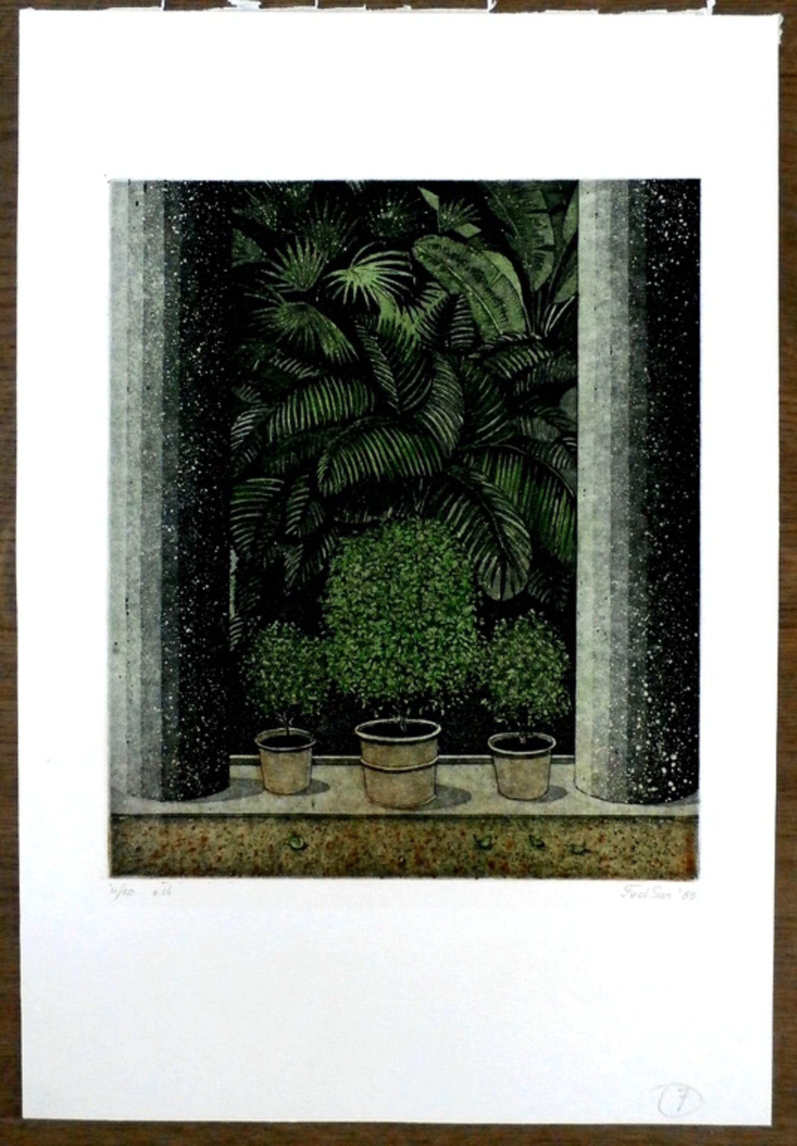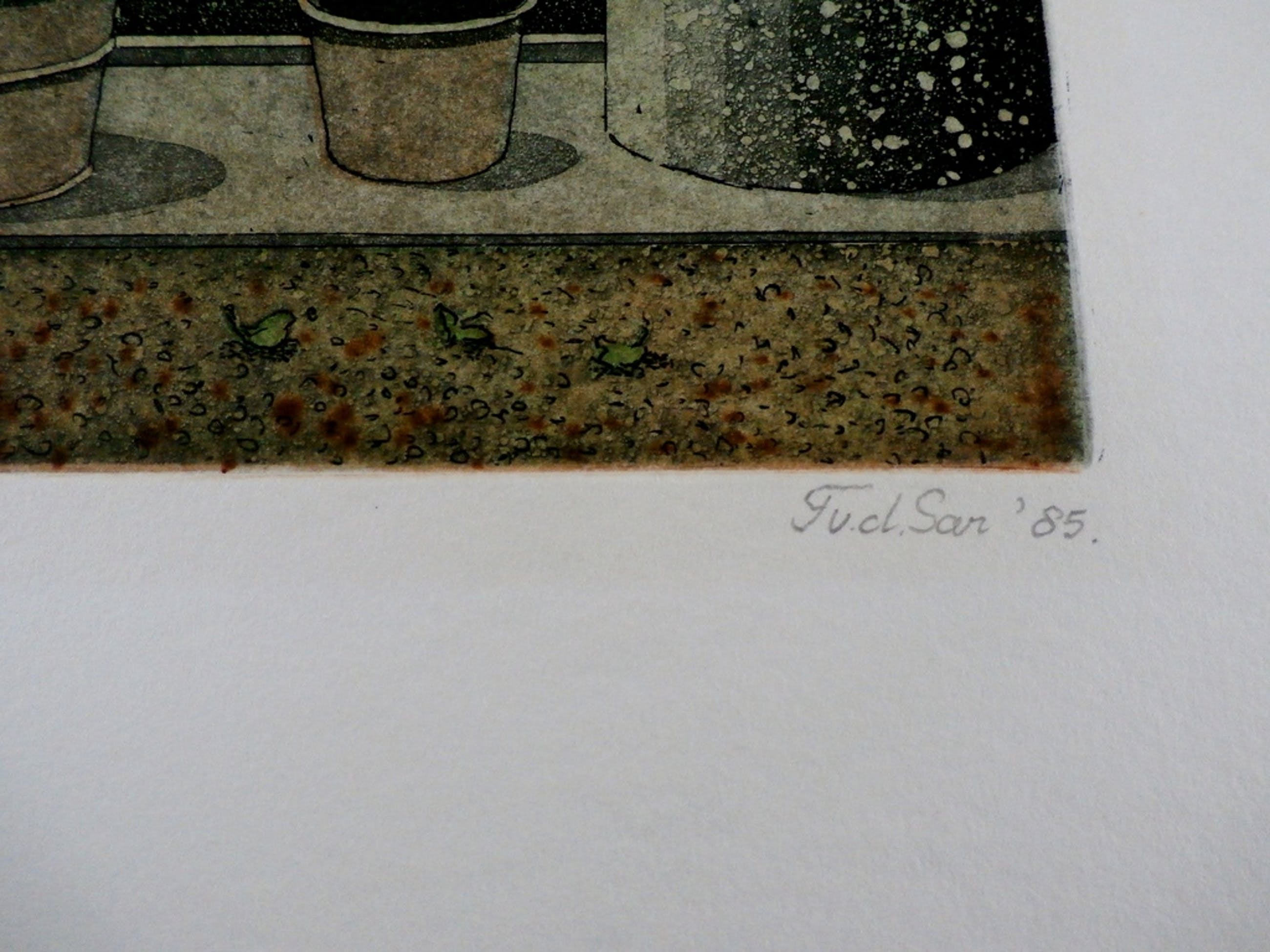 Tiny van der Sar - ets. Jaar: 1985. Nummer: 4/20 eigen druk. Afmetingen blad: h44 x b30 cm; Afmetingen voorstelling: h28 x b23,5 cm. Rechtsonder, met potlood, gesigneerd door de kunstenaar. Herkomst: collectie ABN AMRO. De authenticiteit van dit werk wordt volledig gegarandeerd. Een certificaat van echtheid kan, op aanvraag, worden meegestuurd.