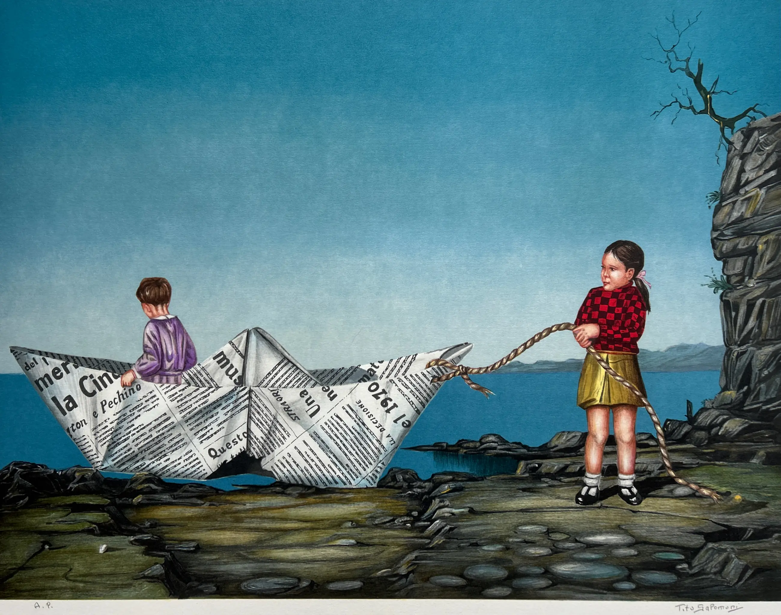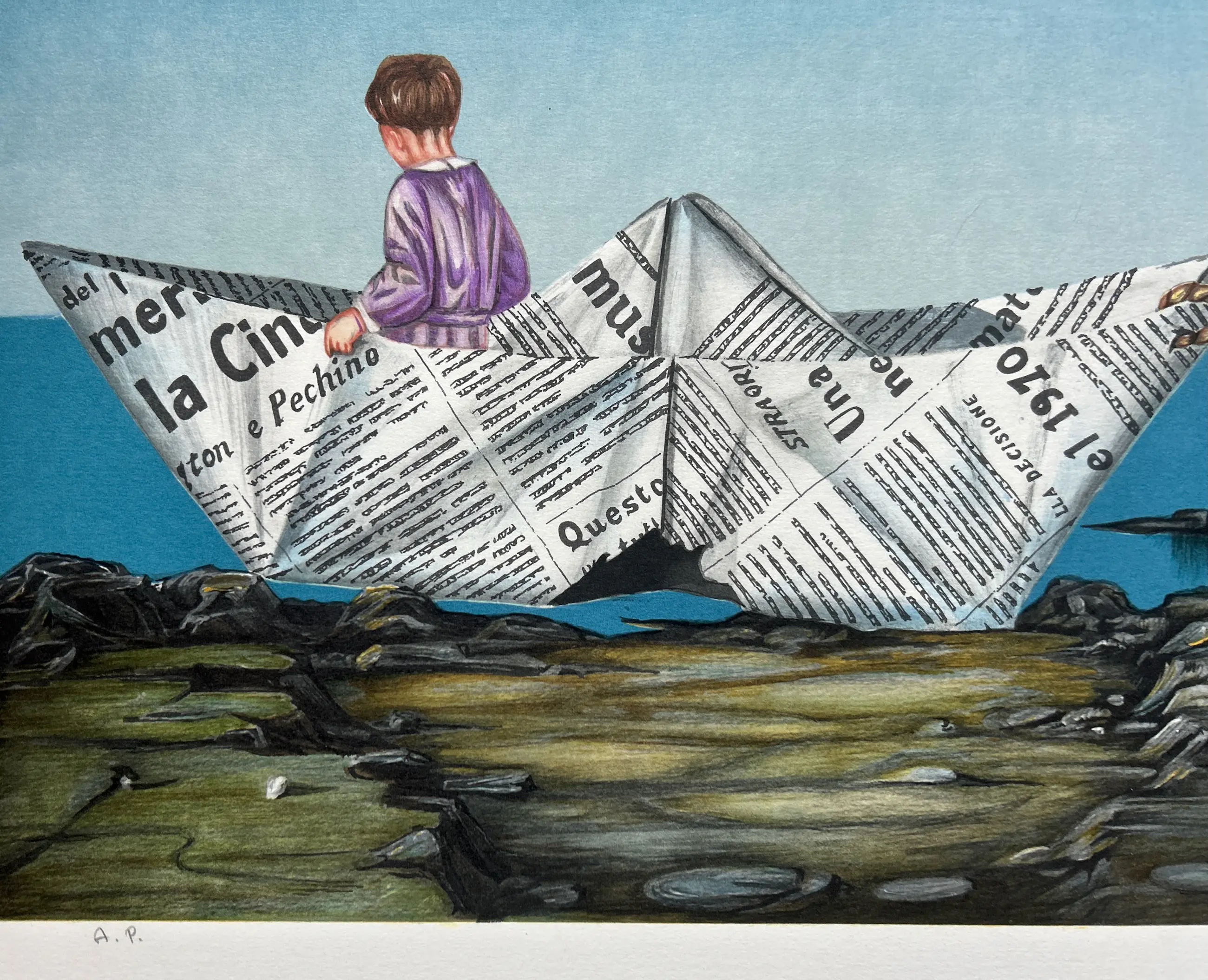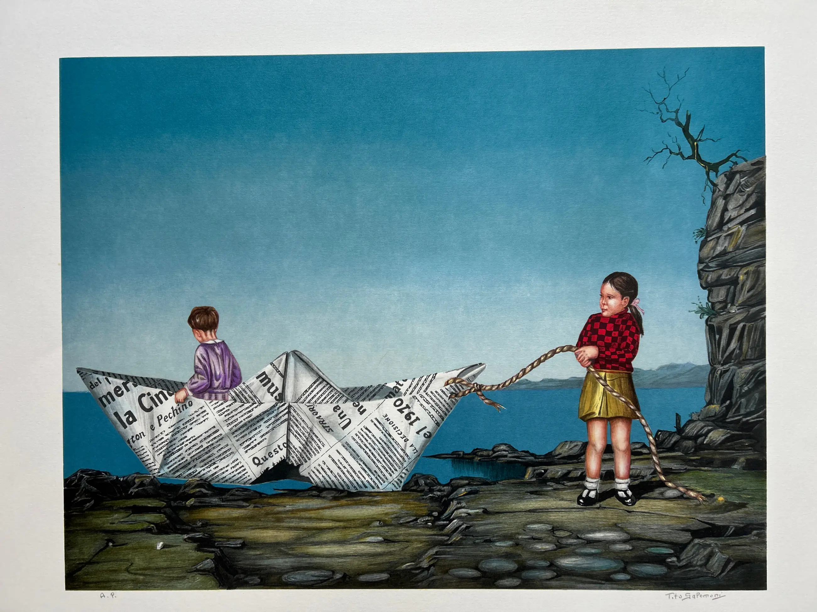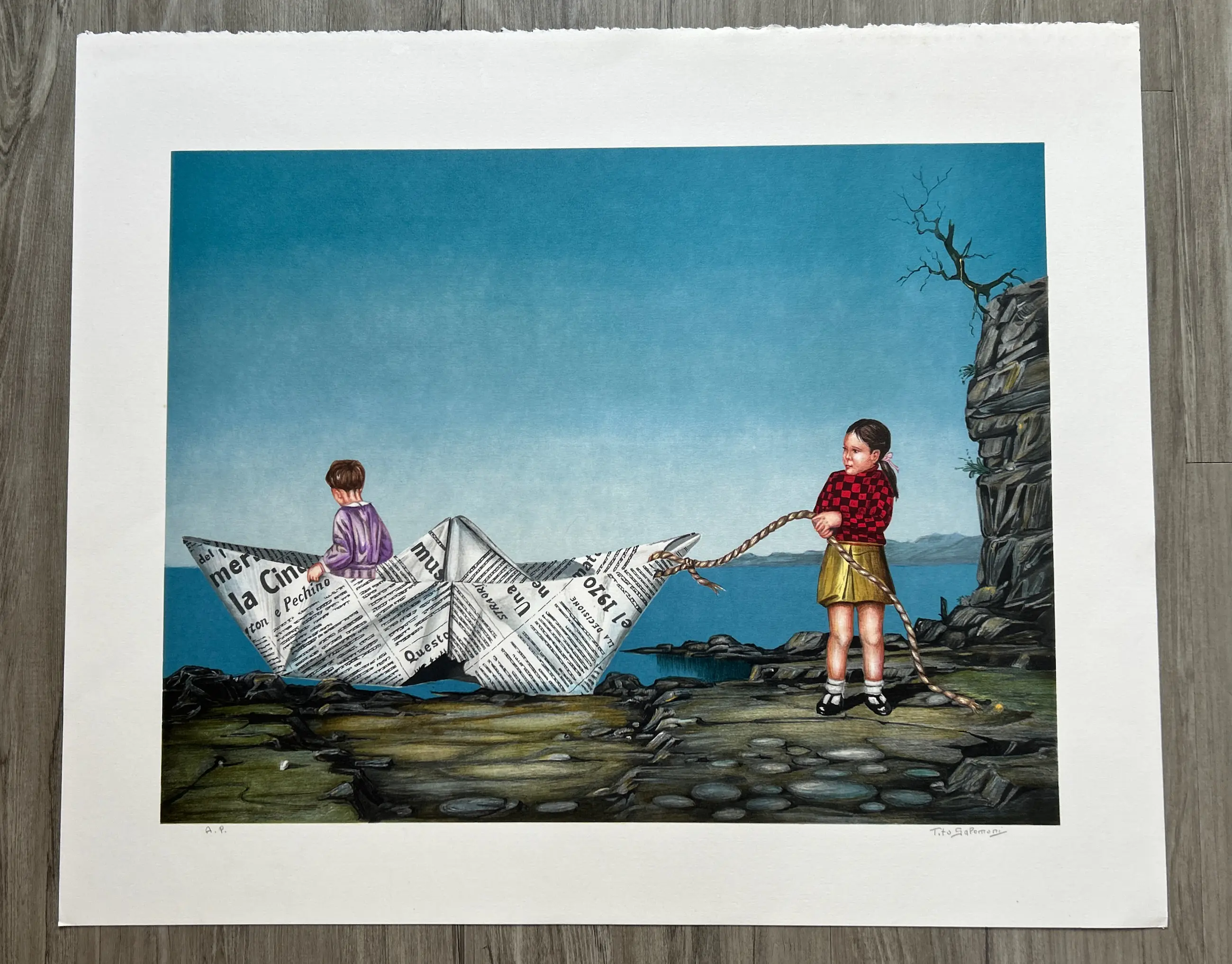 Conditie: zeer goed. Vlekjes linkerrand vel, zie foto's. Oplage: A.P. Afmeting: afbeelding 43 x 56 cm. Wordt verzekerd verzonden in een stevige kartonnen koker.