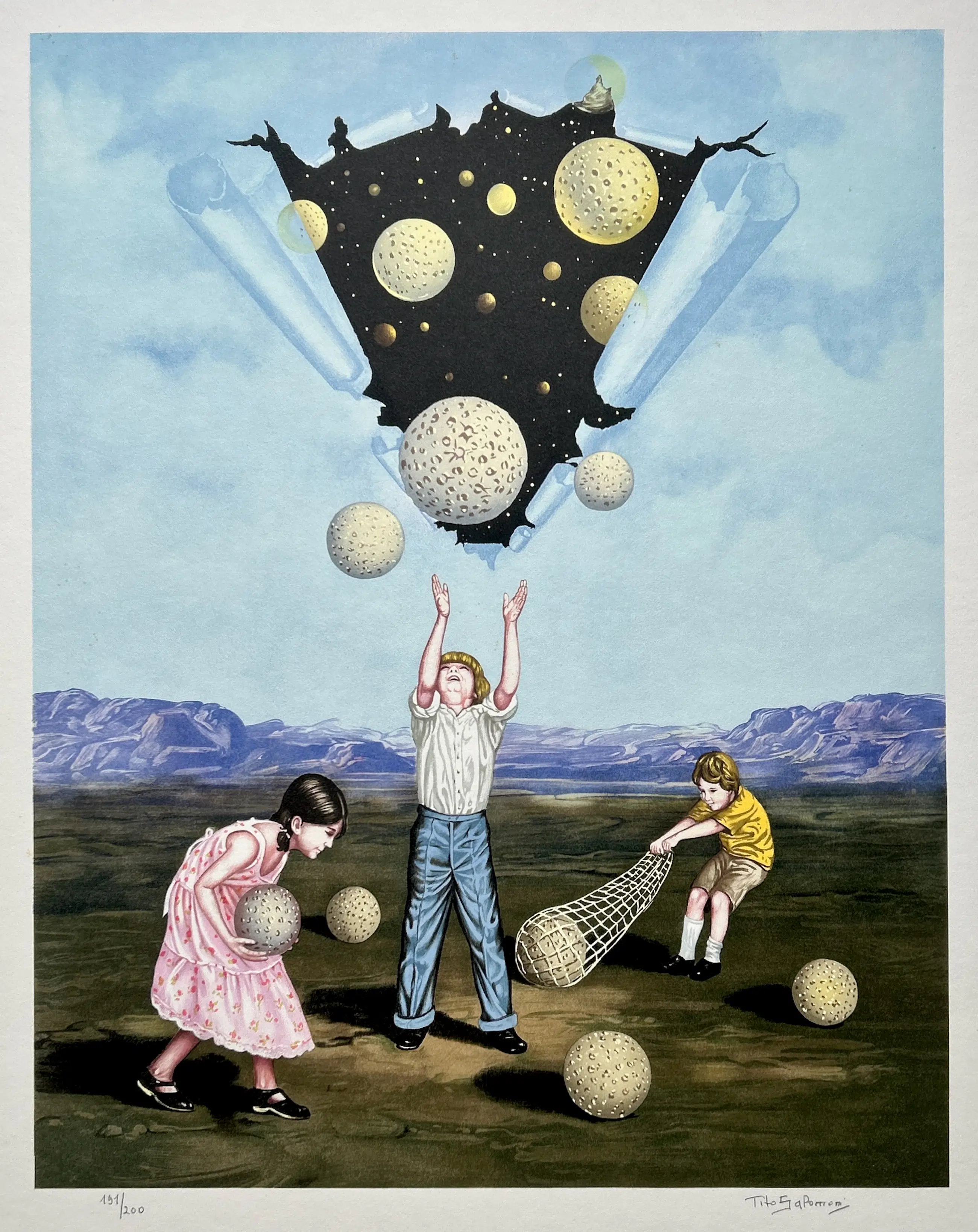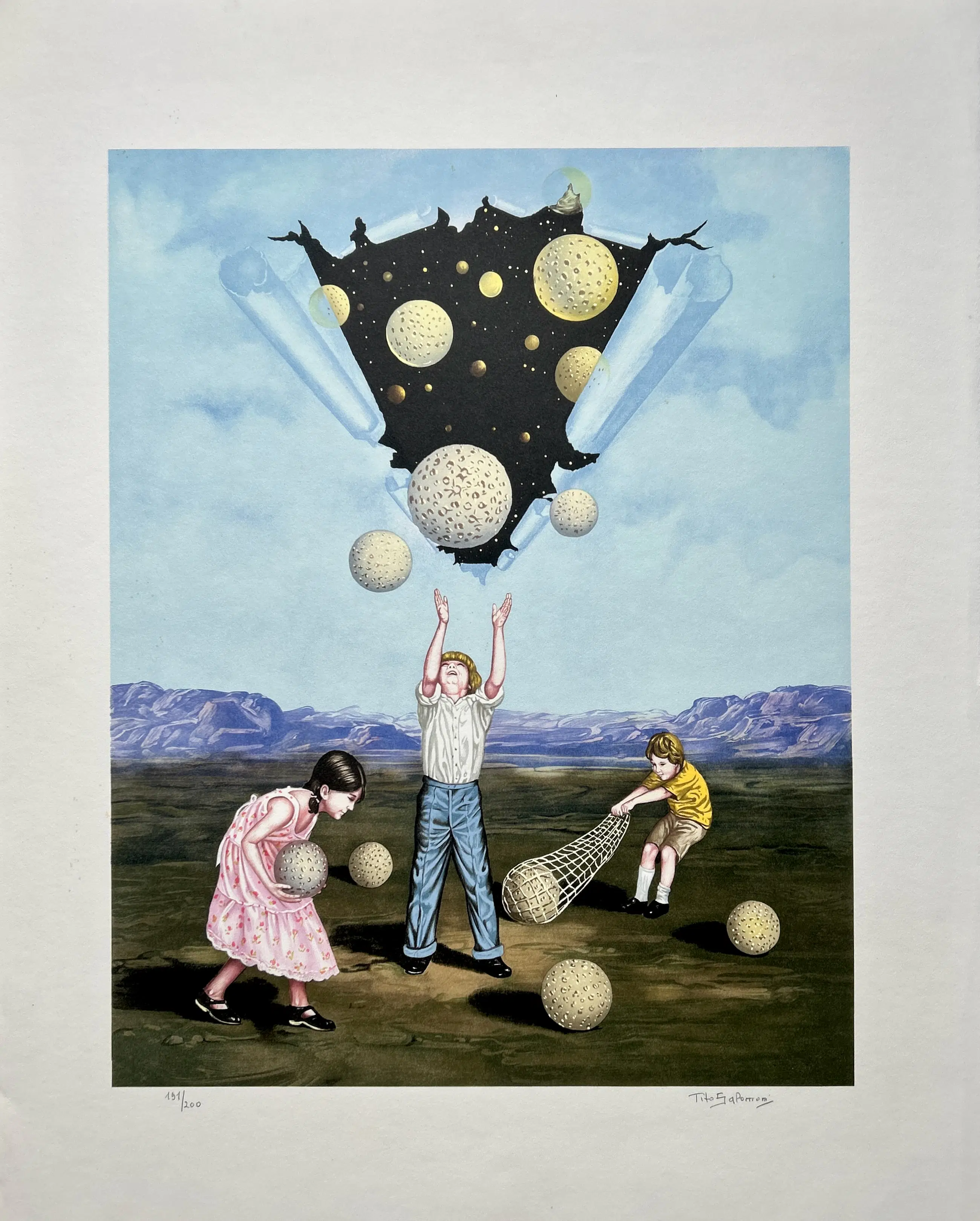 Conditie: zeer goed. Vel heeft vlekjes en vouwtje hoek vel, zie foto's. Oplage: 191/200. Afmeting: afbeelding 55 x 43 cm. Wordt verzekerd verzonden in een stevige kartonnen koker.