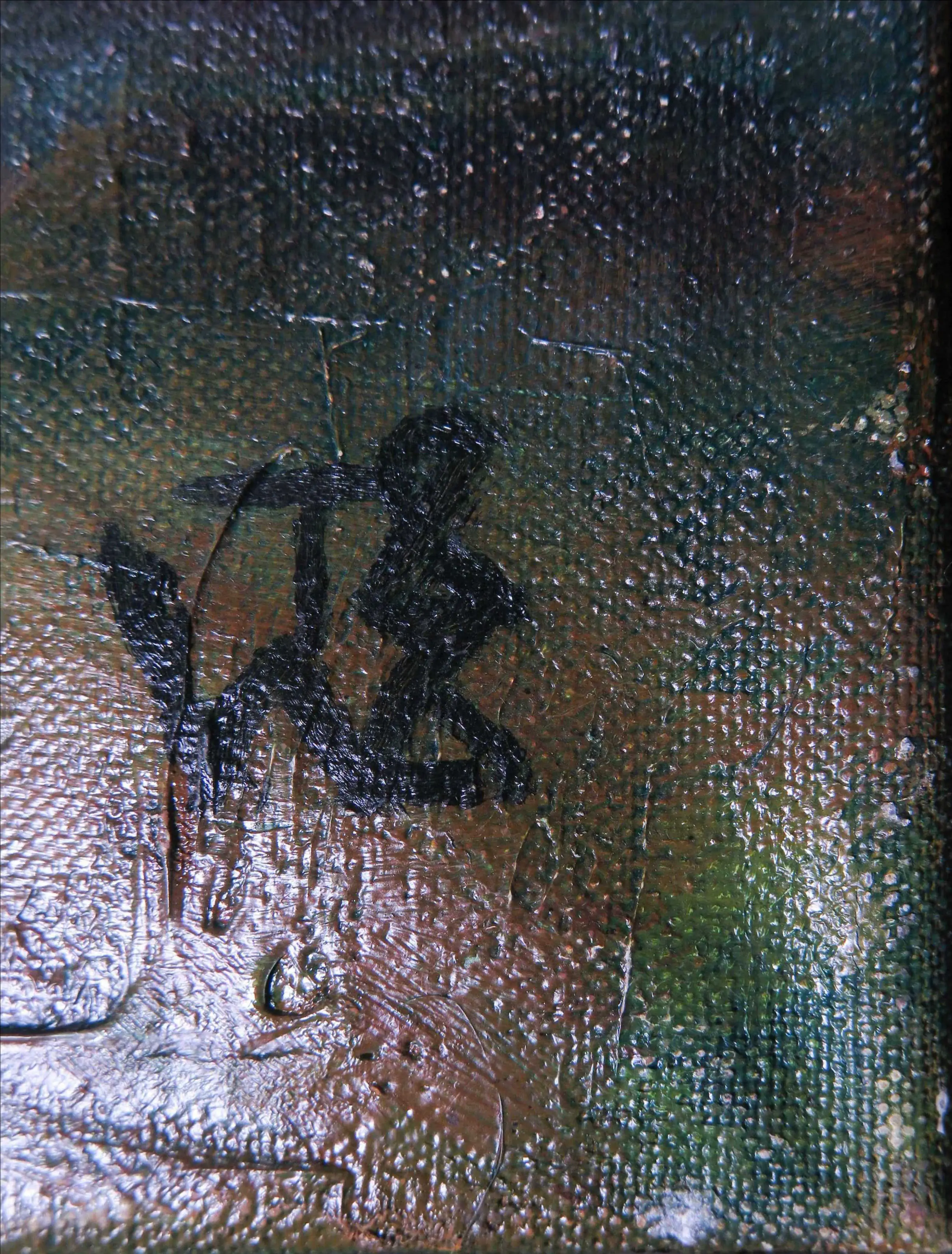 | Het werk ziet er voor het grootste gedeelte goed uit, maar aan de randen vertoont het wat kwaaltjes. Zo zijn er plekken met verfschade en zijn er (vooral linksboven) butsen. Zie ook de detailfoto's. | |