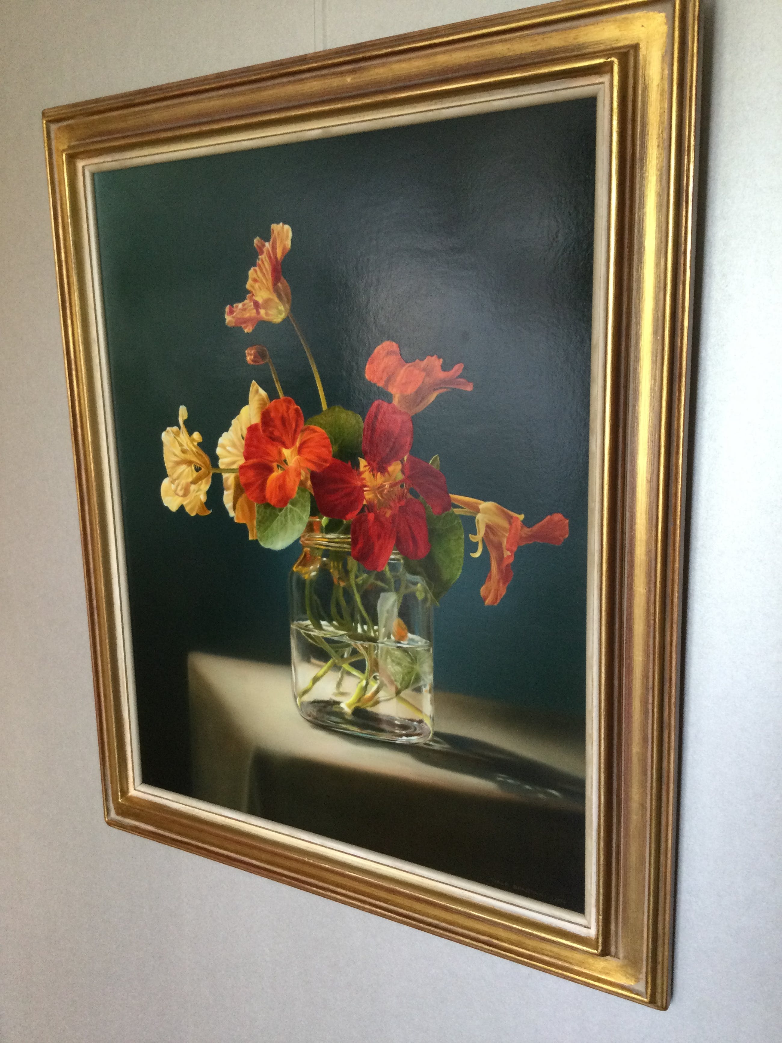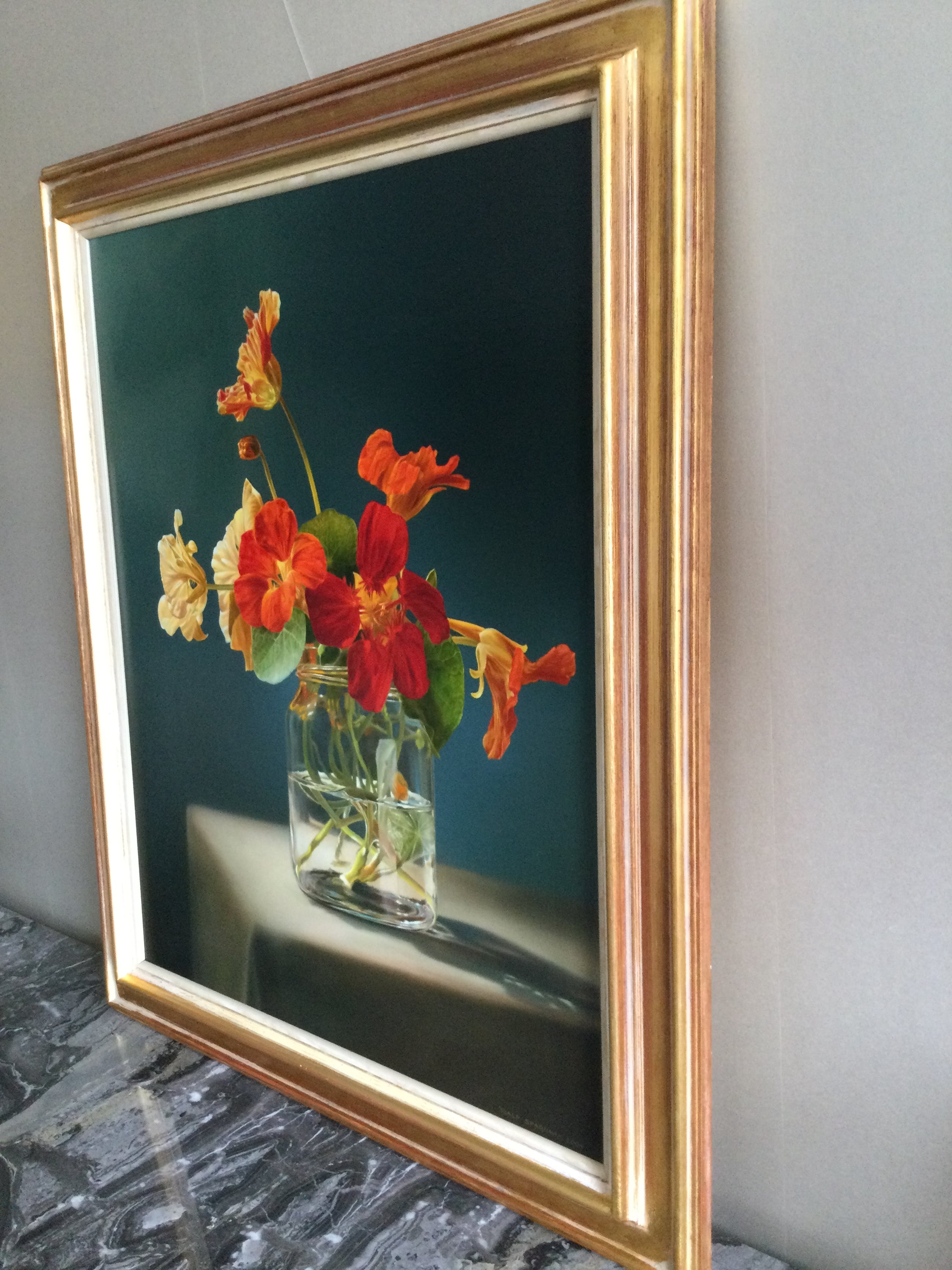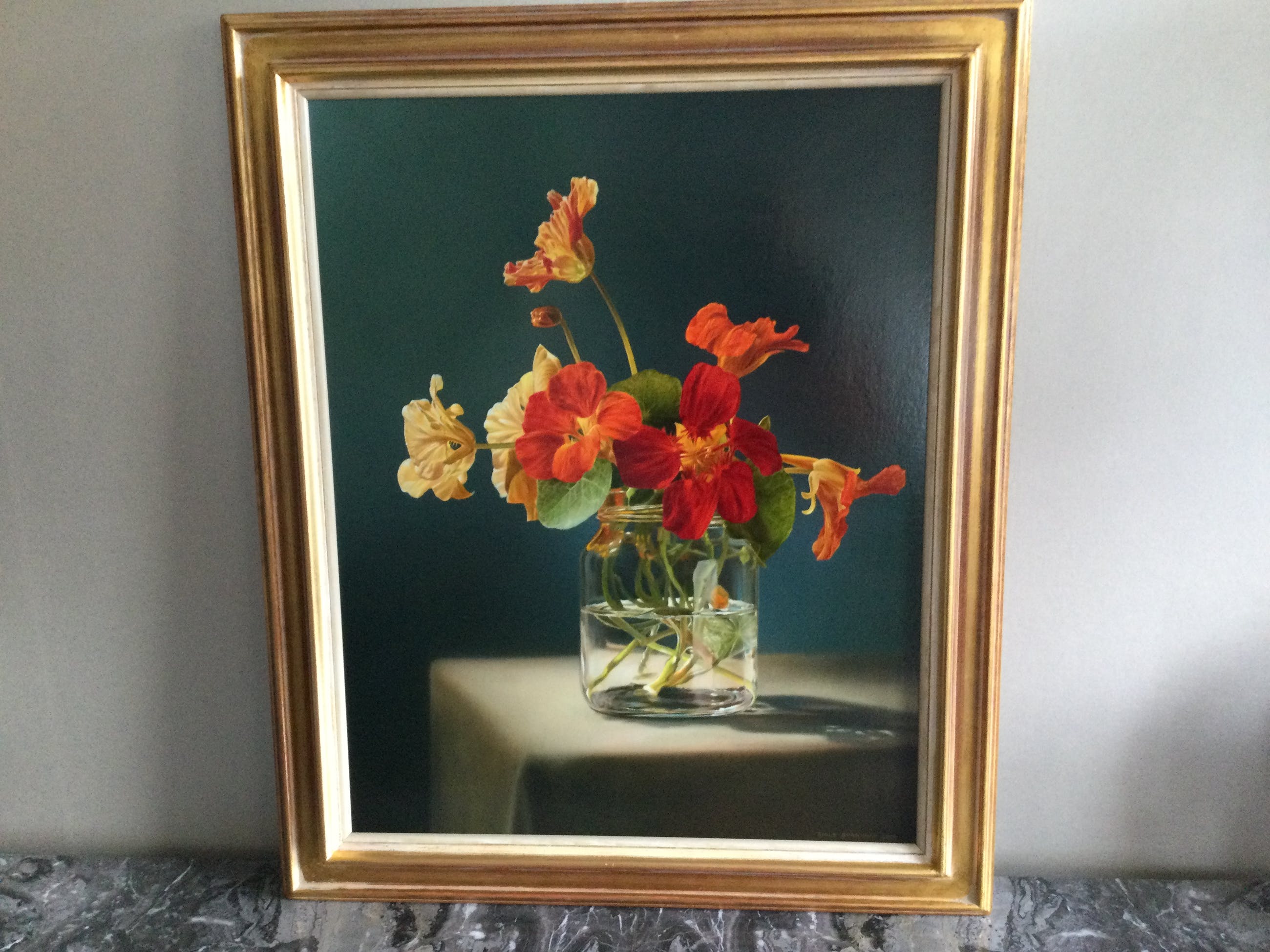 Uniek, schitterend schilderij van Tjalf Sparnaay uit 2004. Voorstelling: Oost Indische kers in glazen vaas. Zeer realistisch geschilderd. Een echte Sparnaay. Prachtig ingelijst. Gekocht bij Galerie Utrecht in 2005. Aankoopnota en certificaat is aanwezig. Kan zo aan de muur!