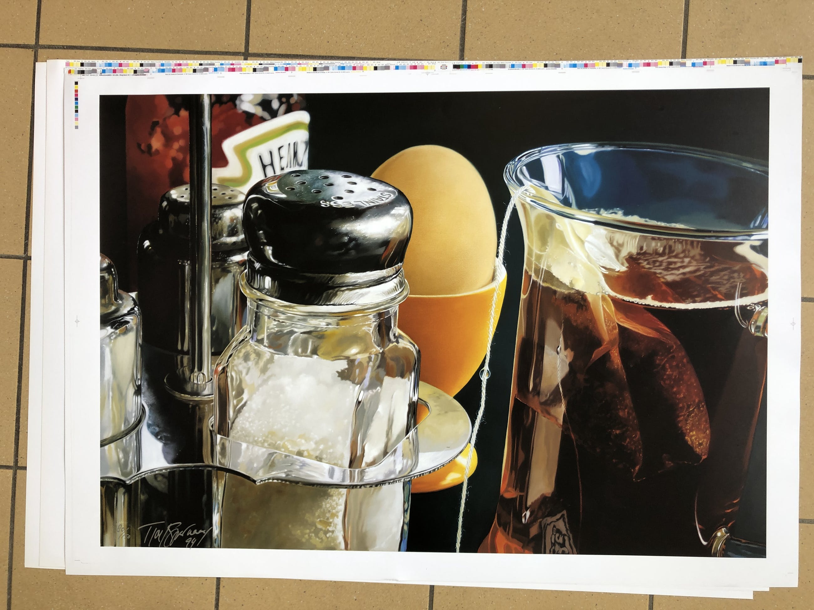 Fraai werk van hyperrealist Tjalf Sparnaay. De offste litho is gedrukt op 250 rams Polar Super Silk papier en gesigneerd en genummerd door de kunstenaar. Prent maat 64 x 93 cm en papiermaat 72 x 102 cm.