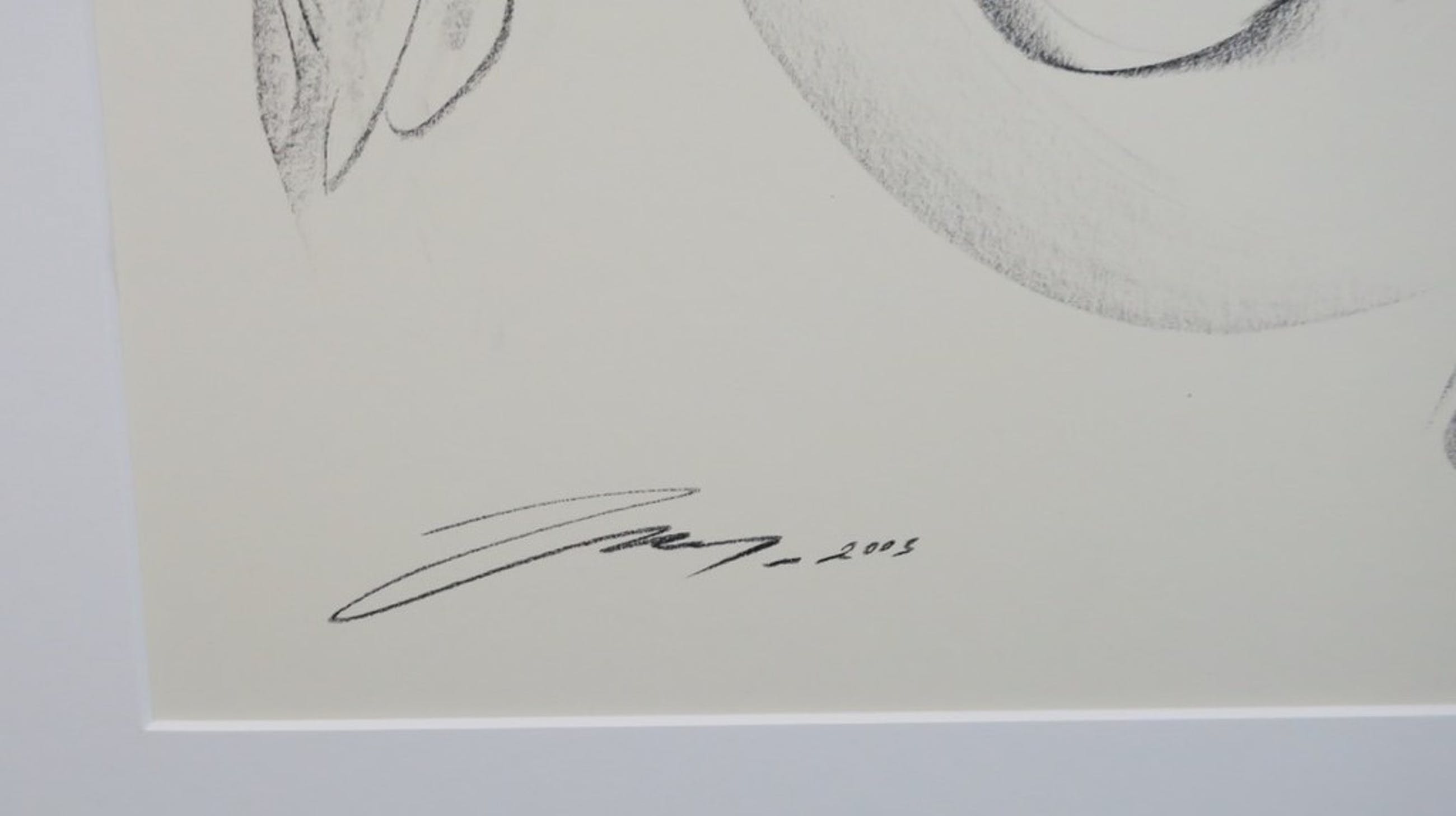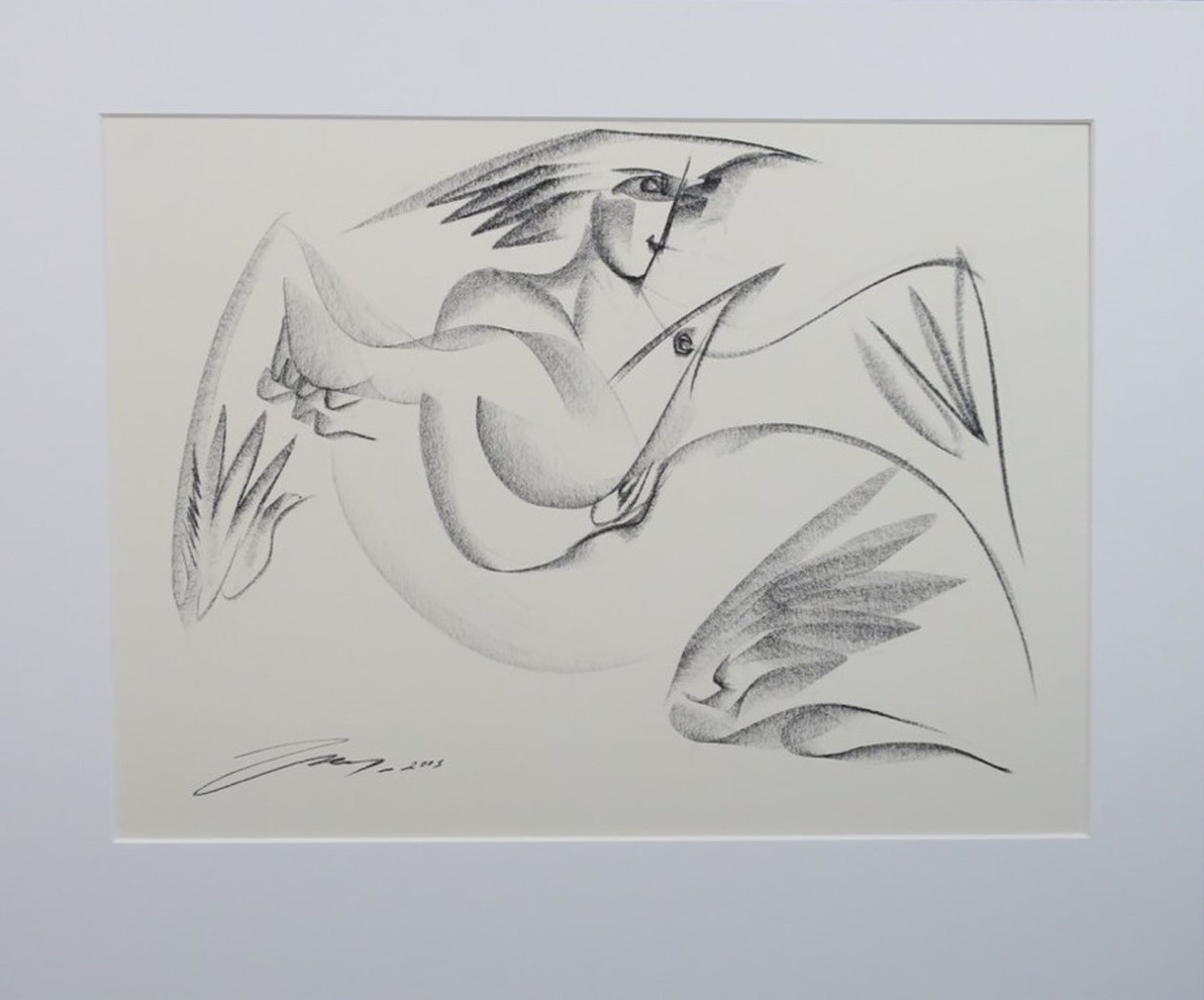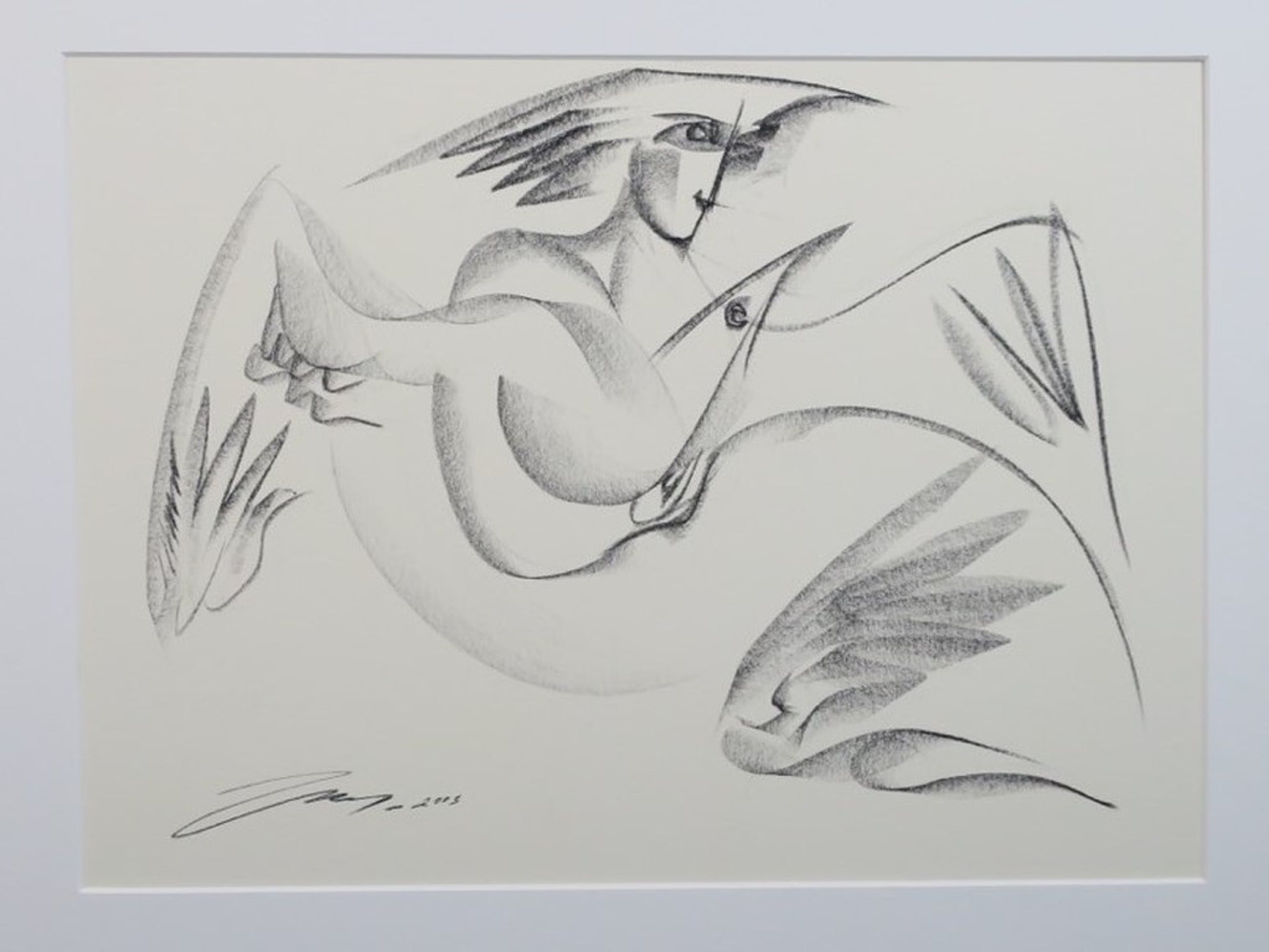 Materiaal: Krijttekening op papier (gefixeerd), op passe-partout geplakt.