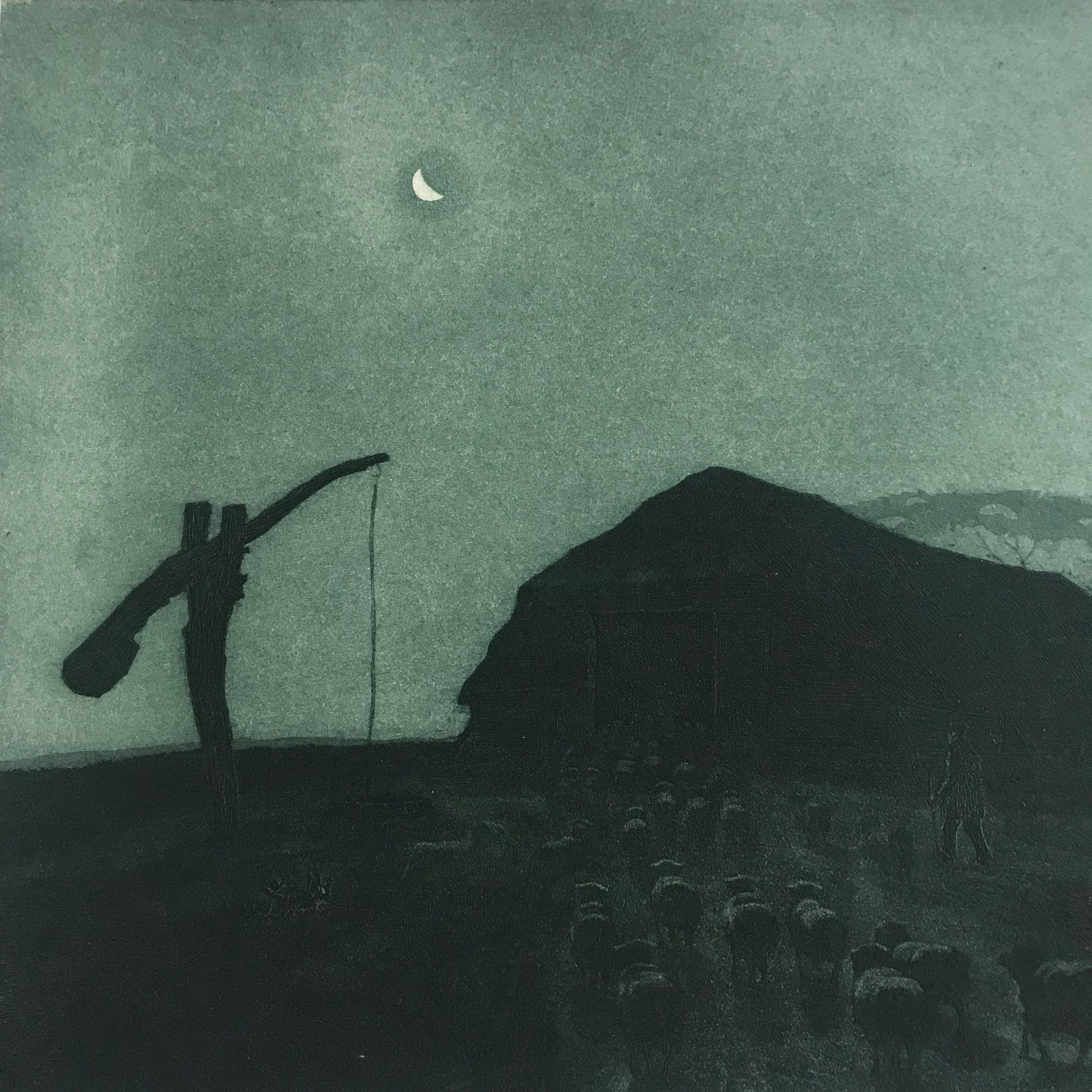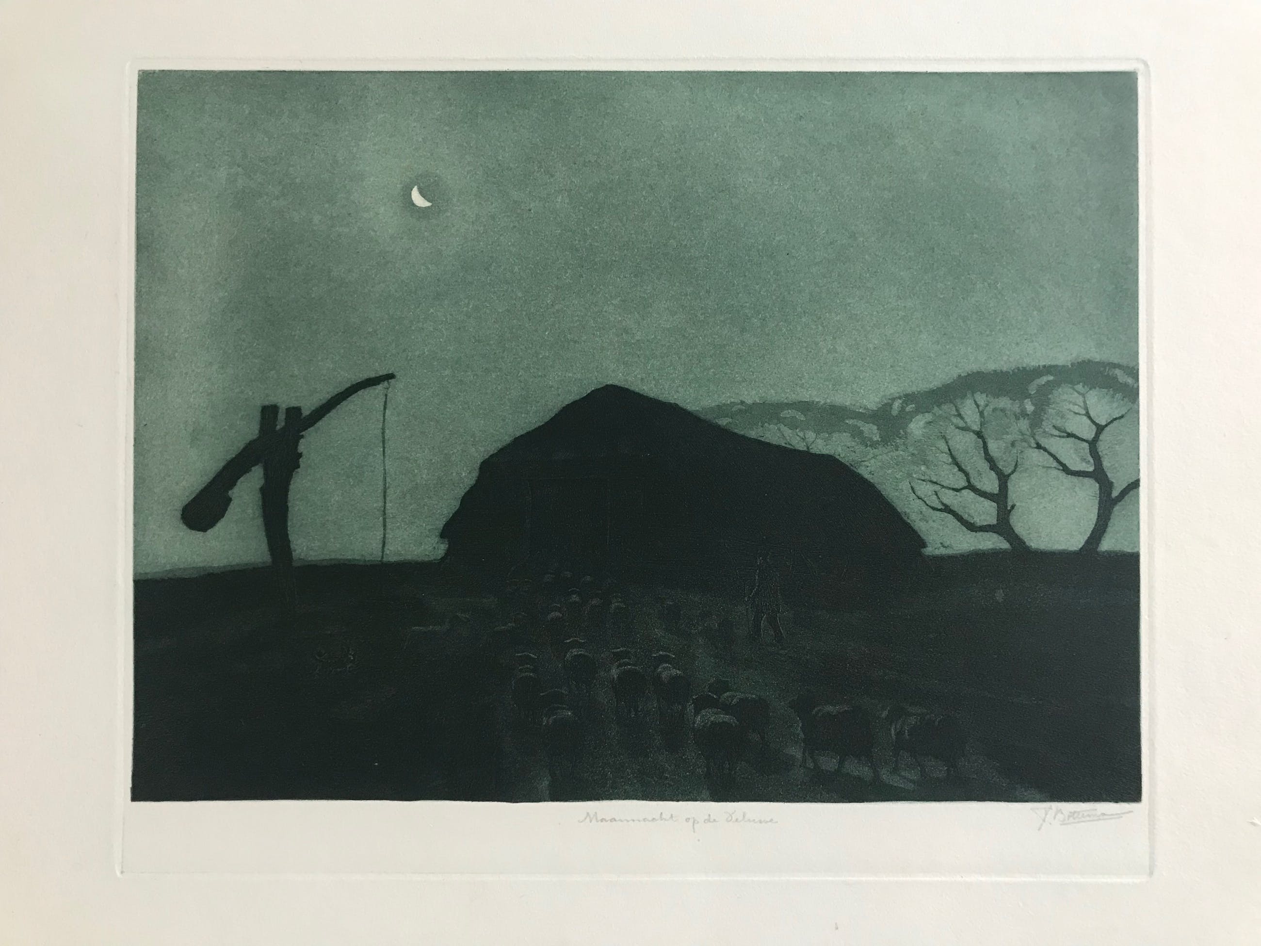Kleurenets/aquatint van Tjeerd Bottema. (1884-1978)
