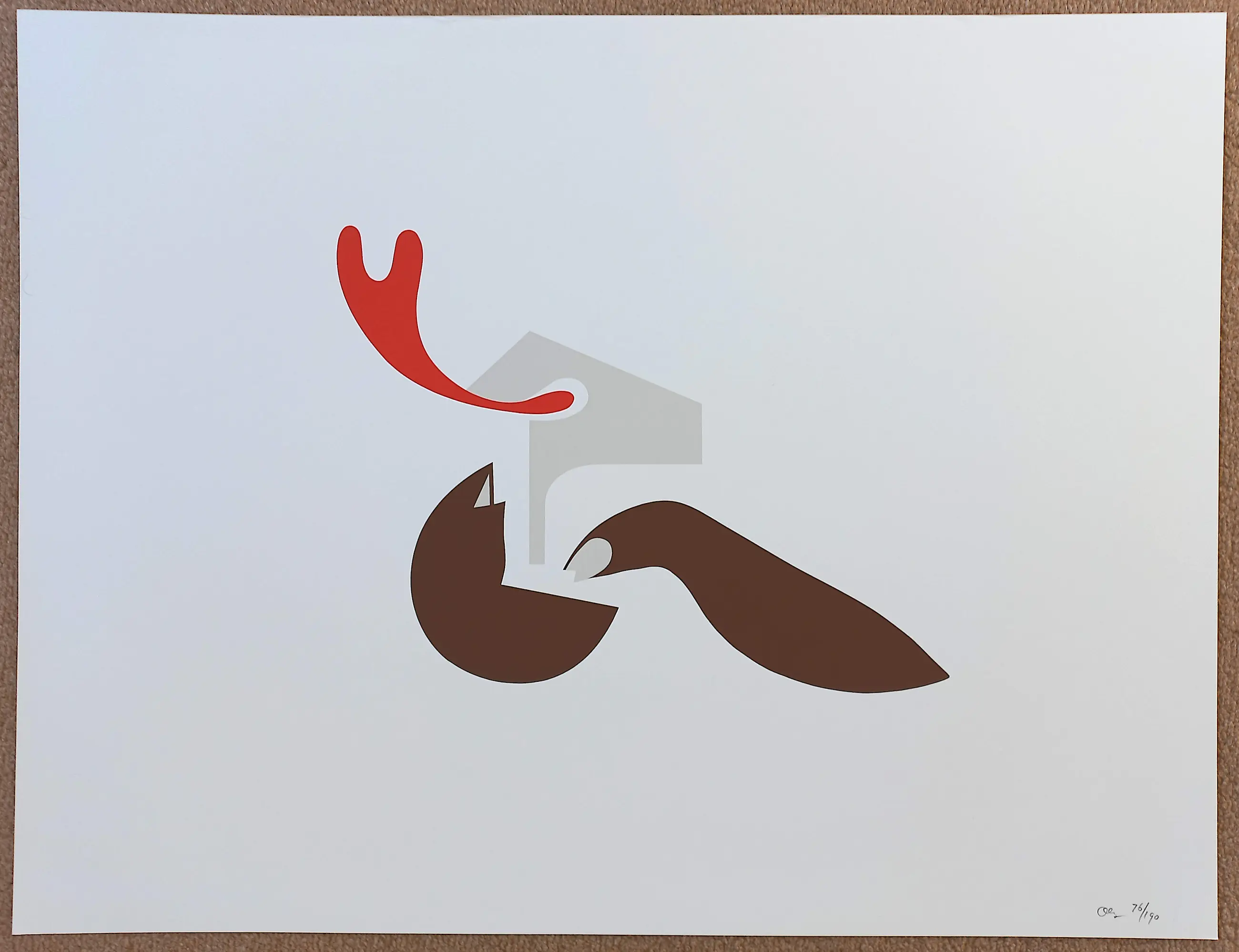 Afmetingen: 65cm x 50cm (blad), 34cm x 26cm (beeld zeefdruk)