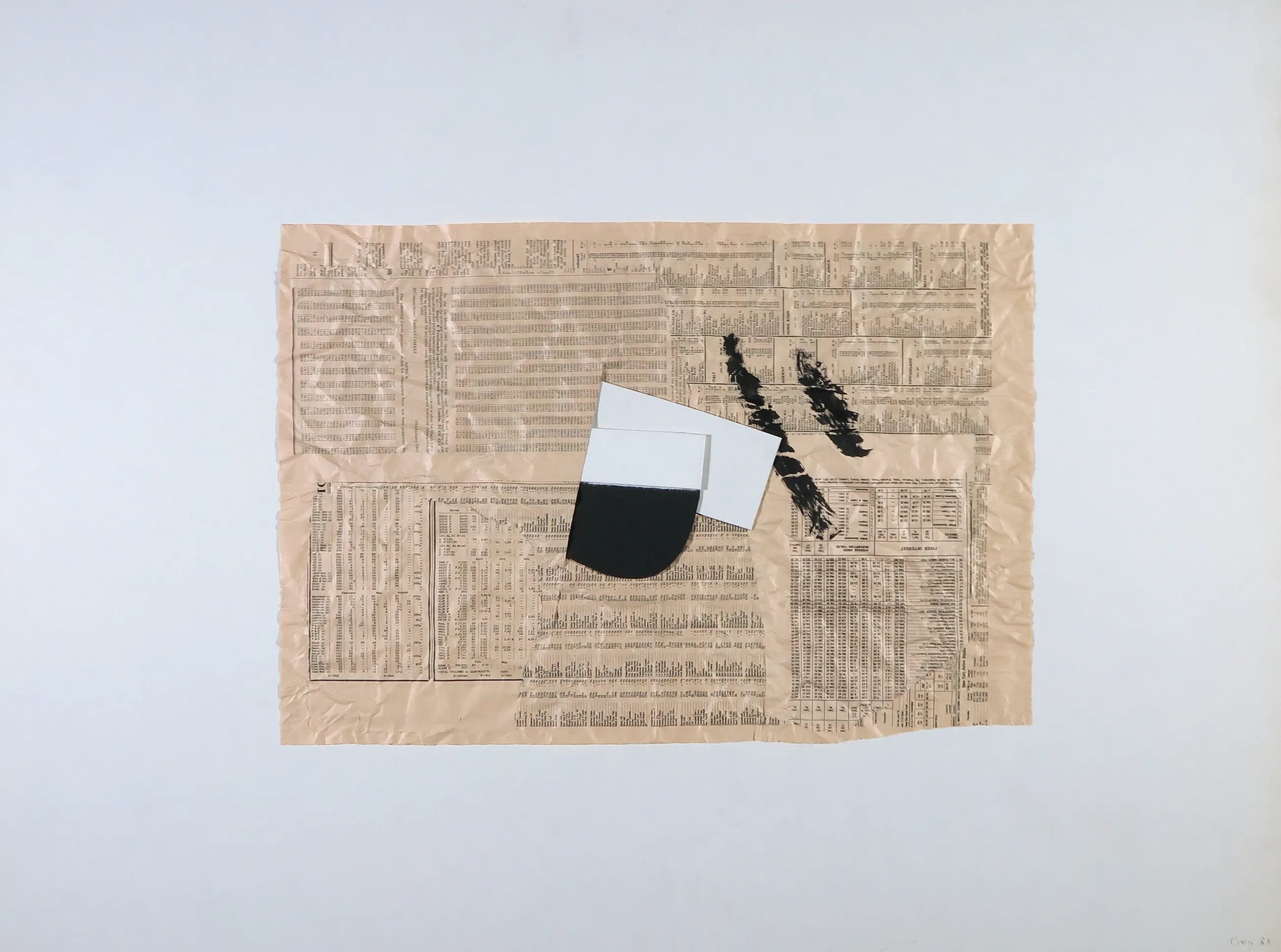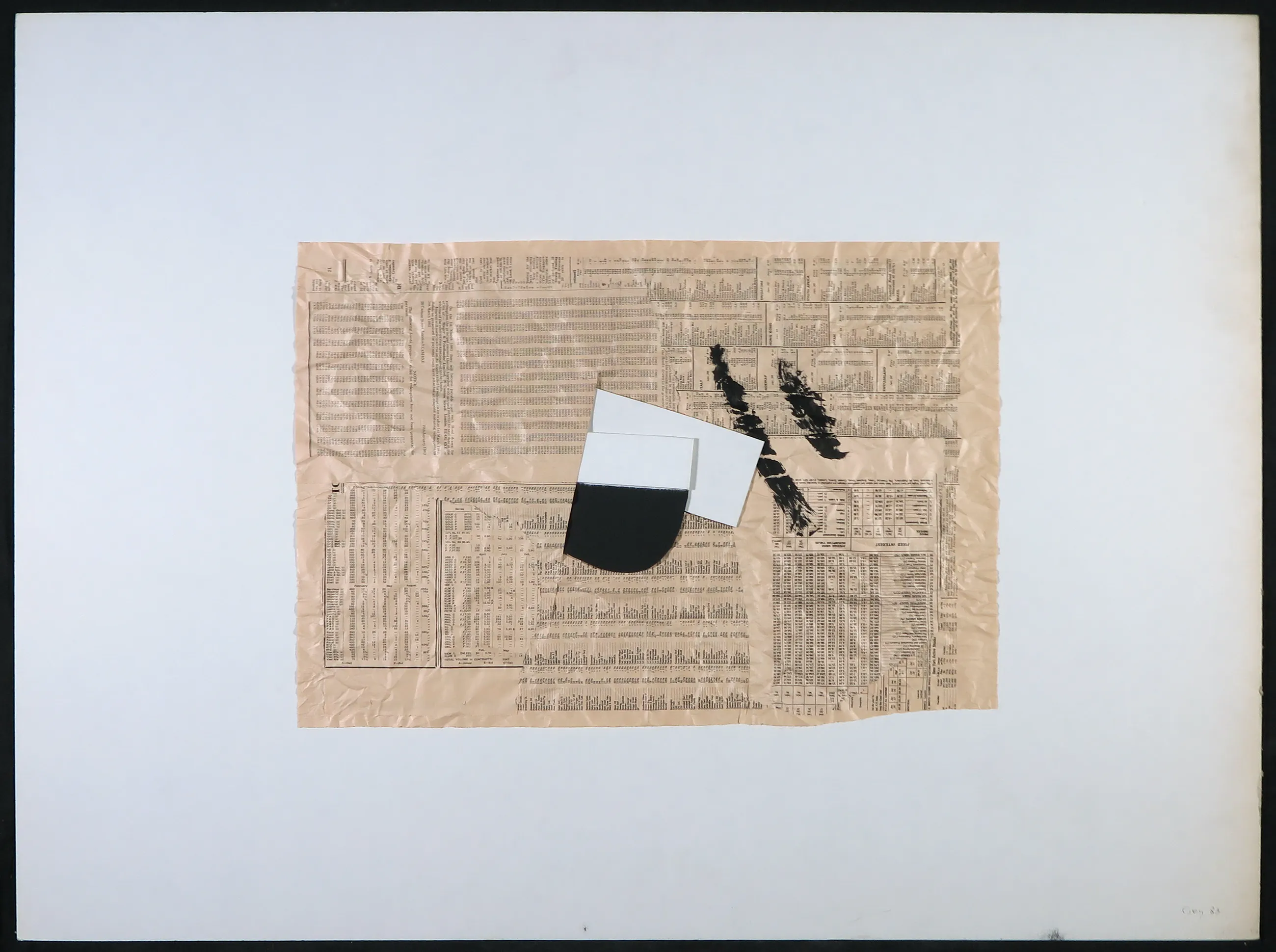 Het werk is in zeer goede conditie. Het verstevigd onderblad waar de collage op is bevestigd is wat vlekkerig. | |||||||||||