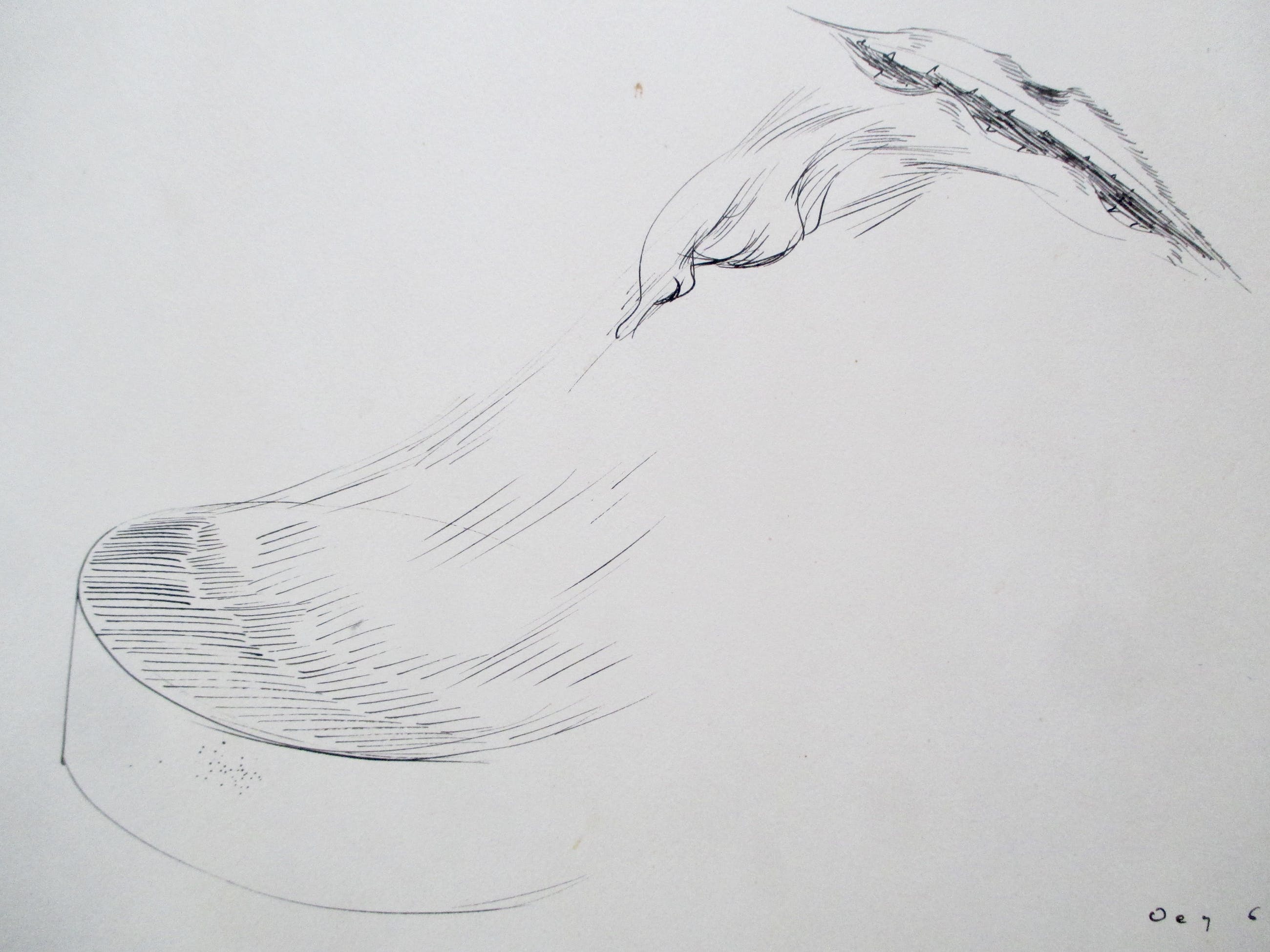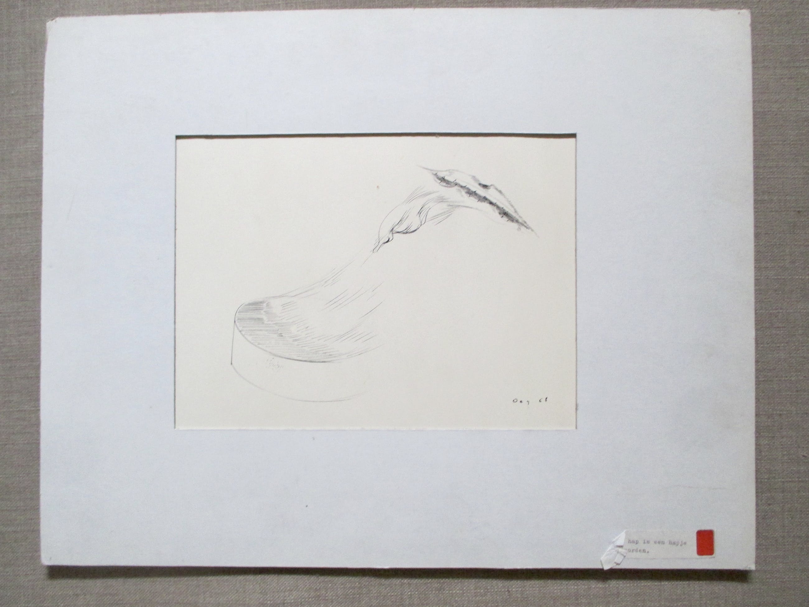 Pentekening van Tjeng Sit Oey, gesigneerd en gedateerd in pen. Geplaatst achter eenvoudig kartonnen passe-partout. Verzending tussen twee platen, 8,25, aangetekend 10,20