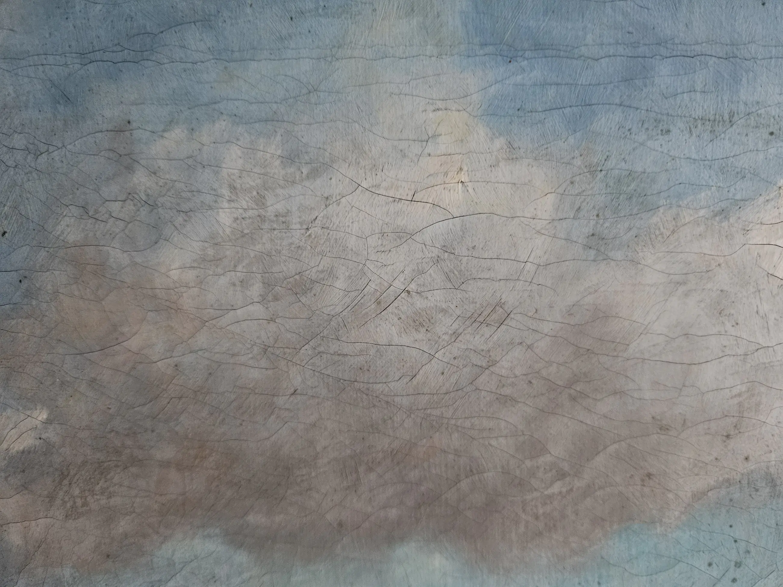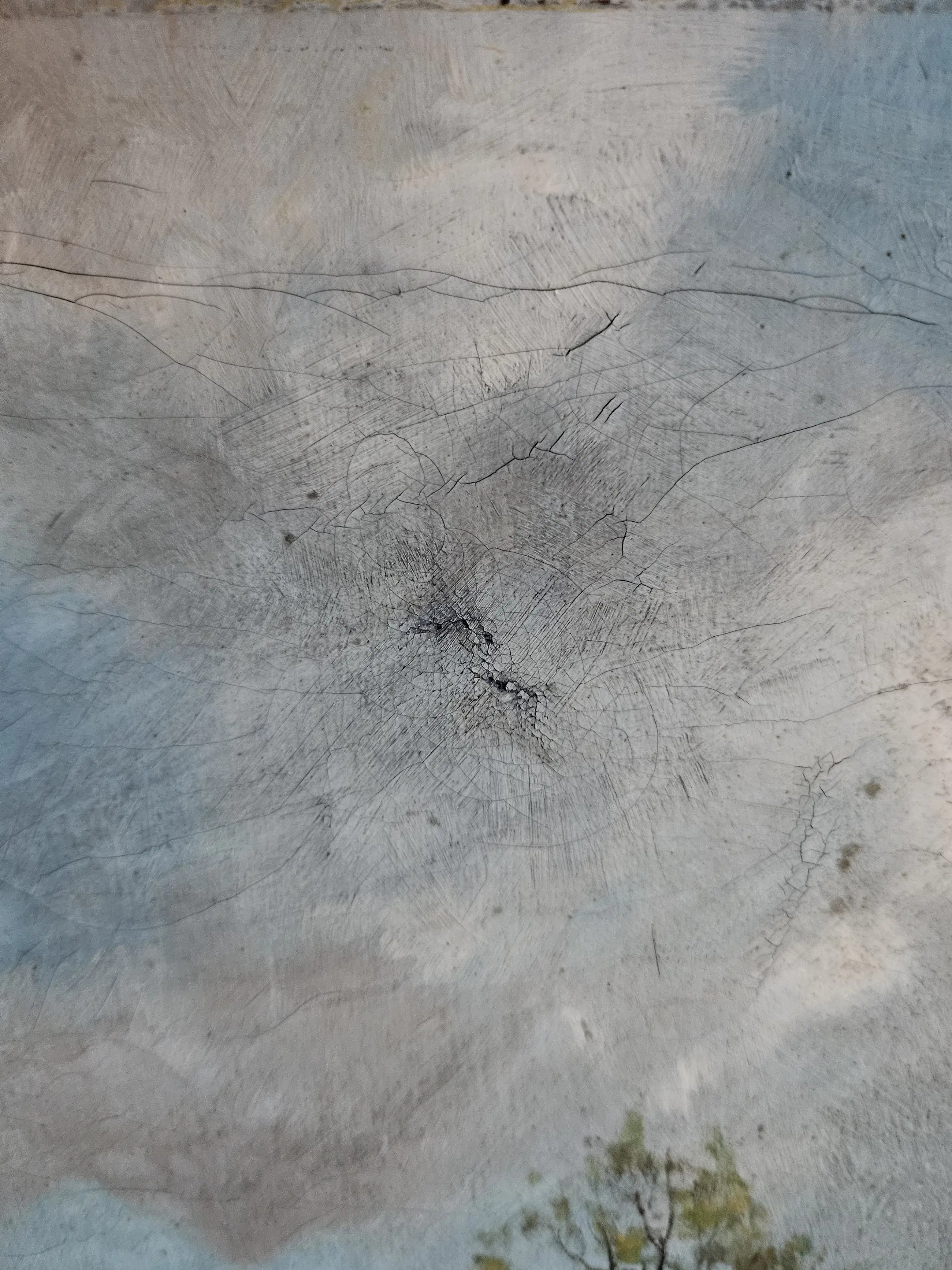 Krakelee en rechtsboven dunne plek beschadigd.