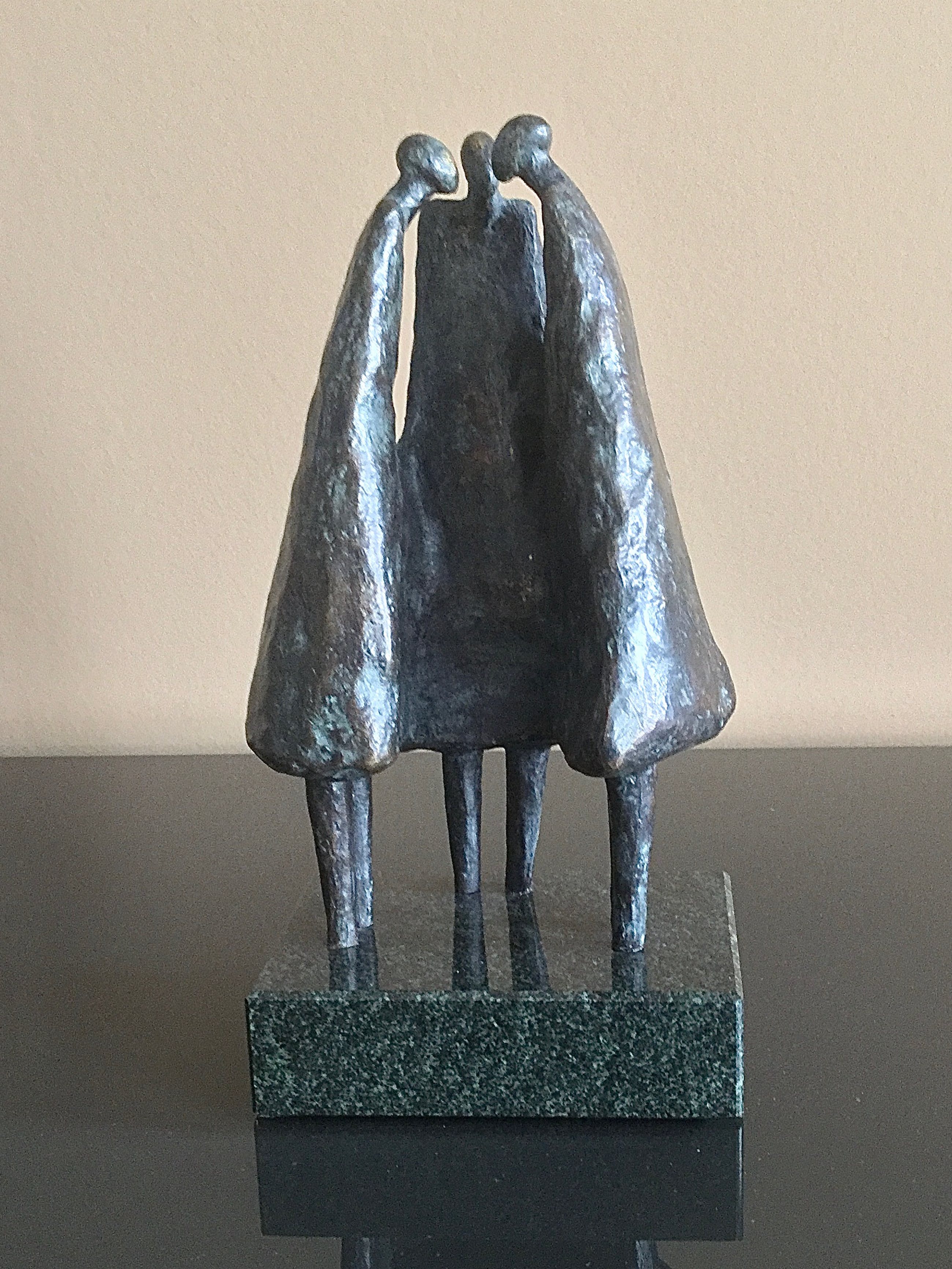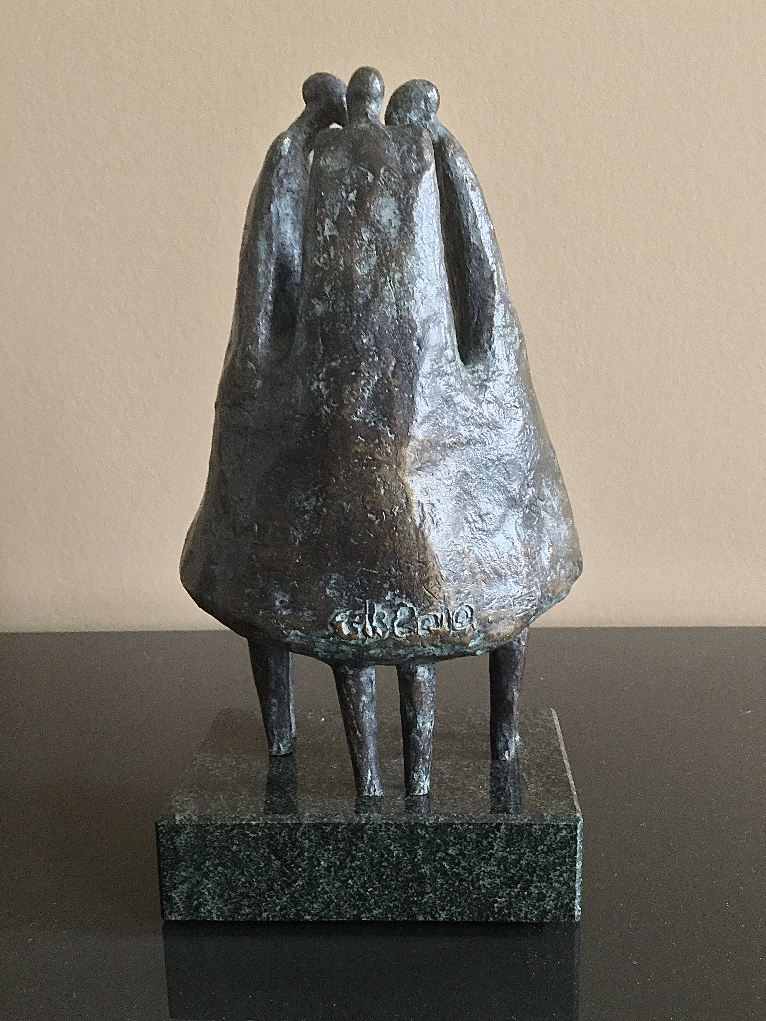 Dit beeld is in opdracht gemaakt voor de Nederlandse Bank voor 30 jaar dienstverband onder de basis dus niet in het zicht staat inscriptie DE NEDERLANDSE BANK, en de naam van de jubilaris en jaar van in dienst en ook Jaar van uitreiking