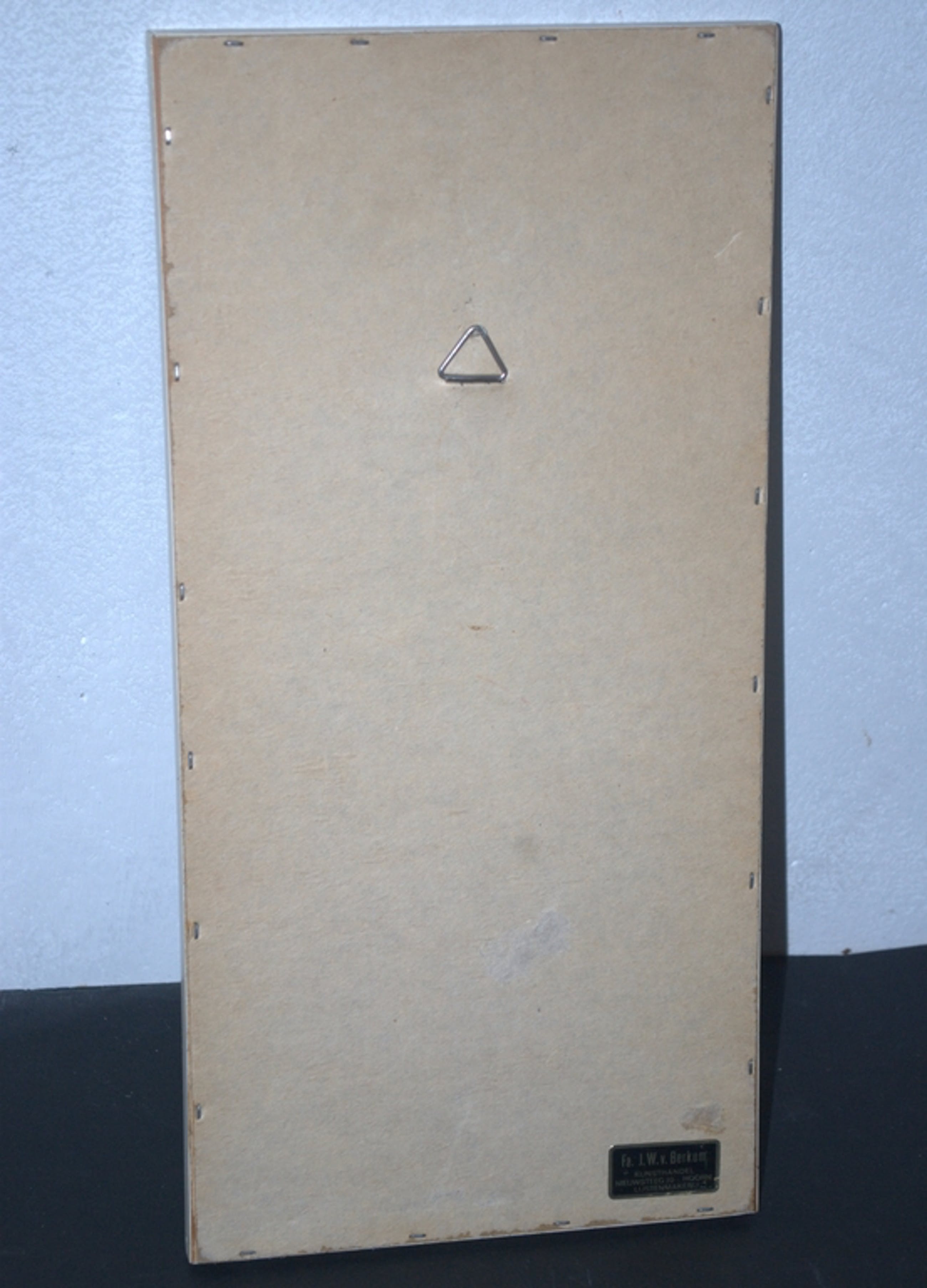 BEVESTIGD OP KARTON, ACHTER GLAS IN EEN FRAAI LIJSTJE MET LICHTE SCHADE, 31X15 CM.