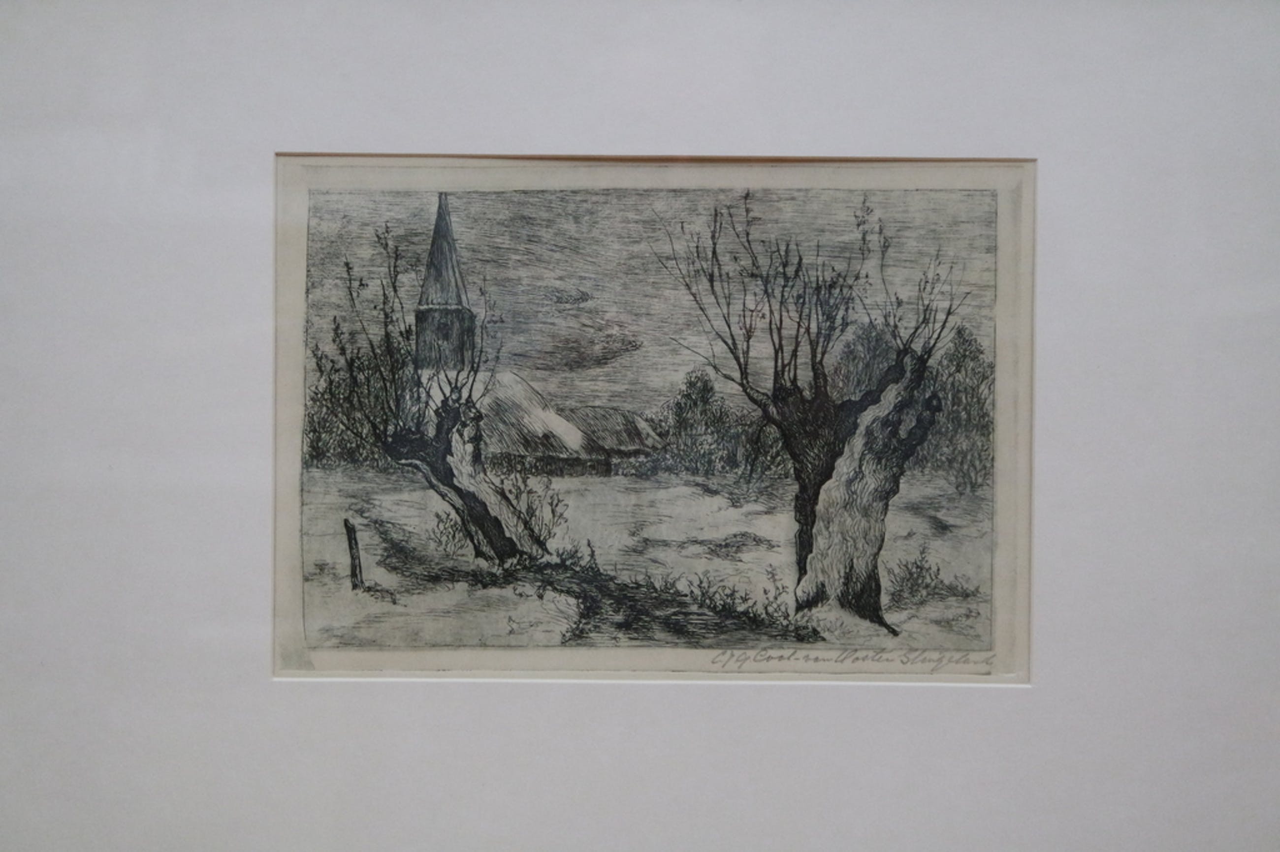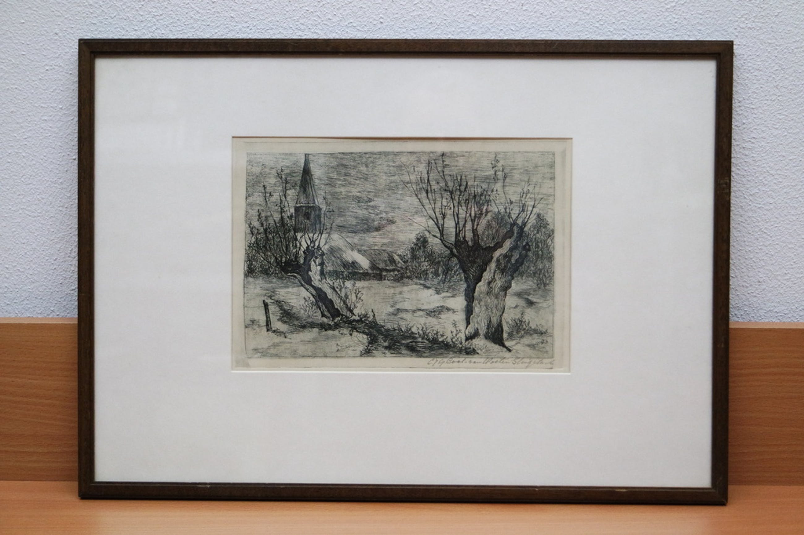 Een schitterend handgesigneerde ets (van na 1931) van de kunstenares C.J.G. Cool- van Oosten Slingeland (1887-1975). Mooi ingelijst. Afmetingen met lijst: 51 cm. x 36 cm. Ets maat: 27 cm. x 19 cm. Conditie: goed. De handgesigneerde ets wordt goed gepakt en verzekerd verzonden. Afhalen e/o bezichtiging (voor het bieden) is mogelijk. Info: www.rkd.nl/cool.