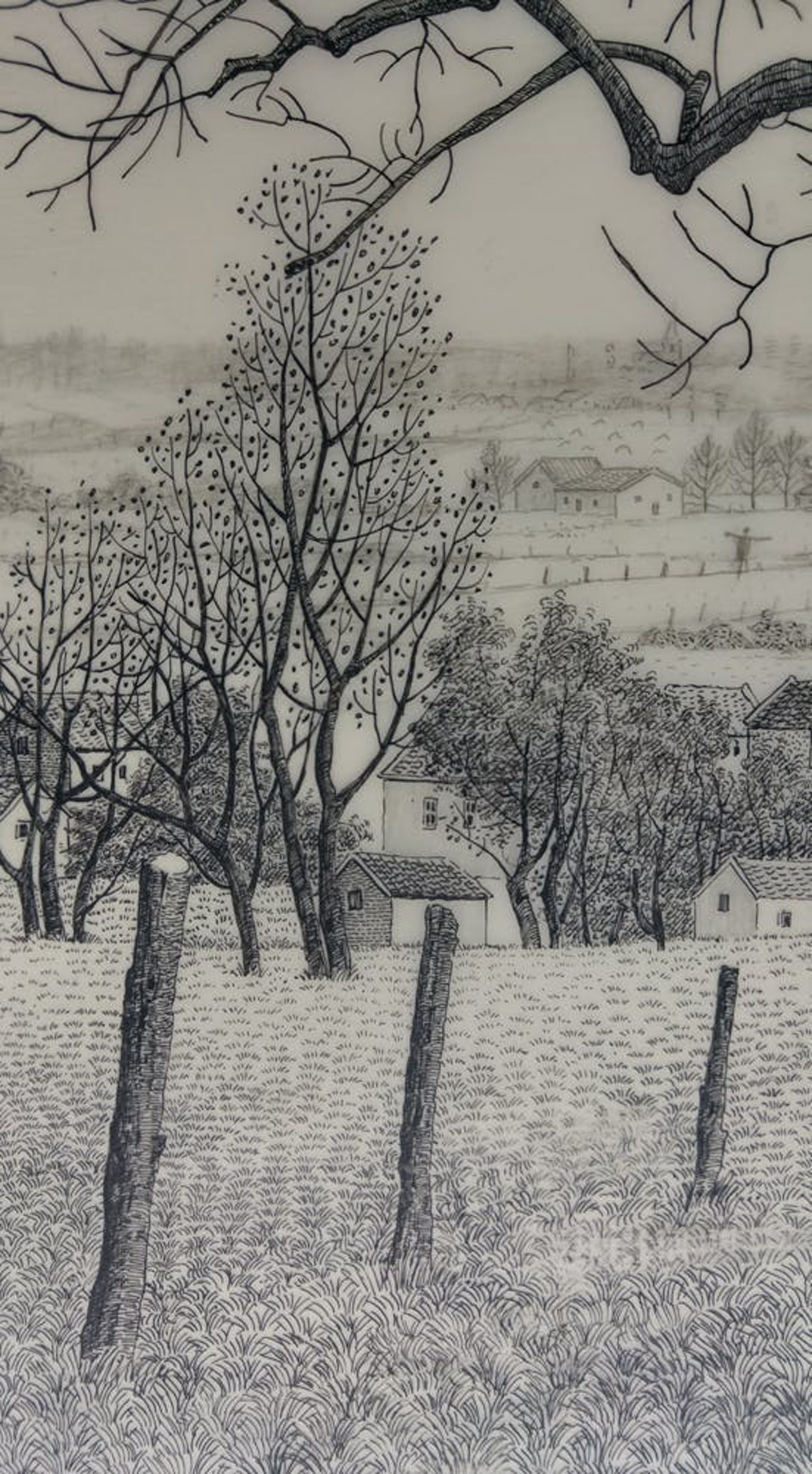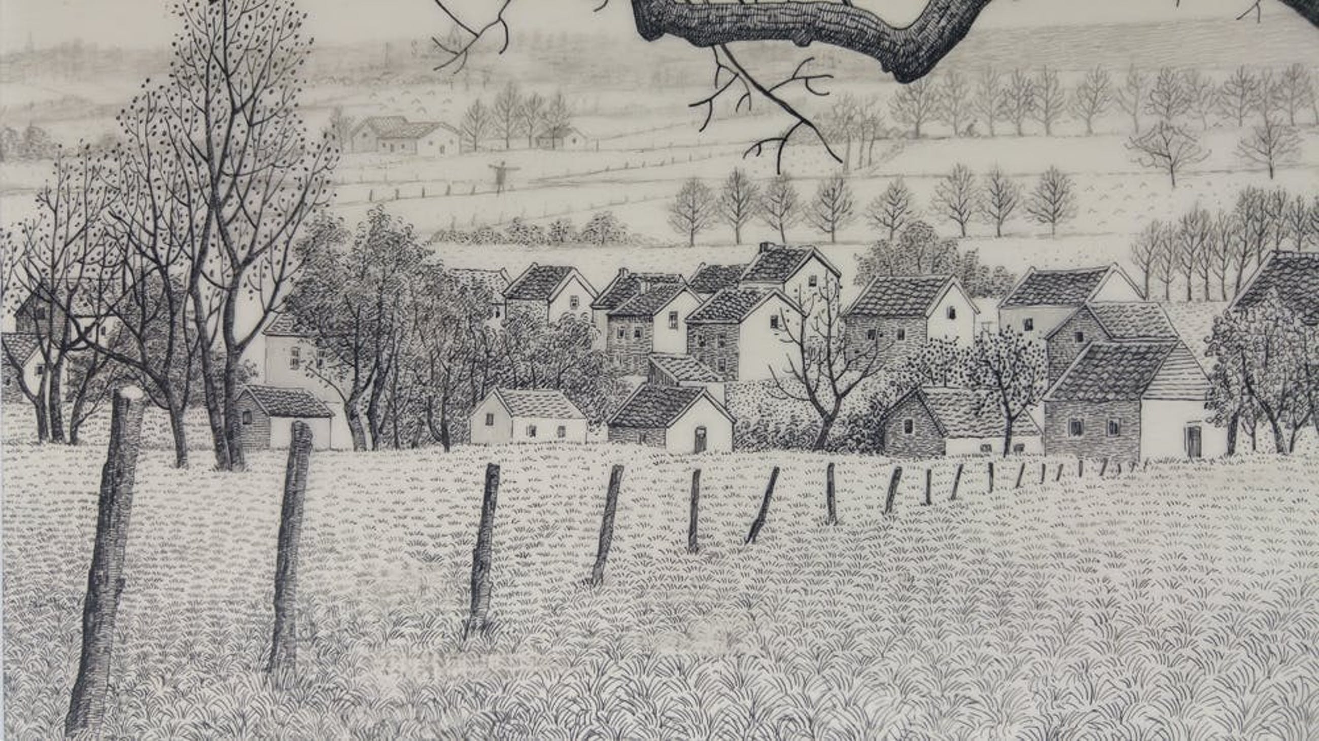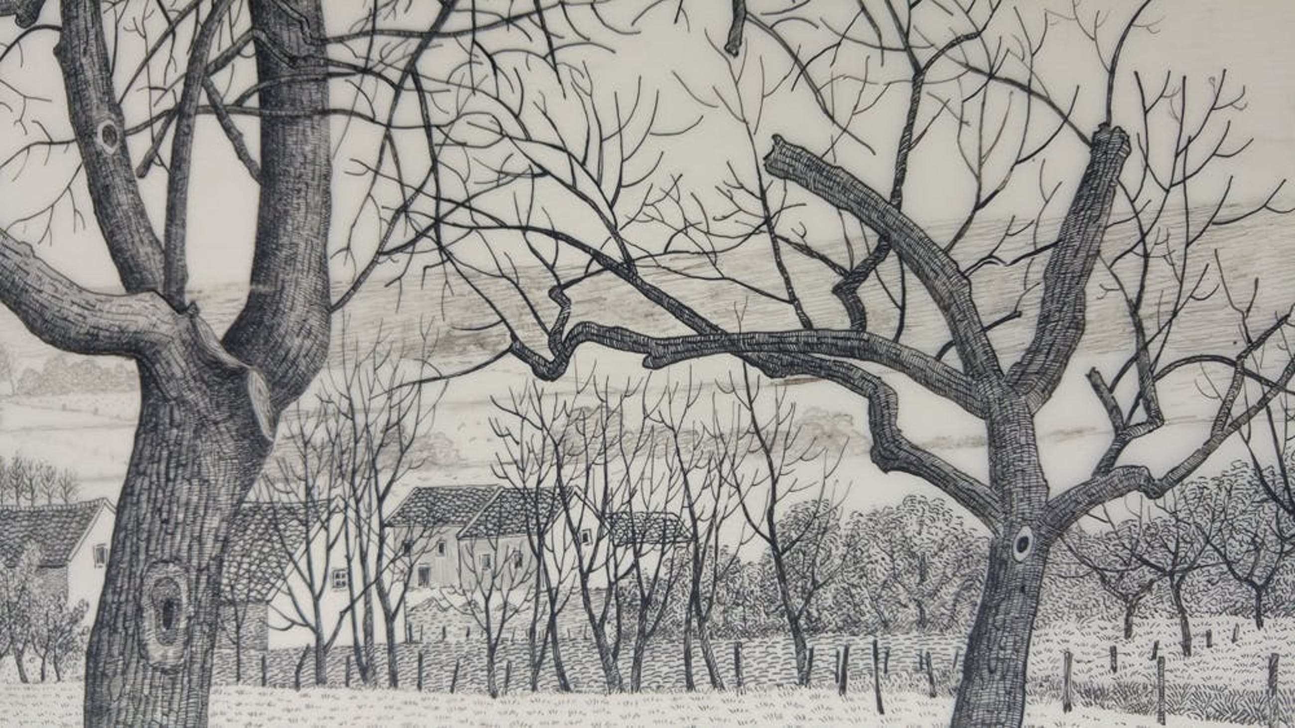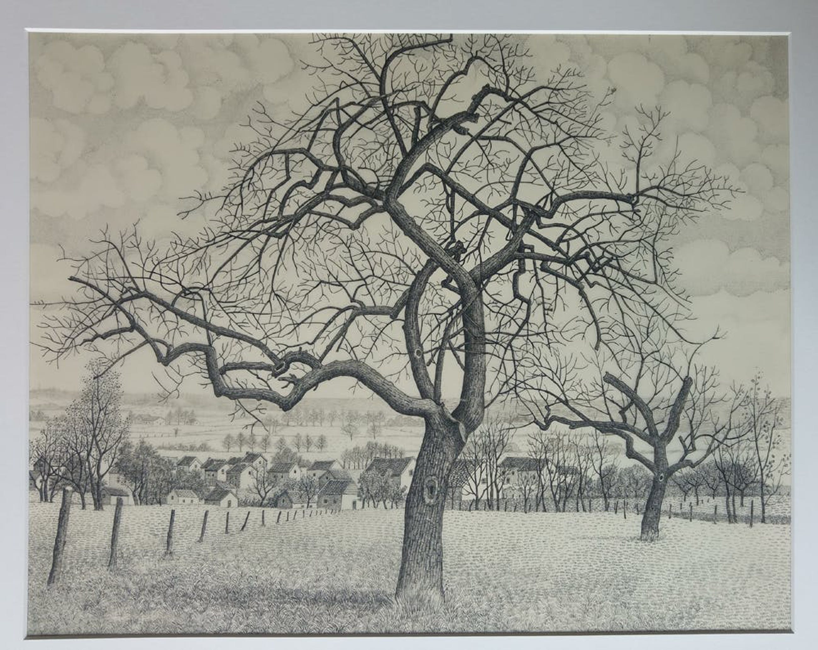 Pentekening op kalk papier, in zeer goede staat, gesigneerd rechts