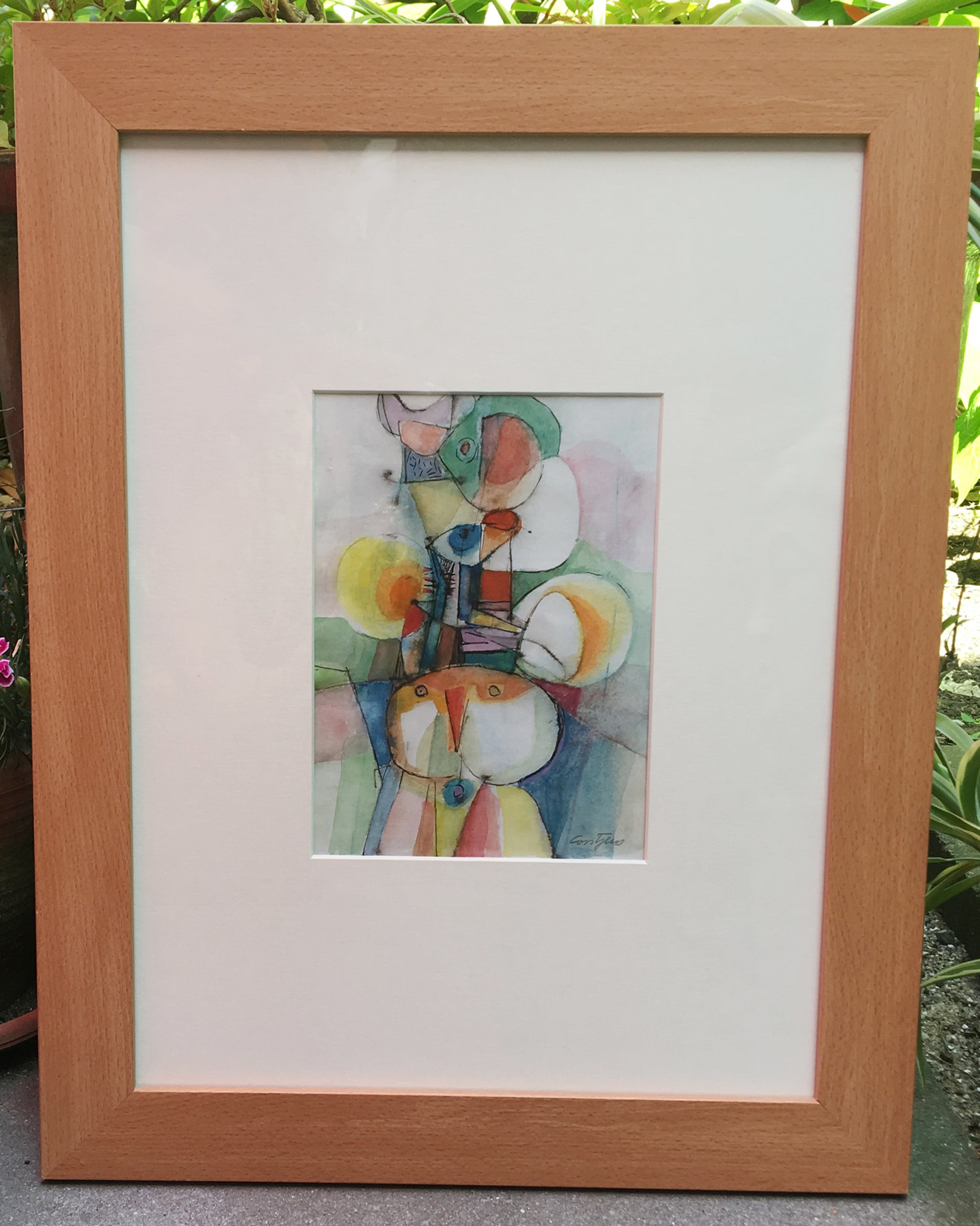 Daarnaast kunstschilder in hart en nieren. Aquarel met wissellijst H.47 x Br.37cm.