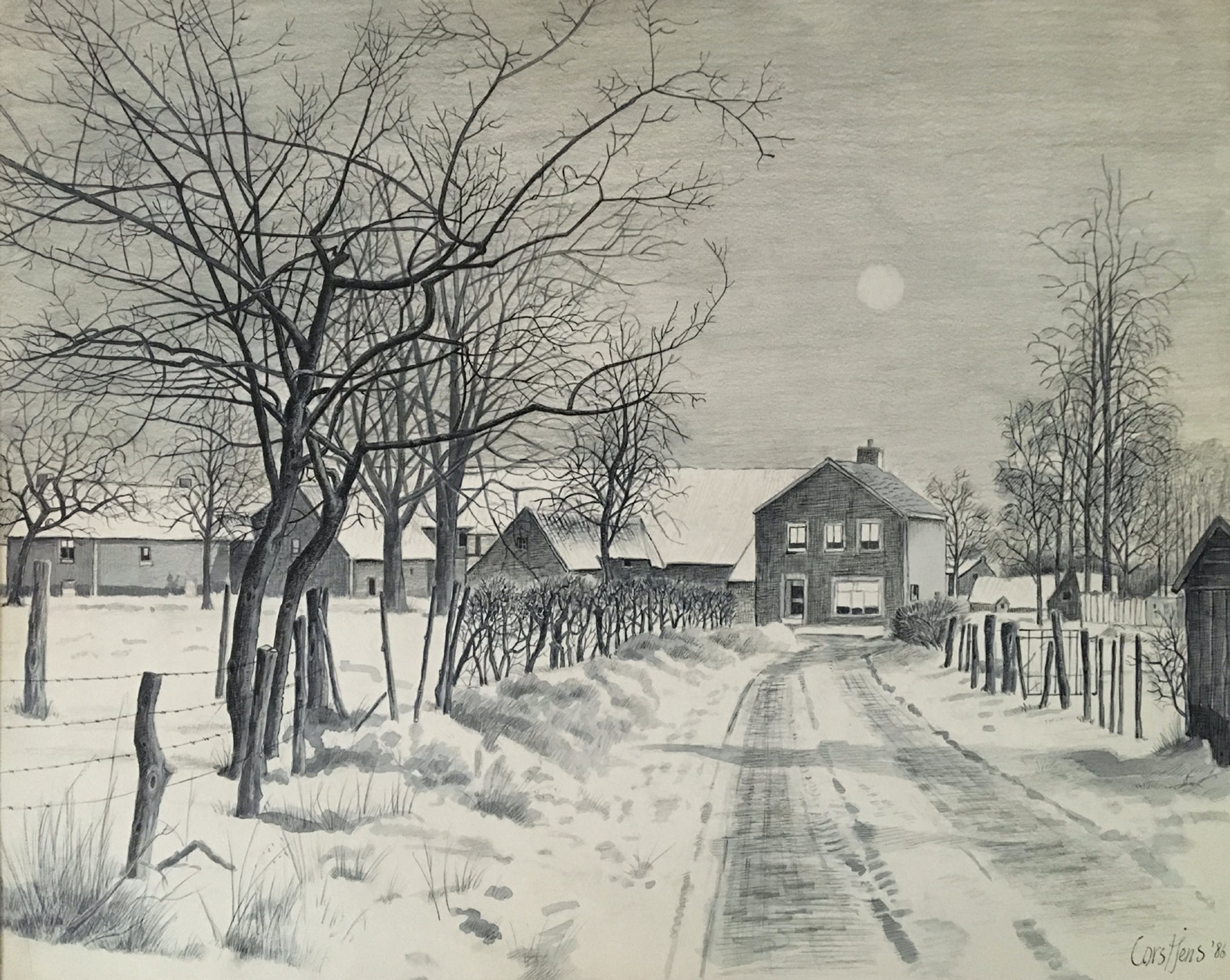 De authenticiteit van het aangeboden werk “ Winter in Limburg ” van Toine Corstjens wordt voor 100%