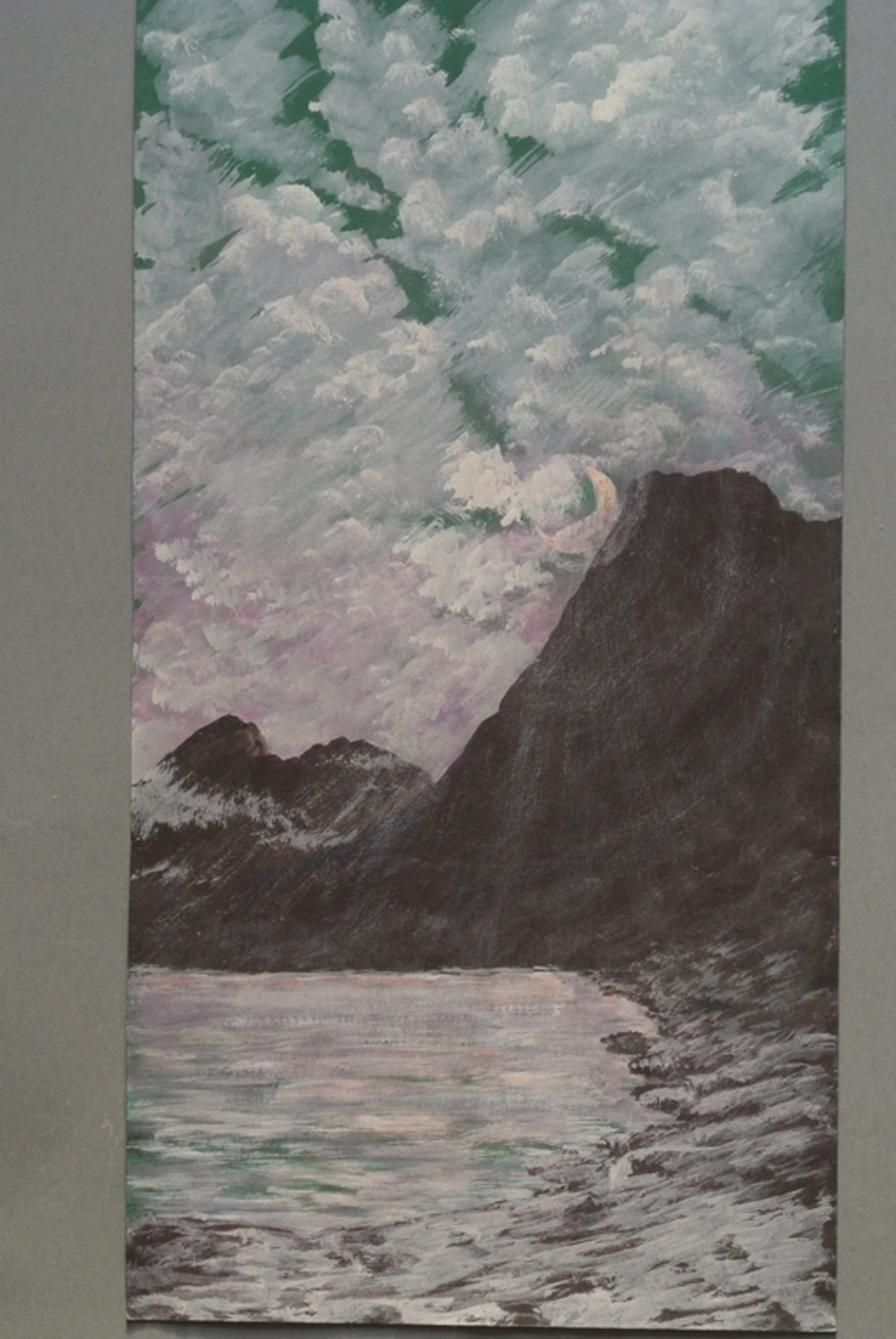 Prachtige gouache van een nachtelijk uitzicht, zoals we dat van de Scandinavische landen kennen.