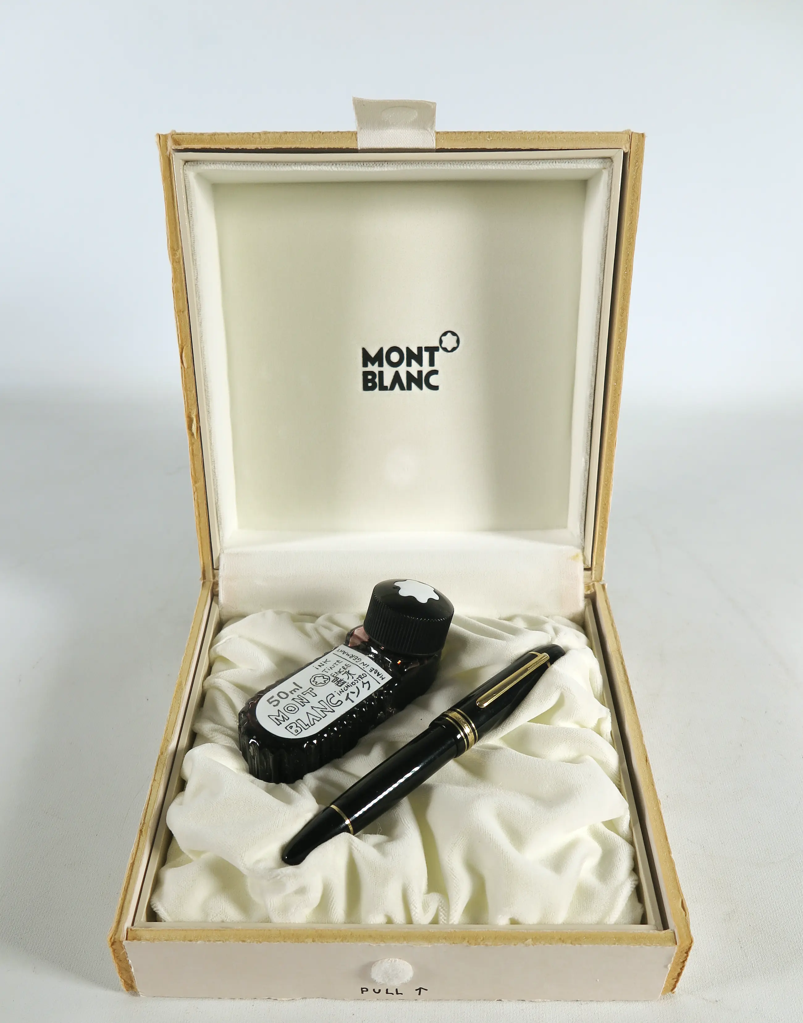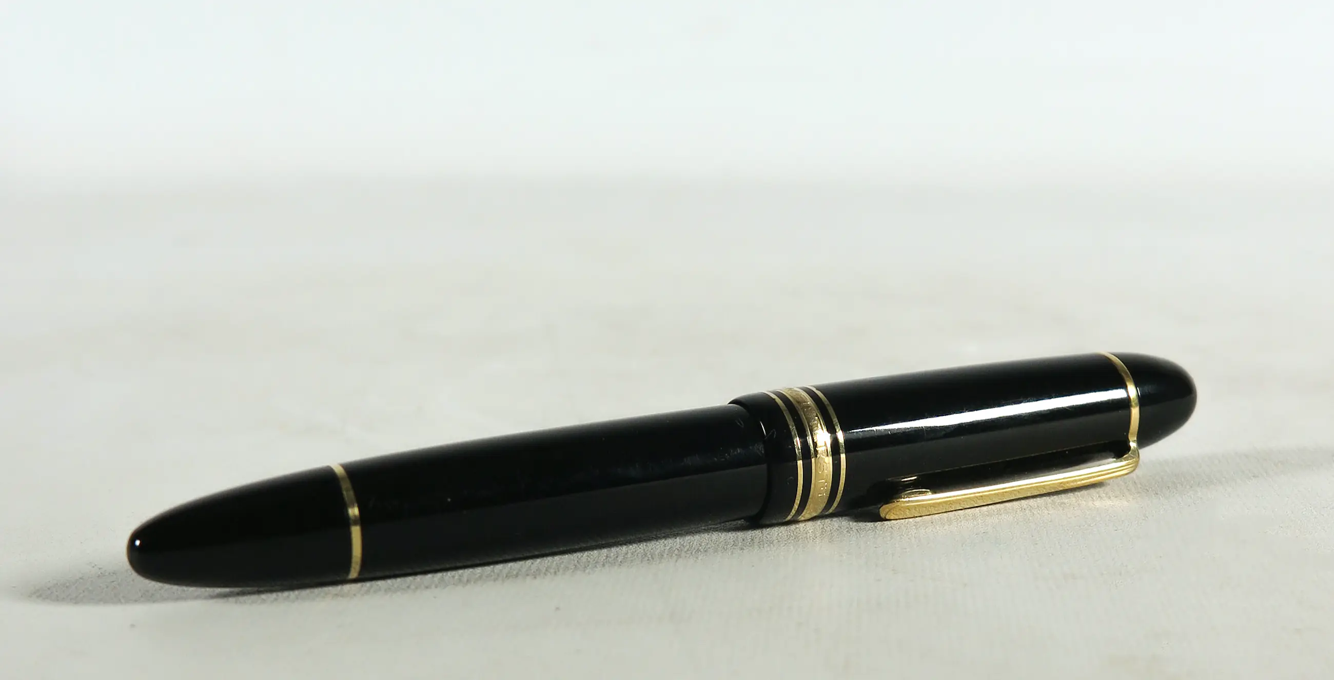 - Montblanc Meisterstück 149 vulpen met 14 kt gouden penpunt met platina inleg, body van hoogwaardige hars en vergulde ringen en clip.