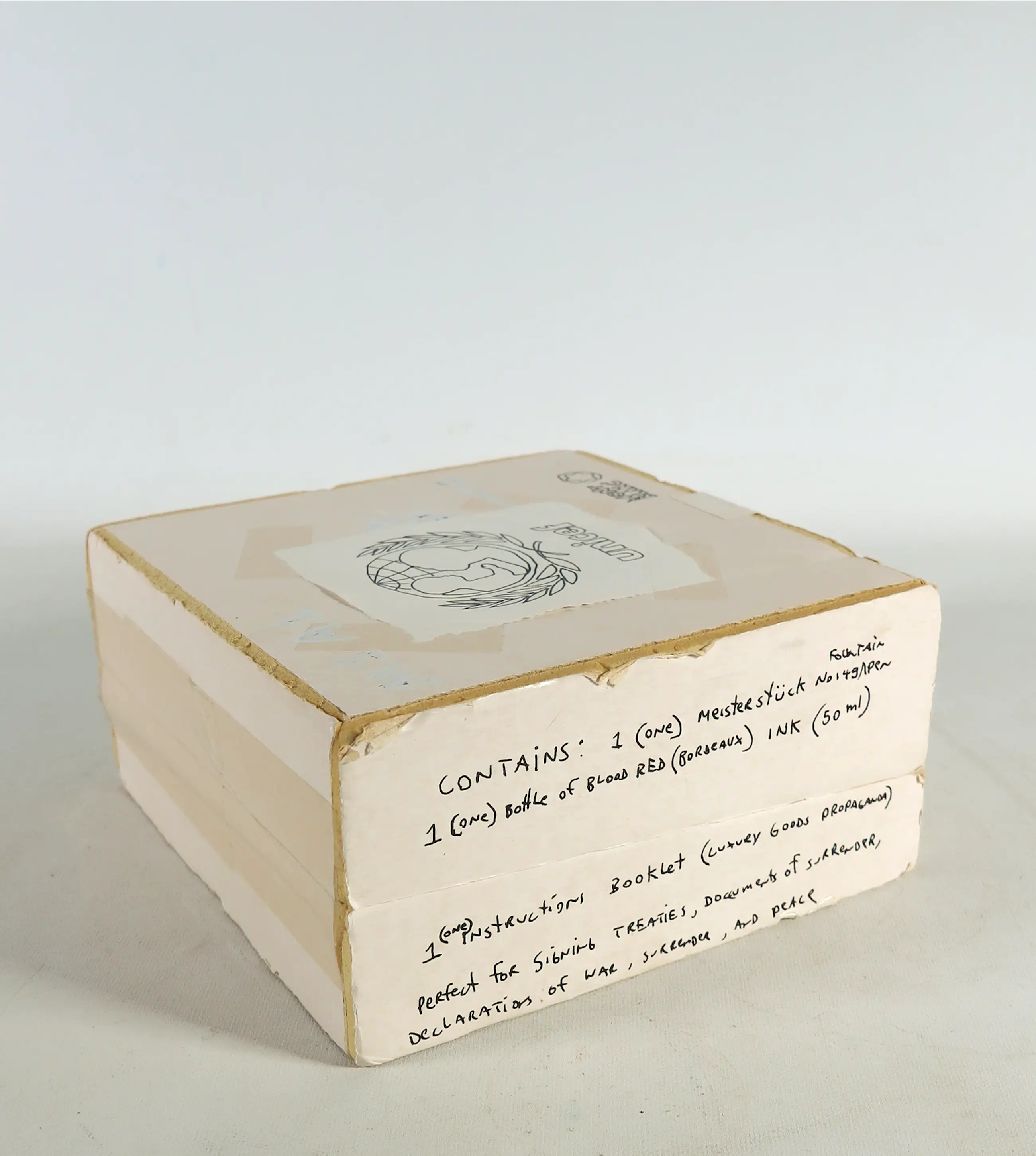 - Een door Tom Sachs ontworpen doos (hij hoort er zo uit te zien), voorzien van tekeningen, signatuur, tekst en nummer (2273/4810).