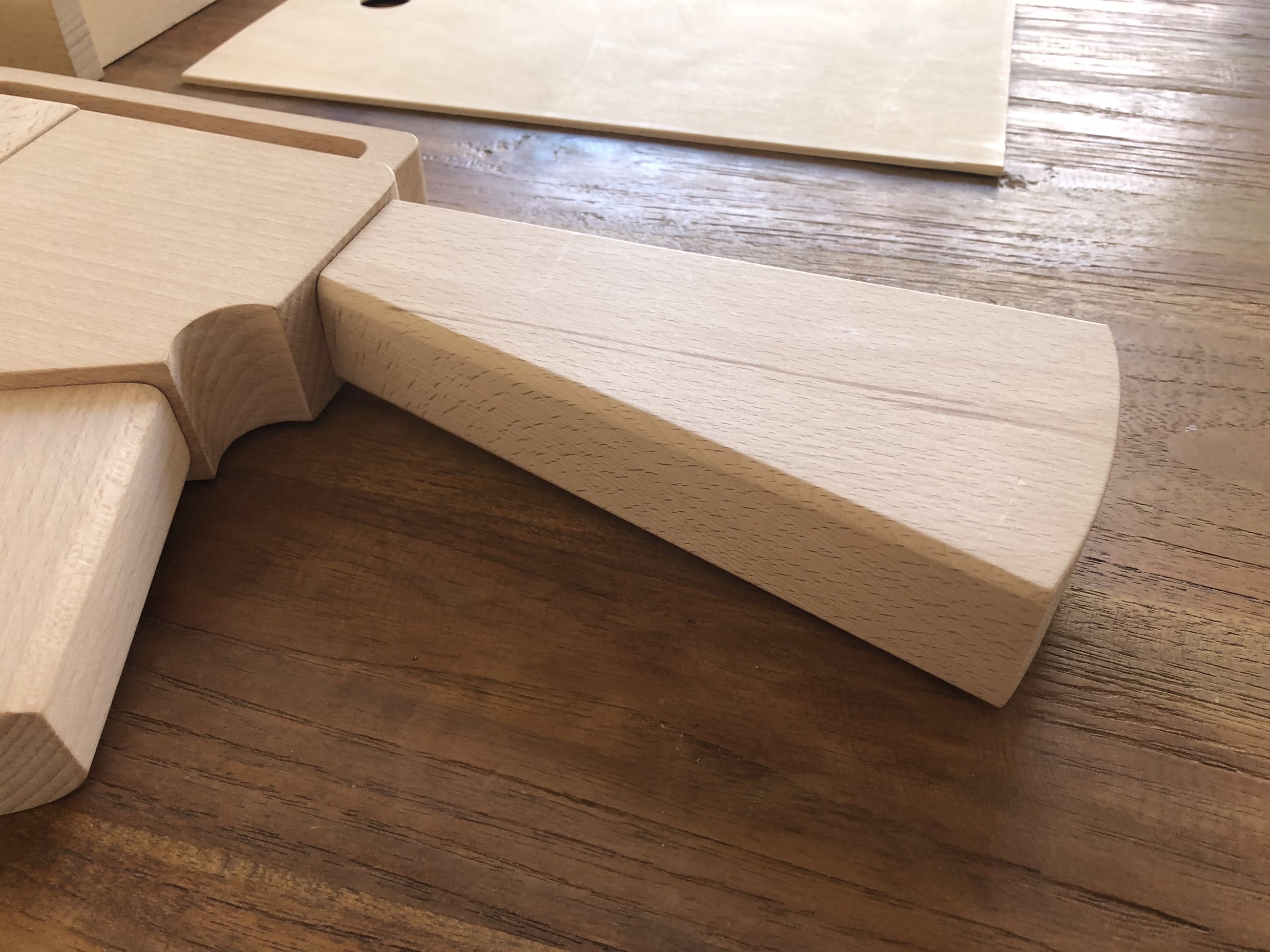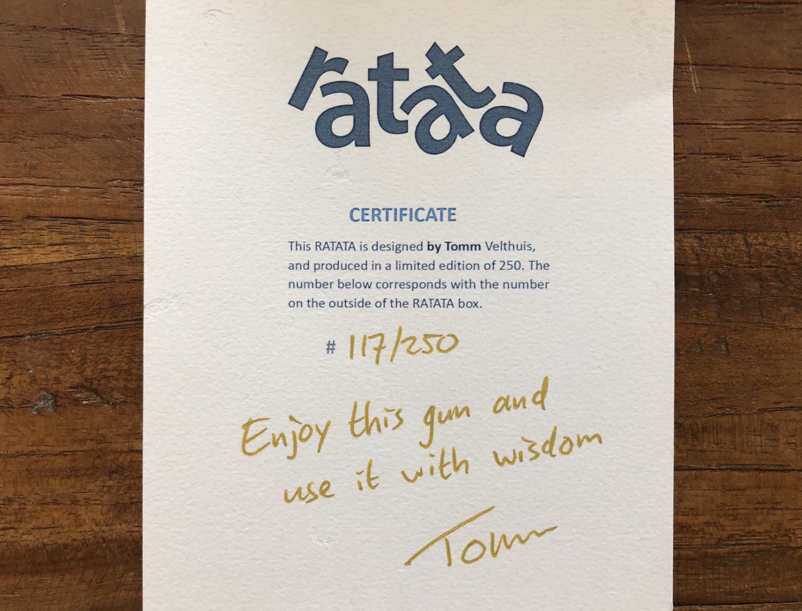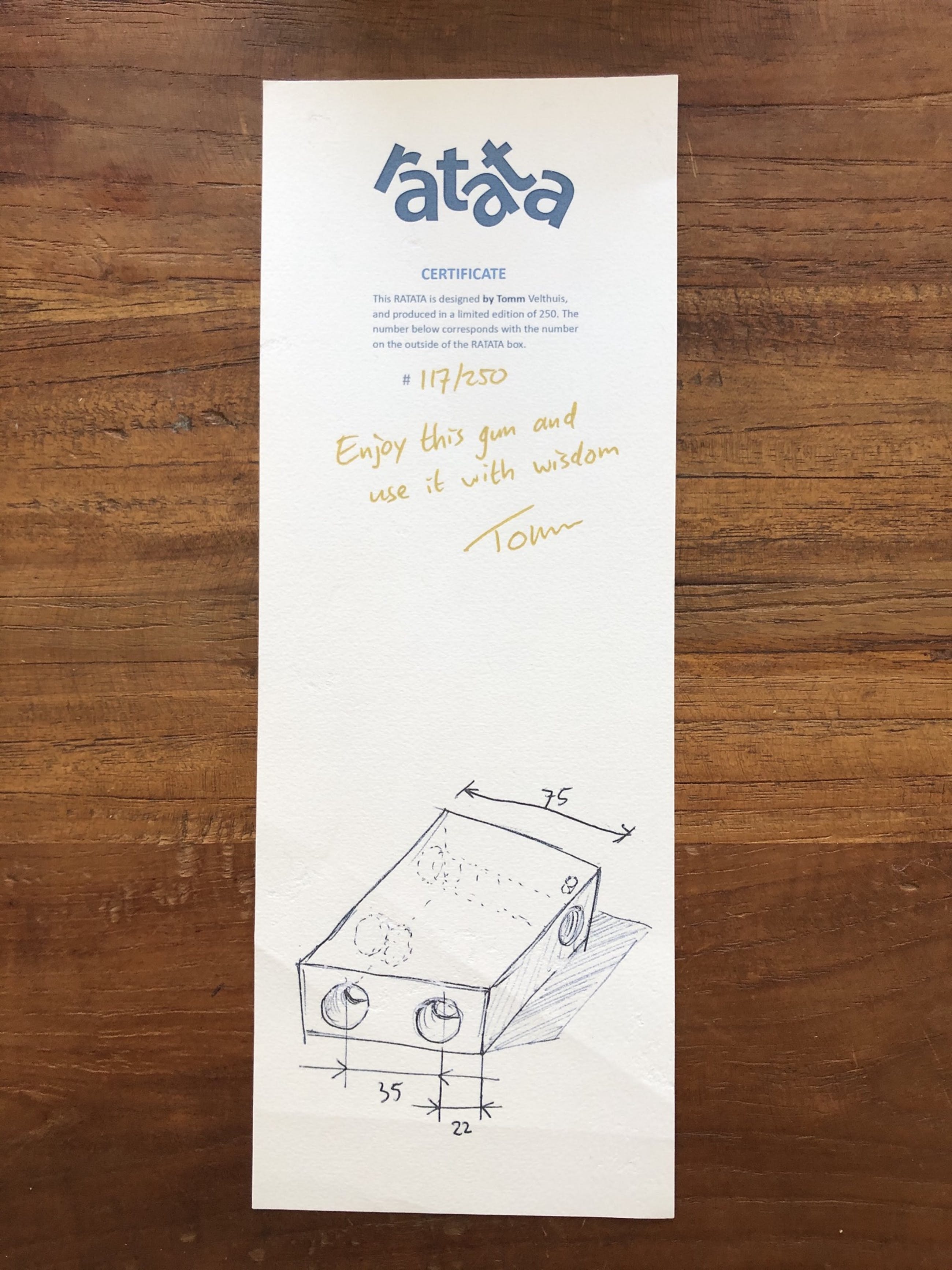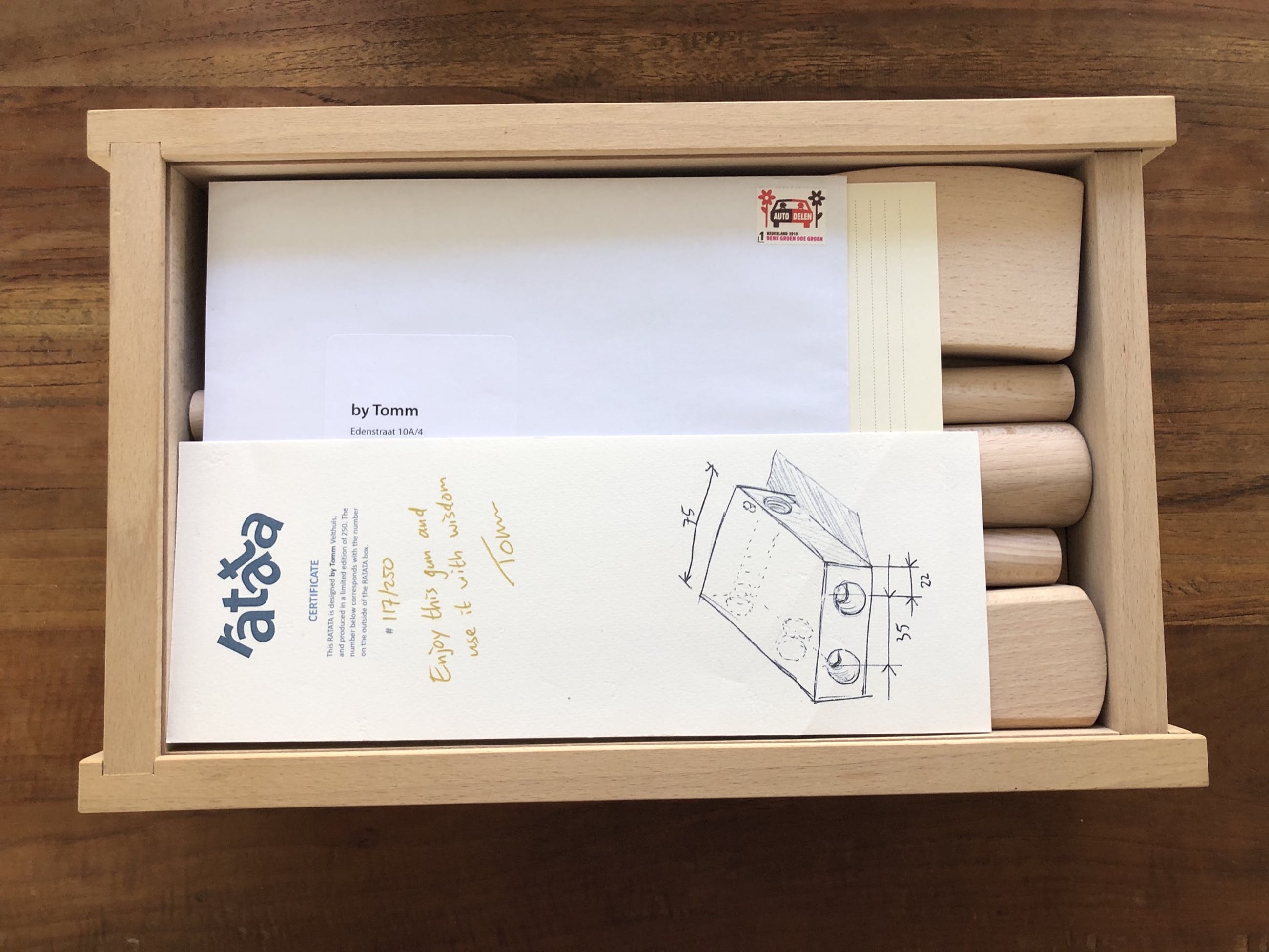 In gebouwde vorm is de Ratata 80x25x6 cm. De doos is 38x24x10 cm.