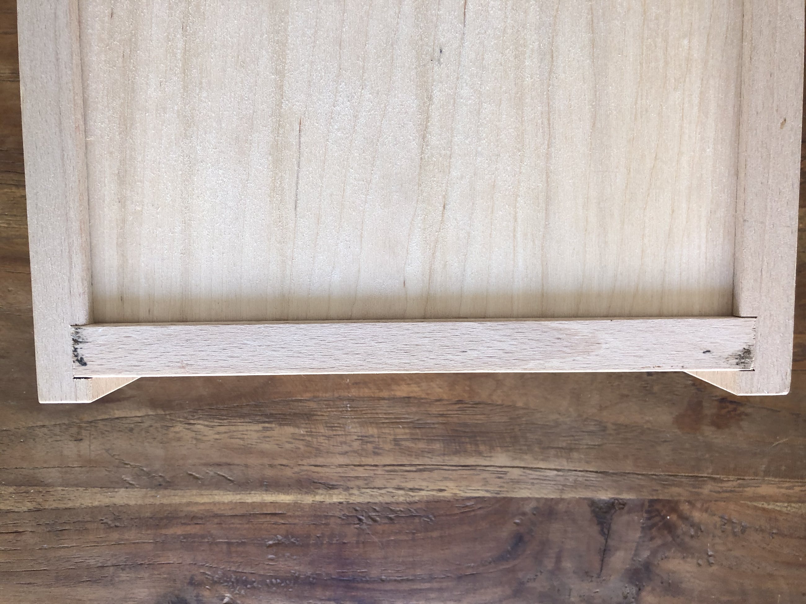 Kleine gebruikssporen aan de kist waarin het kunstwerk zit.