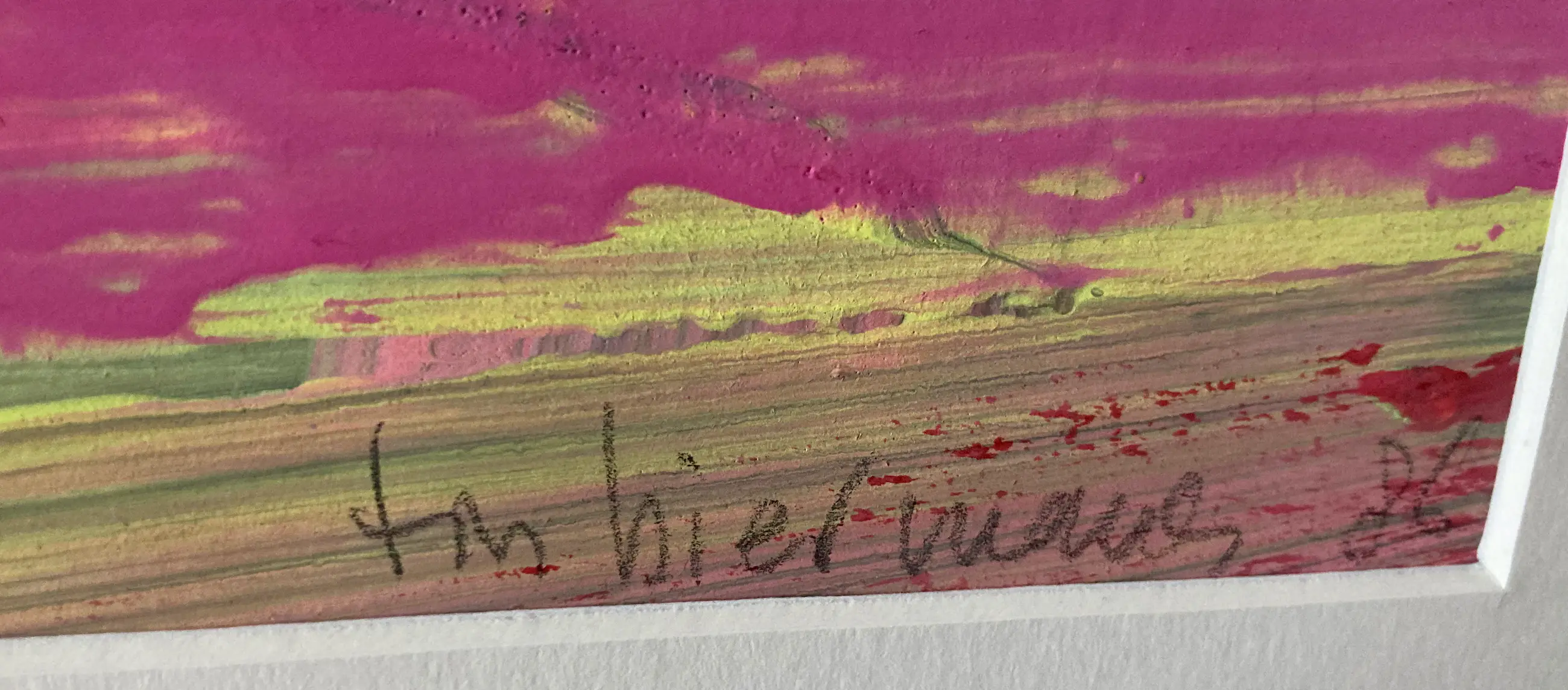 Kleurrijk abstract werk op papier van Ton Biermans (acrylverf). Het werk is gesigneerd en gedateerd. Bij het werk wordt een publicatie van Galerie Willy Schoots geleverd, met handtekening van de kunstenaar op binnenkant van de omslag (zie laatste foto).