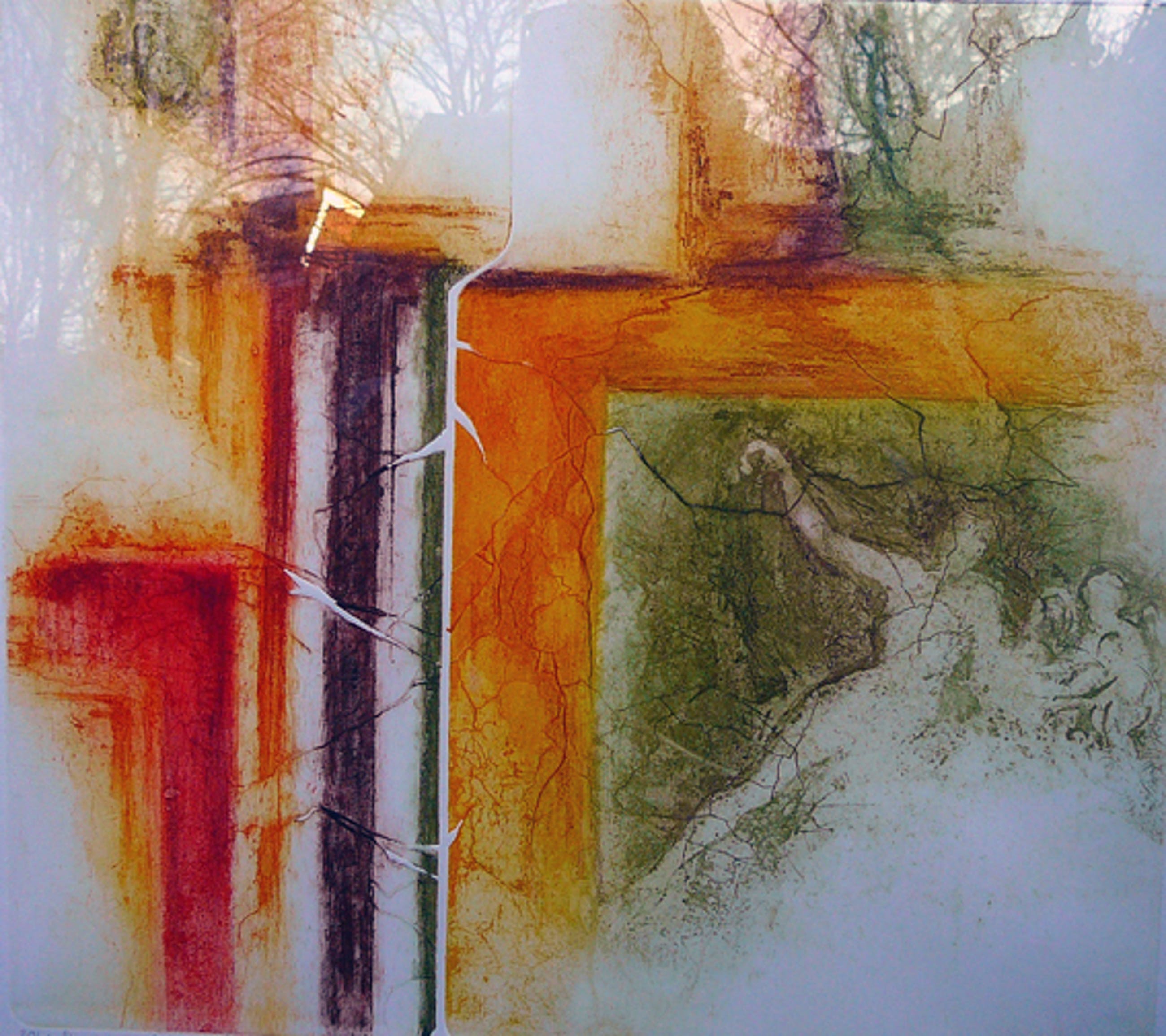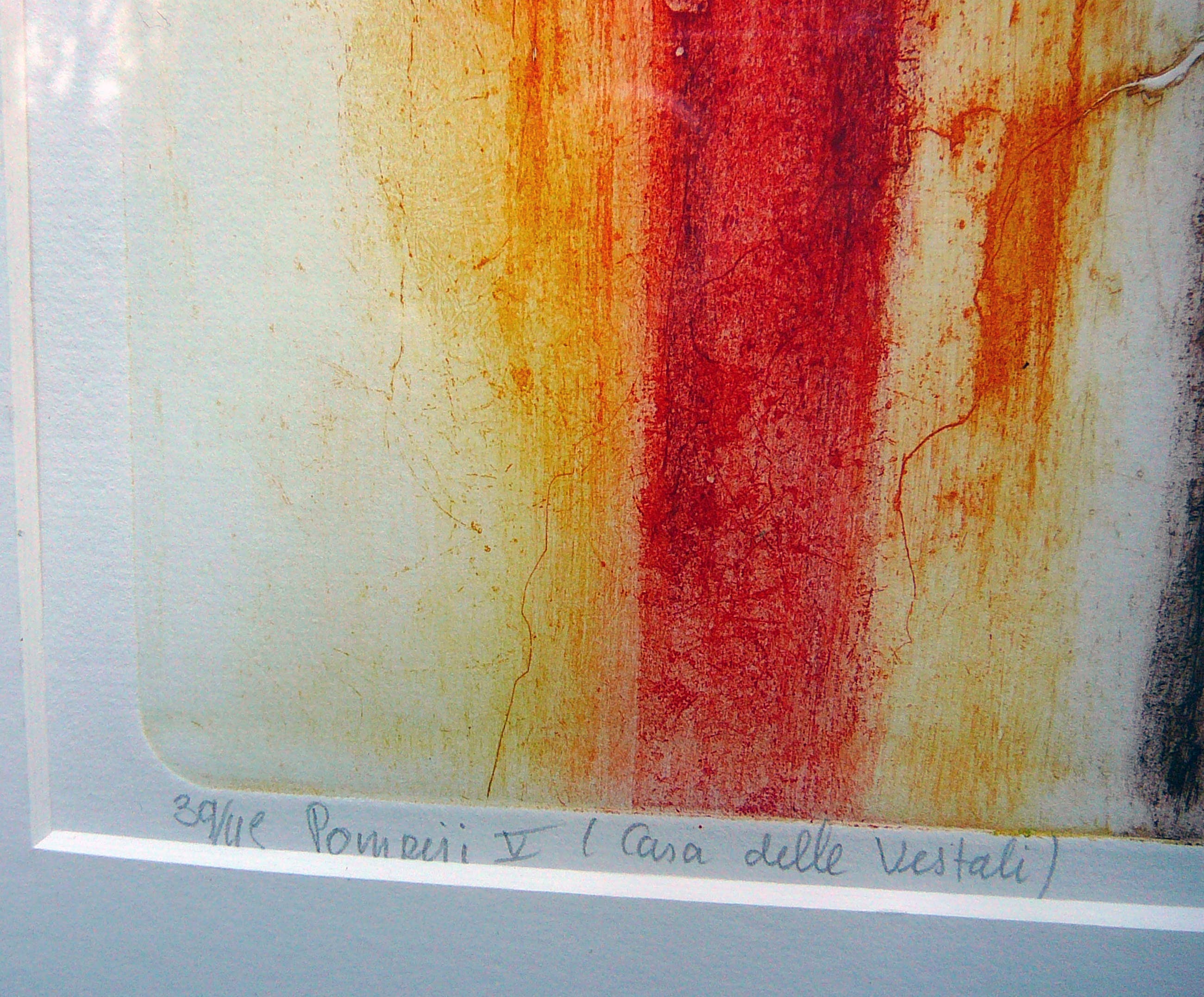 Kleurrijke, abstract-figuratieve ets van de hand van Ton Diekstra. Gelijst achter glas, met potlood gesigneerd, betiteld en genummerd 39/45. Enige schittering in afbeeldingen door glasplaat. Vanwege formaat en kwetsbaarheid alleen af te halen in Utrecht.