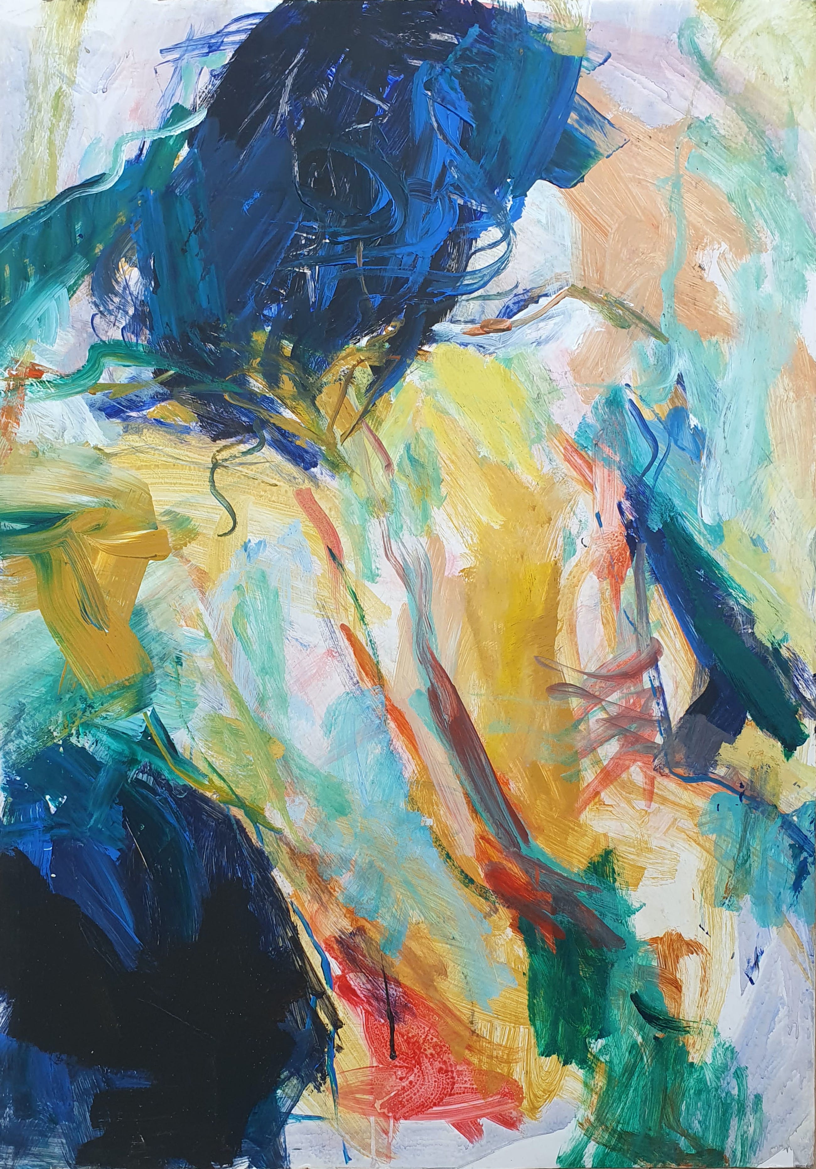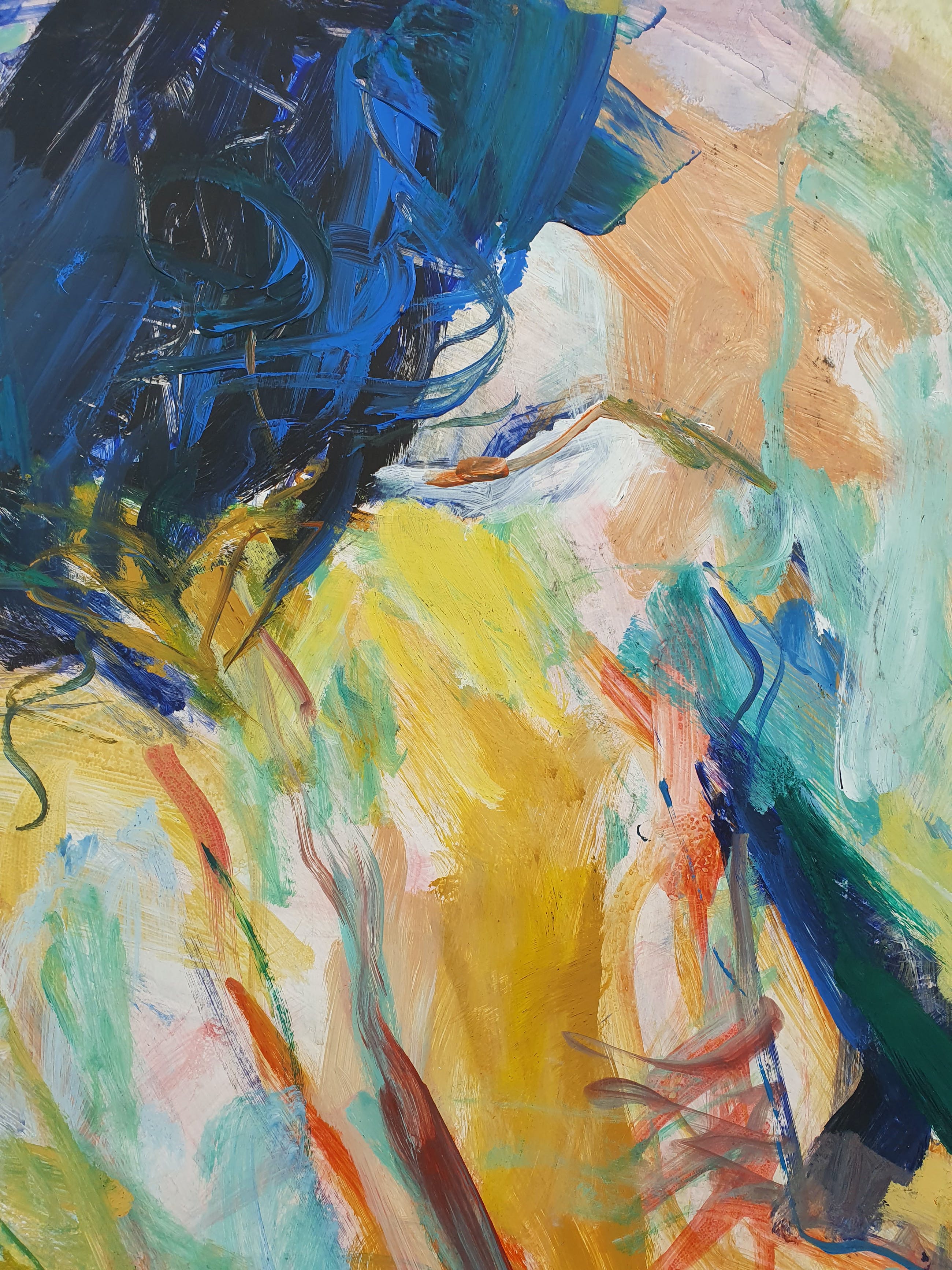 Fraai kleurrijk abstract werk van Ton Etman. Op de achterzijde van het werk zit nog een houtskool tekening (zie foto 3)