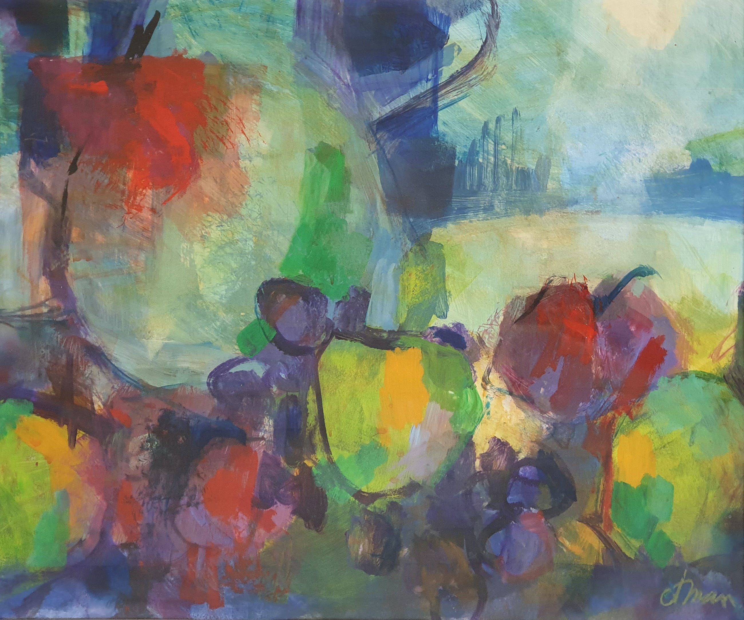 Fraai stilleven van de Nederlandse kunstenaar Ton Etman. Het werk is rechtsonder gesigneerd door de kunstenaar.
