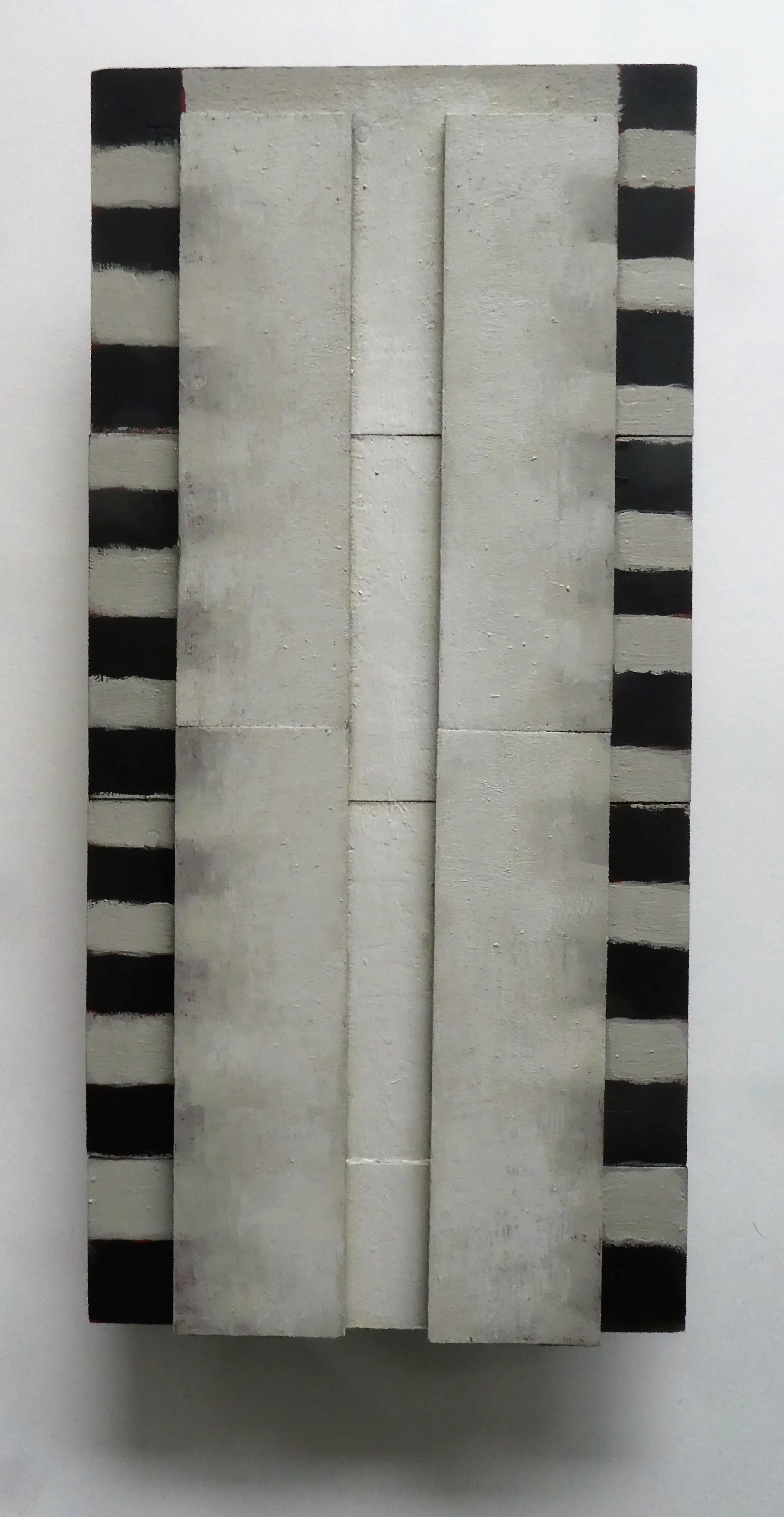 Het formaat van dit werk is 43,5 x 21 x 6 cm Uitstekend staat. Geen verfverlies. Gesigneerd op de achterzijde met naam, datum en plaatsnaam: Parijs 1995. Dit is een van de (weinige) werken die de kunstenaar heeft gemaakt van sigaren-kistjes-dozen en die daarna door hem beschilderd is.