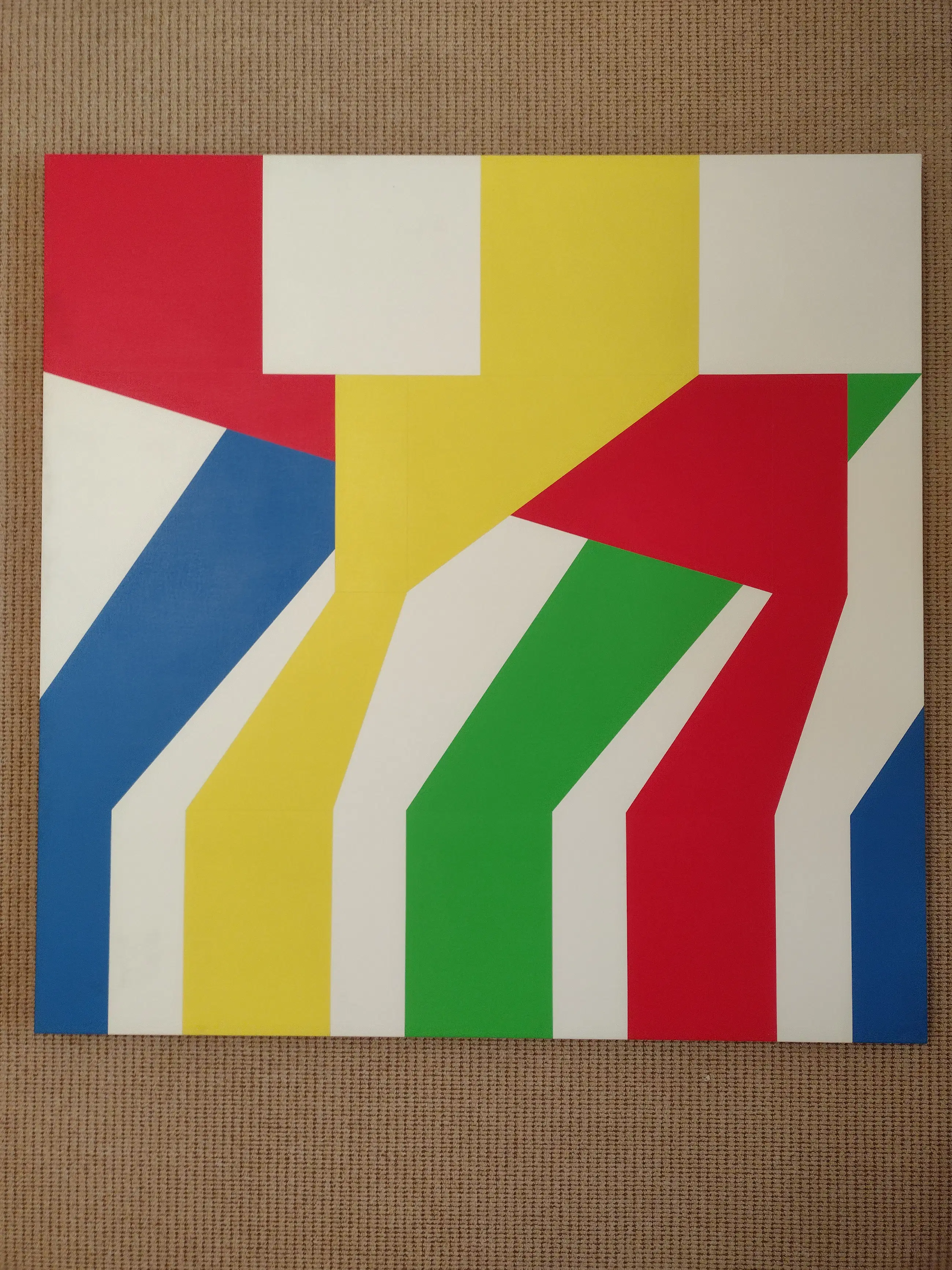 Prachtig vierkant werk van de Utrechtse kunstenaar Ton Gouka. Ton is in zijn jonge jaren opgeleid als beeldhouwer. Daarnaast was hij evenwel steeds actief als schilder, tekenaar, maakte hij ruimtelijke objecten en digitale kunst. Als schilder experimenteerde hij eindeloos met vorm en kleur.
