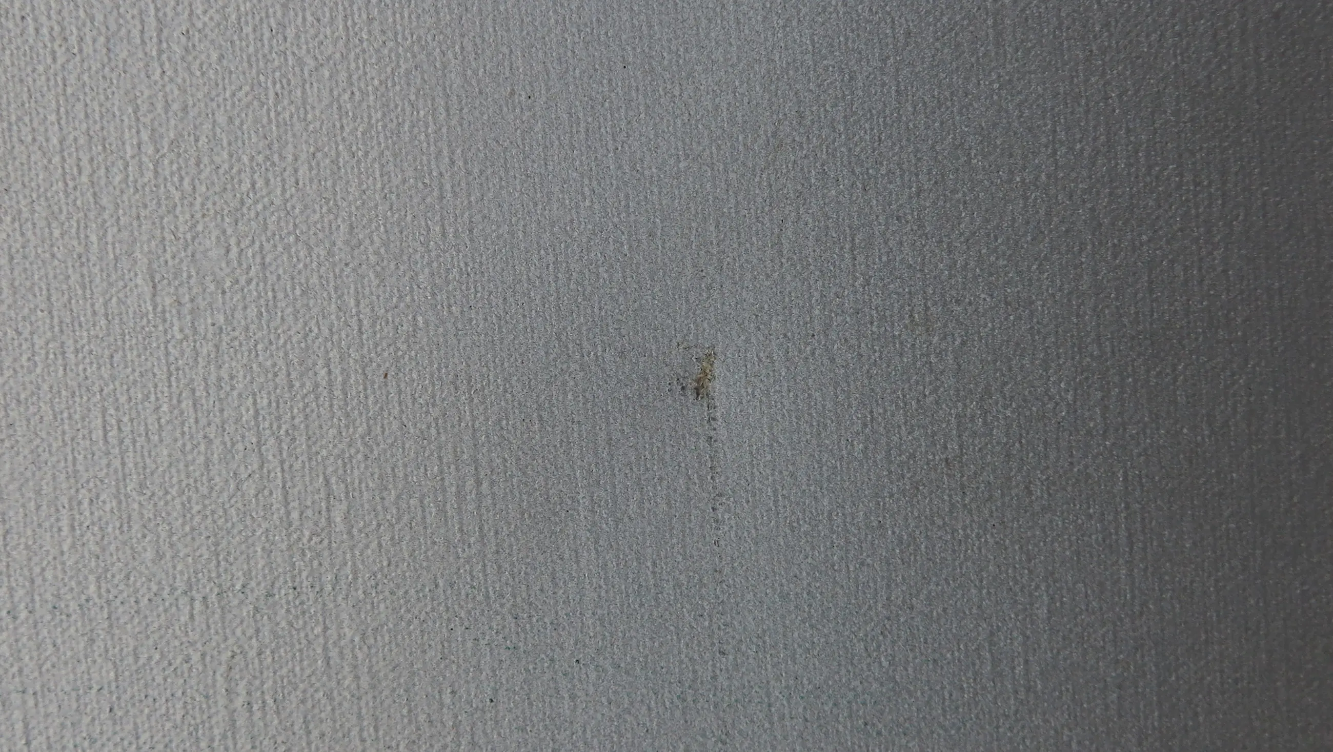 | Vooral aan de randen zitten wat vuile plekjes, verfschade en twee scheurtjes. | |