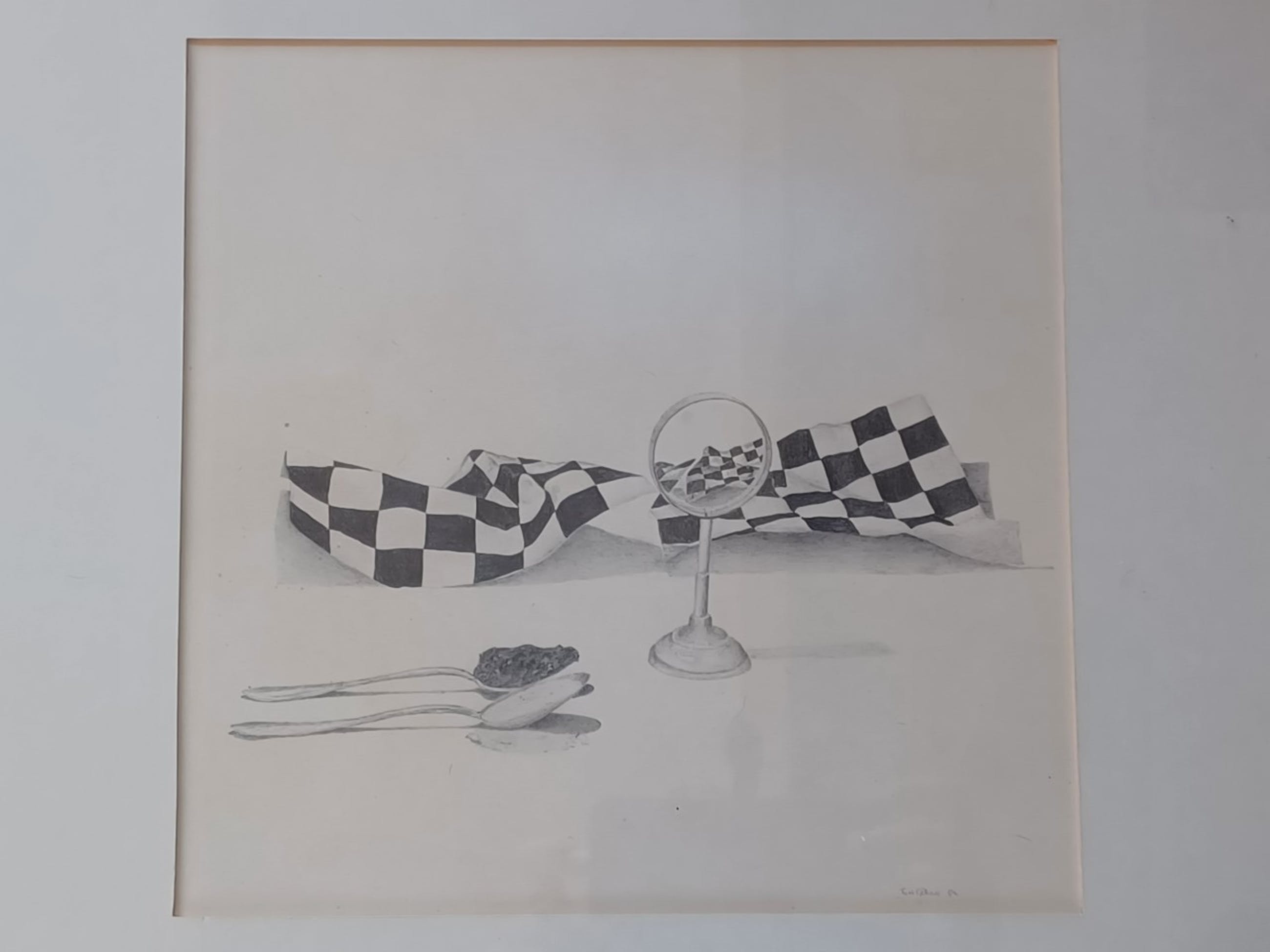 Ton Paauw, een veelzijdig kunstenaar. Is beeldhouwer, wandschilder, schilder en fotograaf. Maar ook met een potlood kon hij goed overweg. Kan worden opgestuurd maar glasbreuk blijft risico koper.