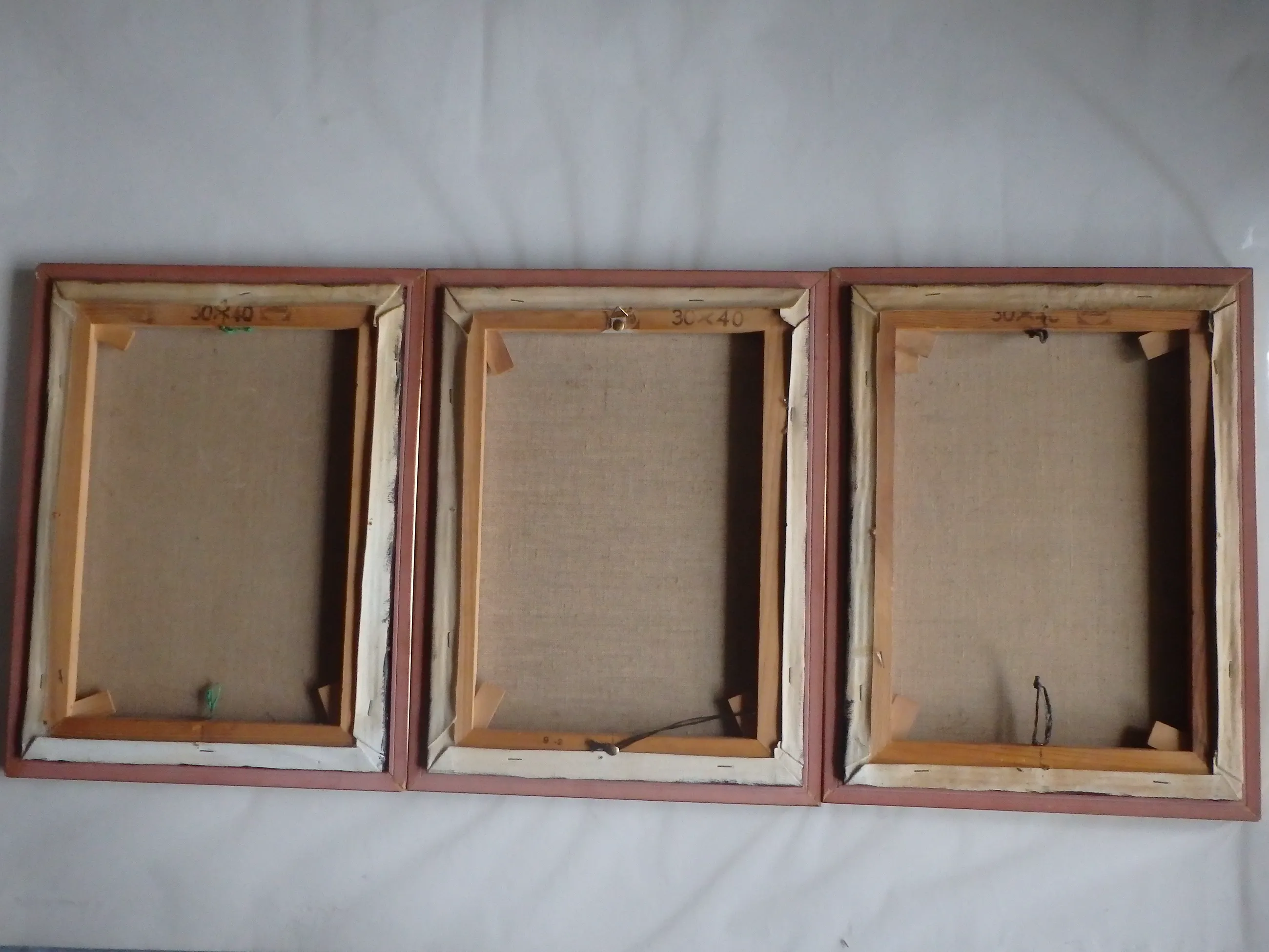 Olieverf op doeken 40x30, w.v. 2 stuks rechtsonder gesigneerd Ton Pape en gedateerd '97 en 1 schilderij niet gesigneerd in authentieke originele lijsten.
