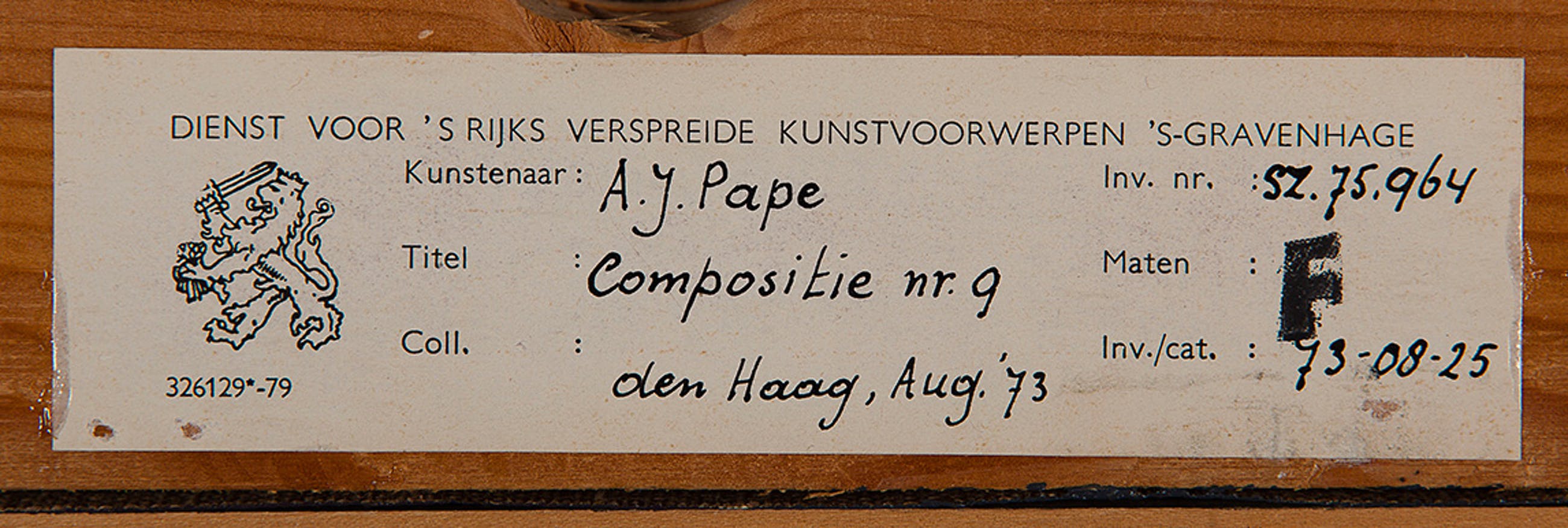 Herkomst: BKR Den Haag (Het kunstwerk is afgevoerd uit de rijkscollectie in 2018)