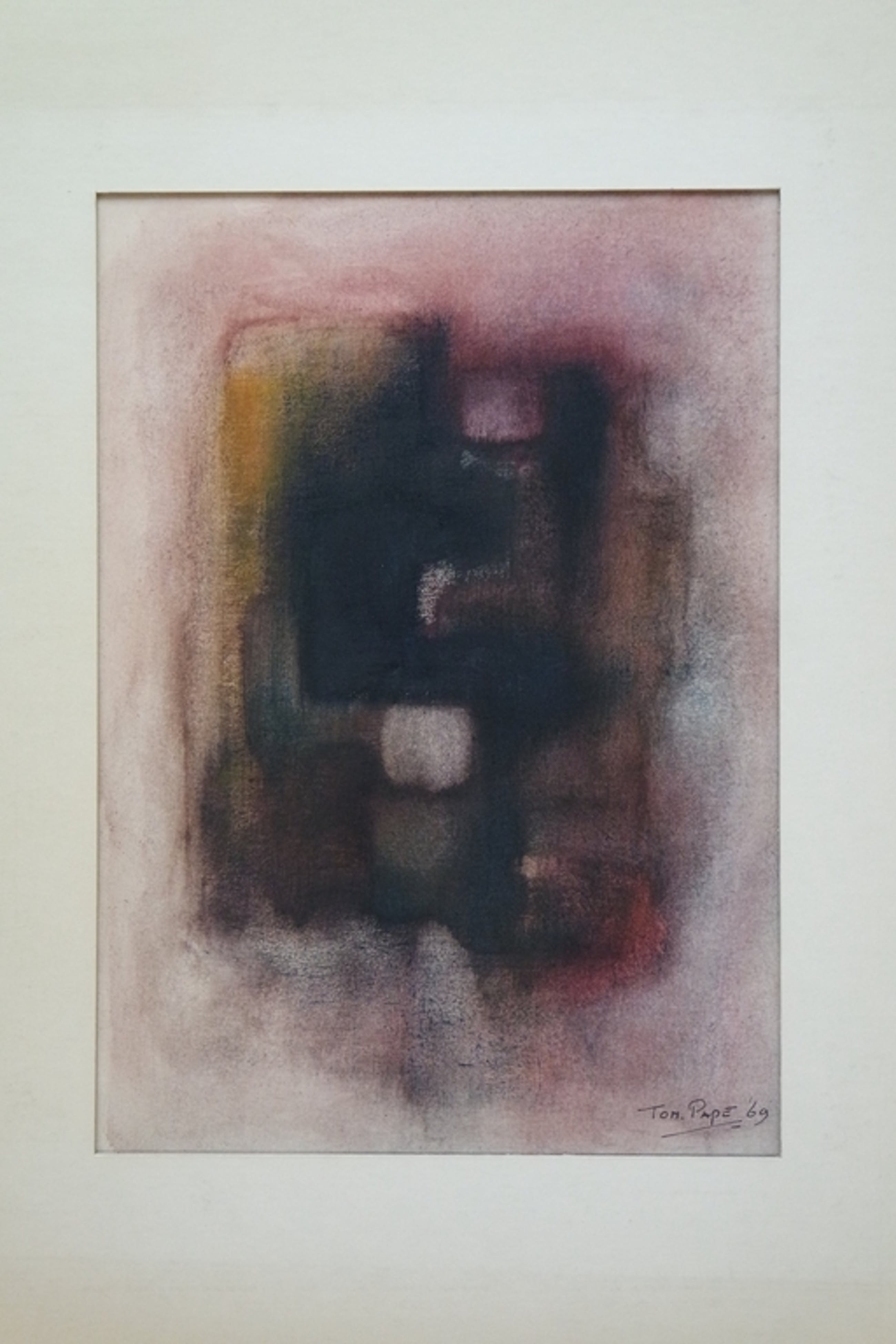 Een schitterende gouache (abstracte compositie VI) van de Nederlandse kunstenaar Ton Pape (1916 - 2003). Met passe partout. Gesigneerd rechts onder en gedateerd 1969. Beeldmaat: 20,5 cm. x 29 cm. Conditie: goed. Het kunstwerk wordt goed gepakt en GRATIS (binnen Nederland) verzonden. Afhalen is ook mogelijk.