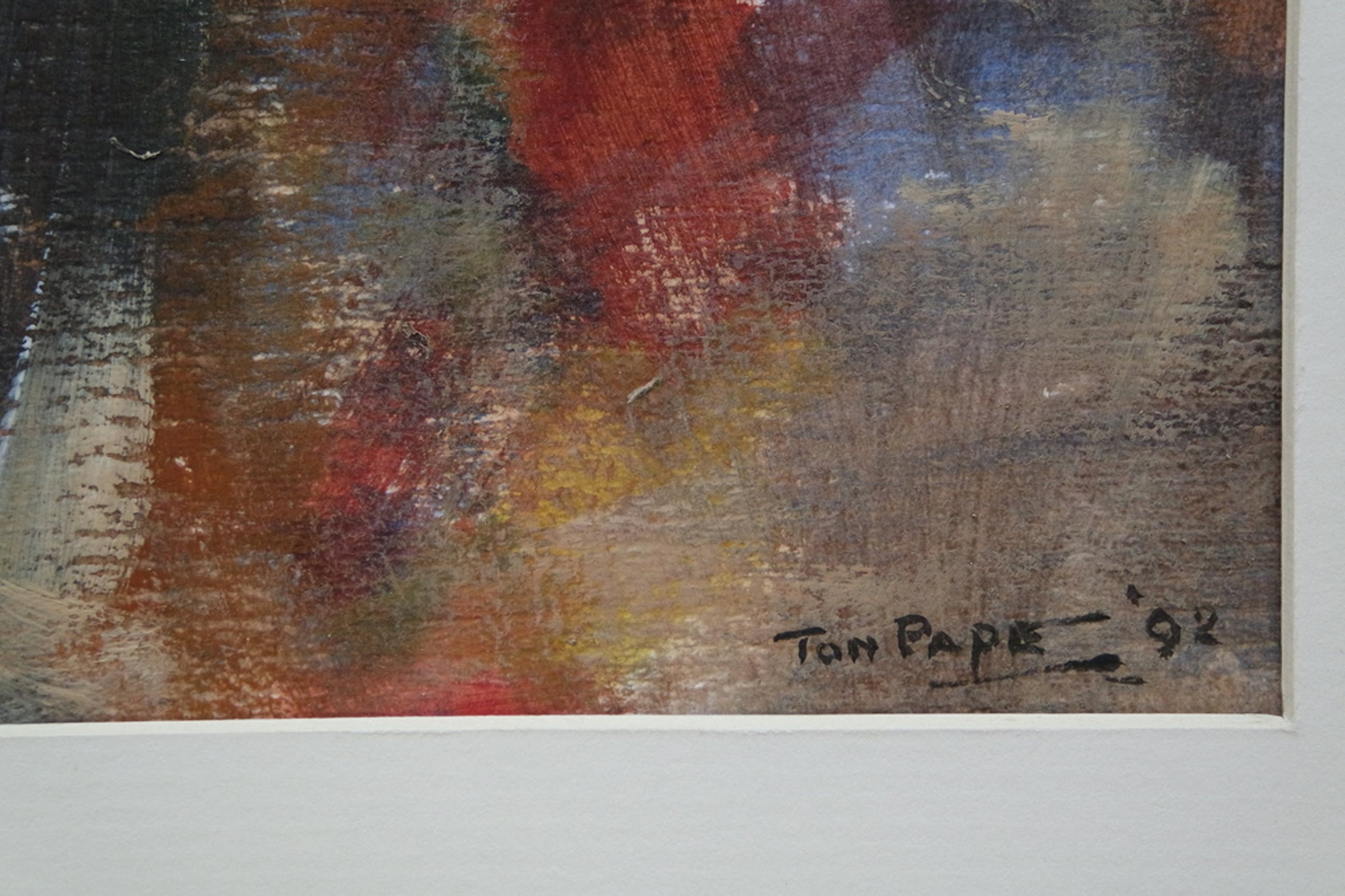 Een prachtige gouache (abstracte compositie VII) van de Nederlandse kunstenaar Ton Pape (1916 - 2003). Met passe partout. Gesigneerd rechts onder en gedateerd 1992. Beeldmaat: 34 cm. x 42 cm. Conditie: goed. Het kunstwerk wordt goed gepakt en GRATIS (binnen Nederland) verzonden. Afhalen is ook mogelijk.