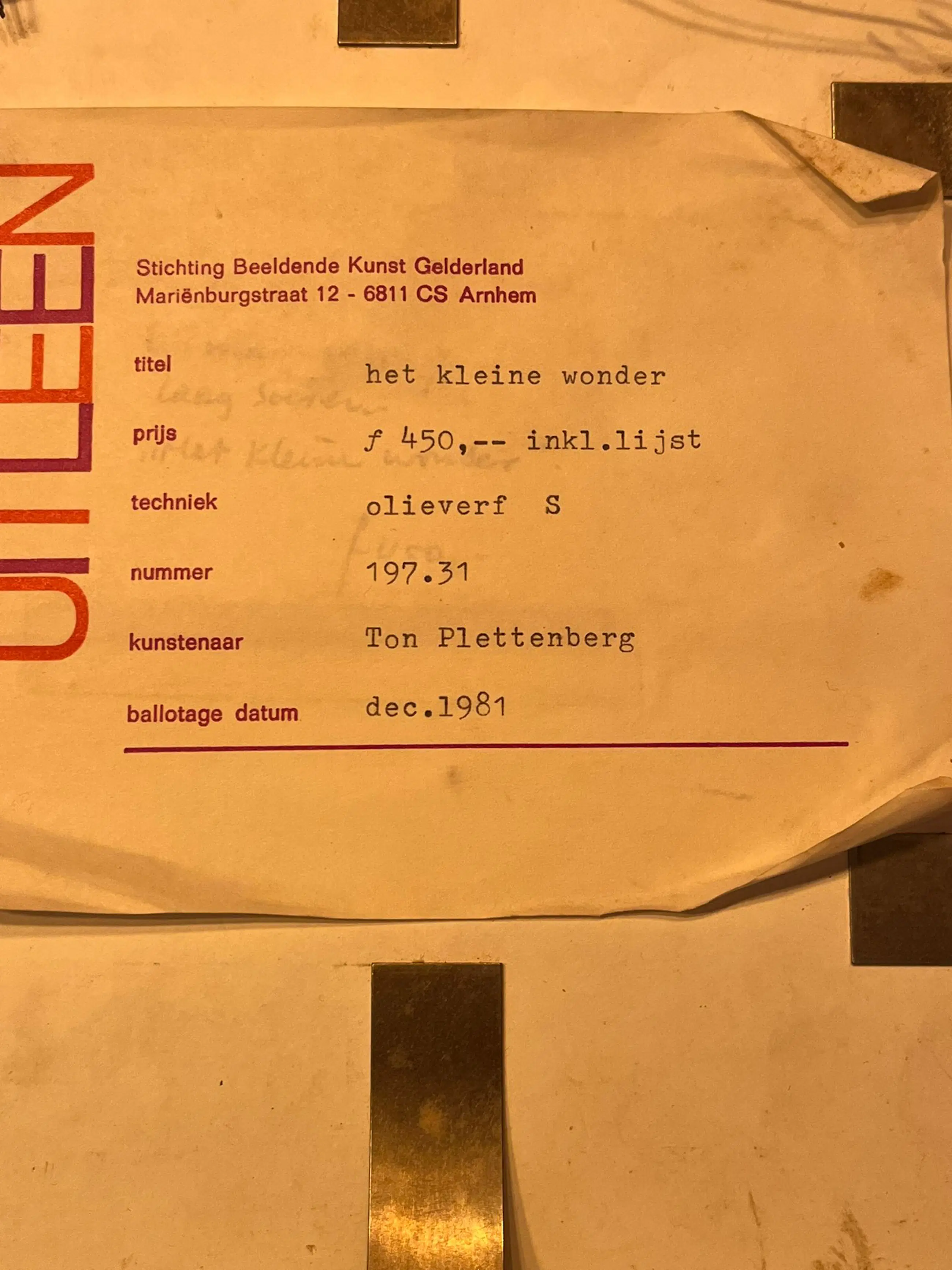 Schilderij van Ton Plettenberg uit december 1981. Mijn oma heeft deze ooit geleend bij stichtende kunst, en mocht deze daarna houden.