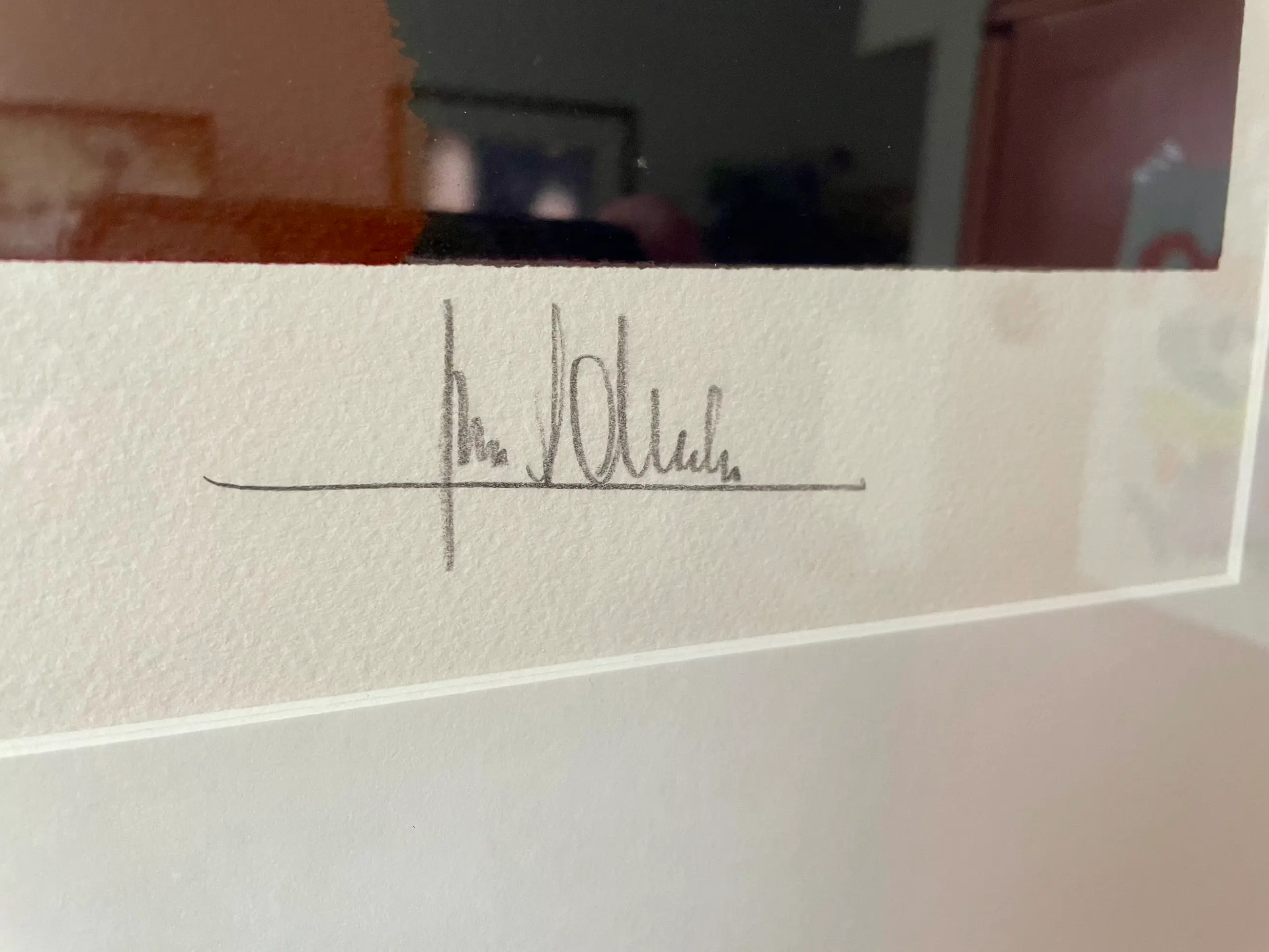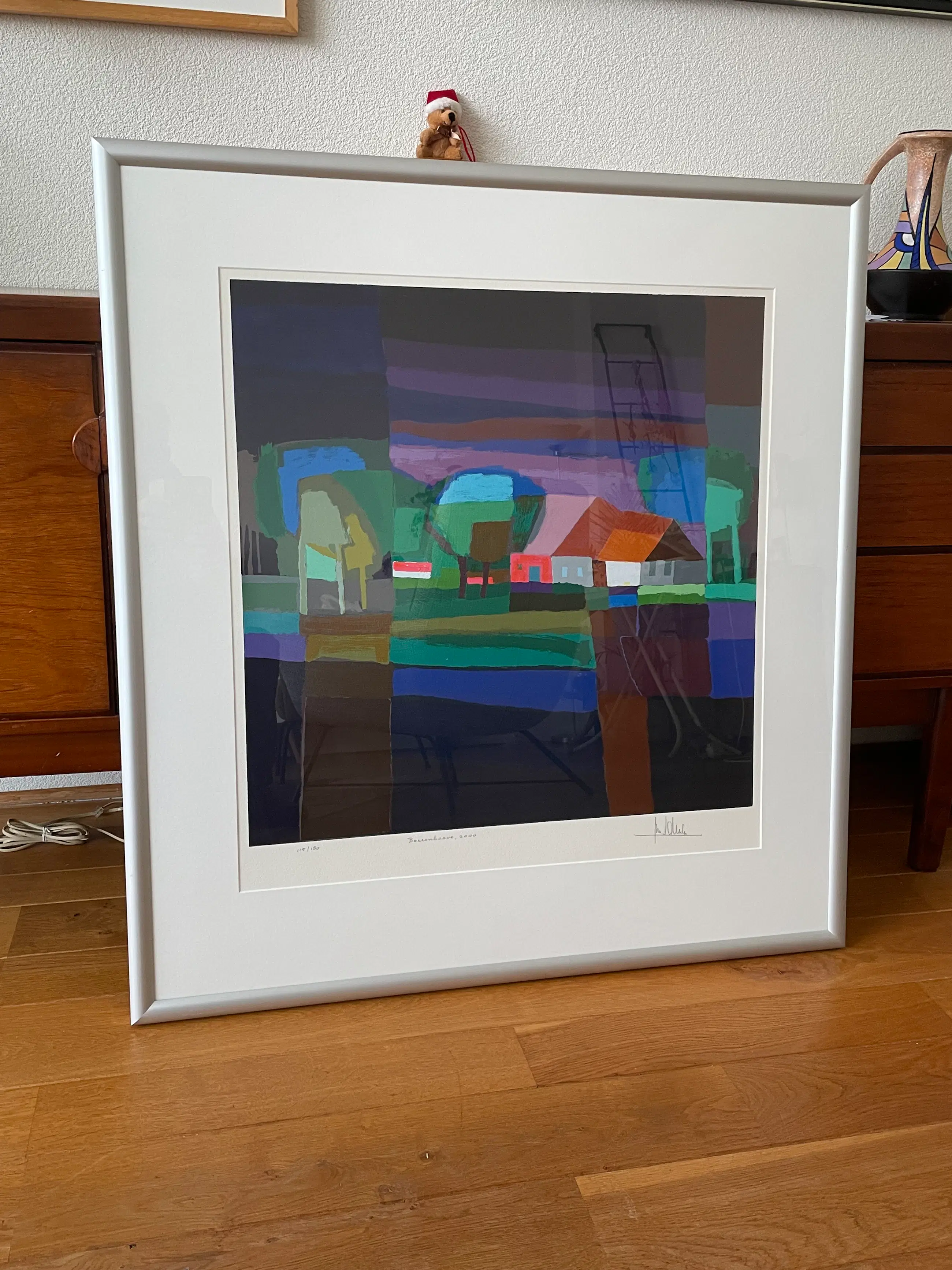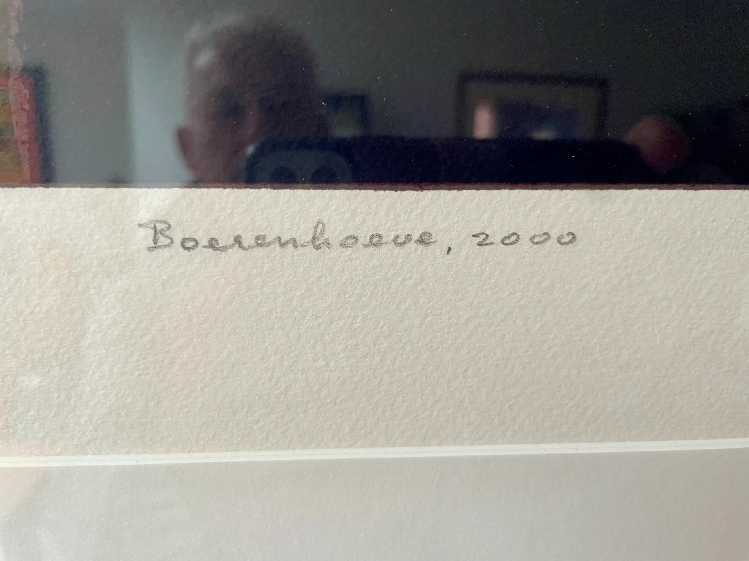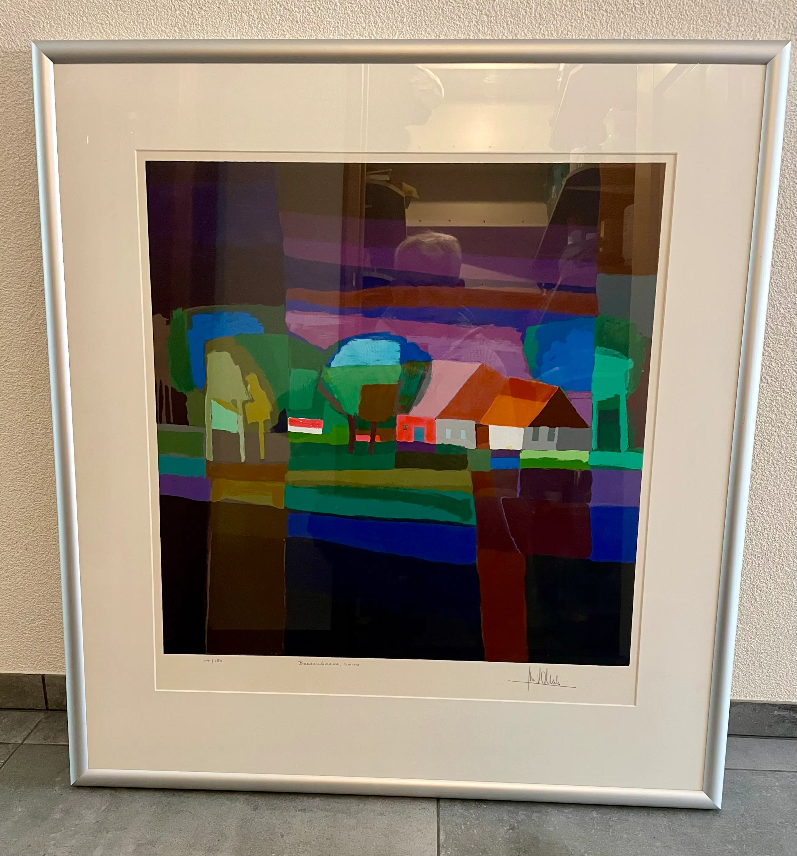 Het betreft een zeefdruk uit 2000 ingelijst met passe partout. Het werk is hand gesigneerd en genummerd: 115/180