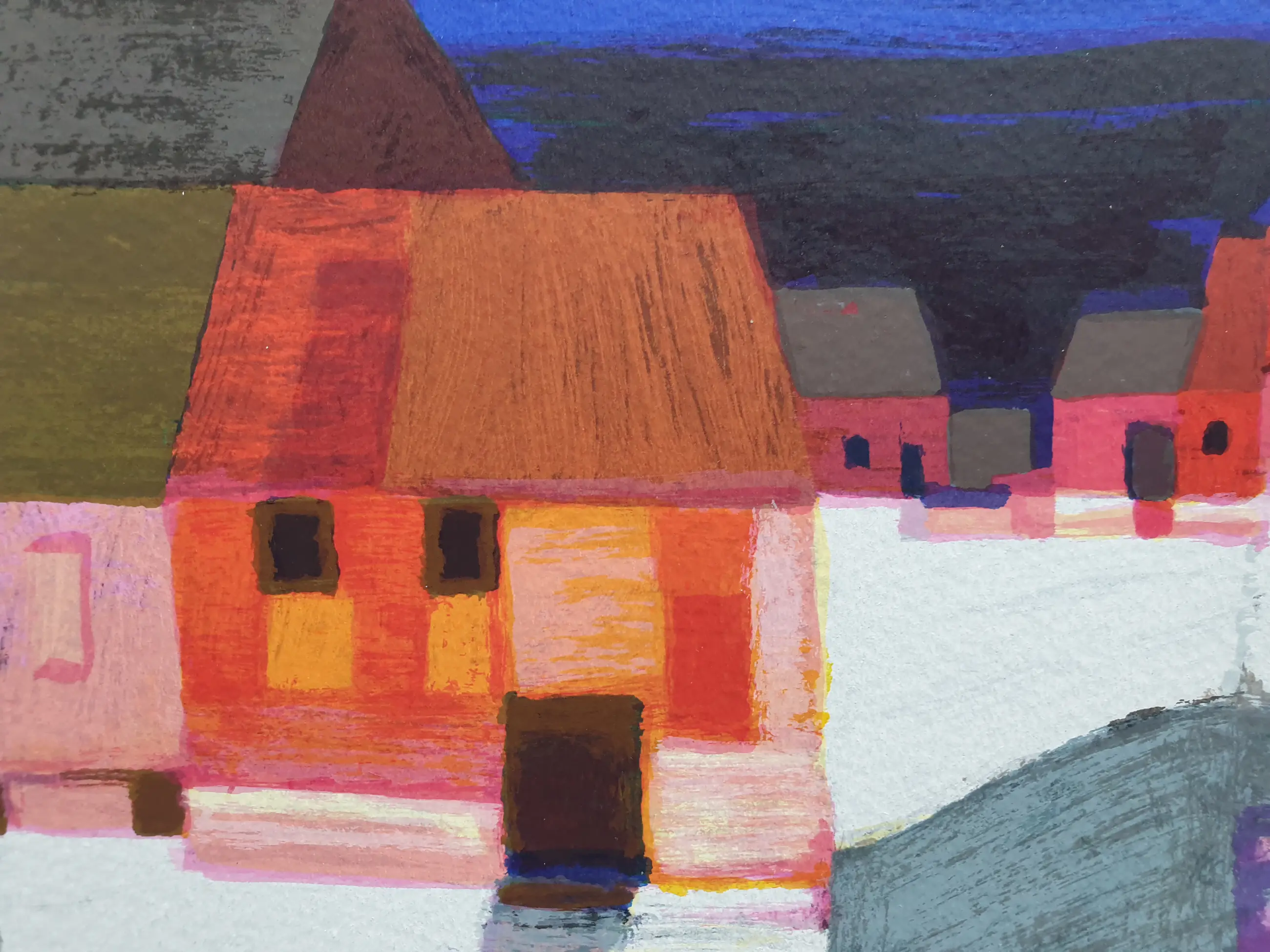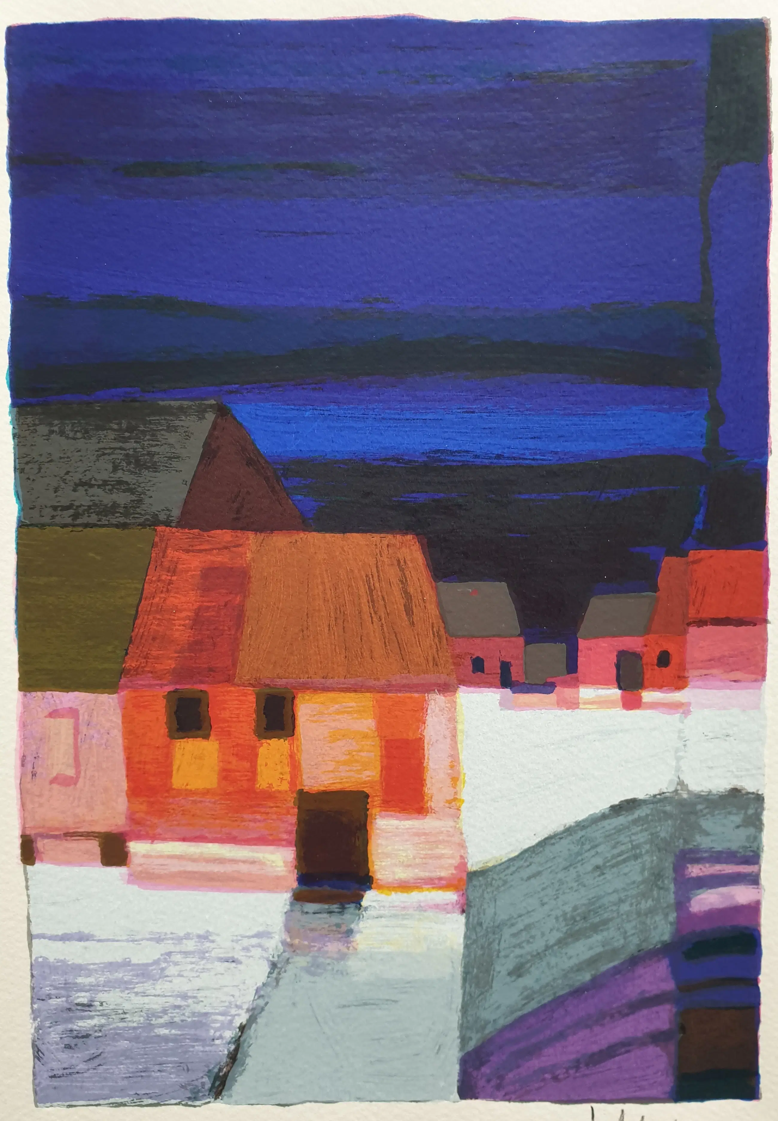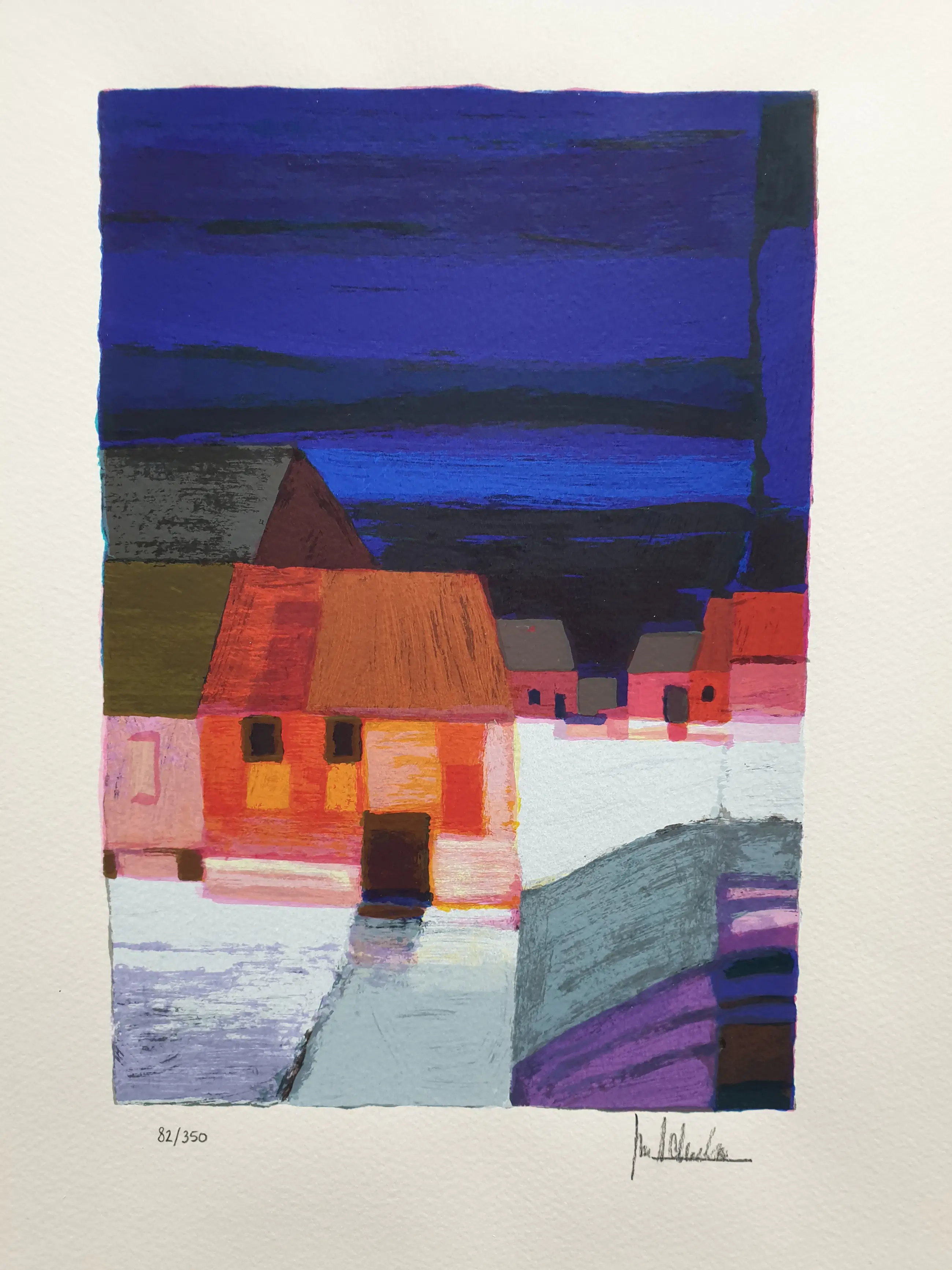 - Ton Schulten 'Dorp in de avond' - Zeefdruk uit 1997 - Gesigneerd en genummerd 82/350 met potlood - Zeer goede staat
