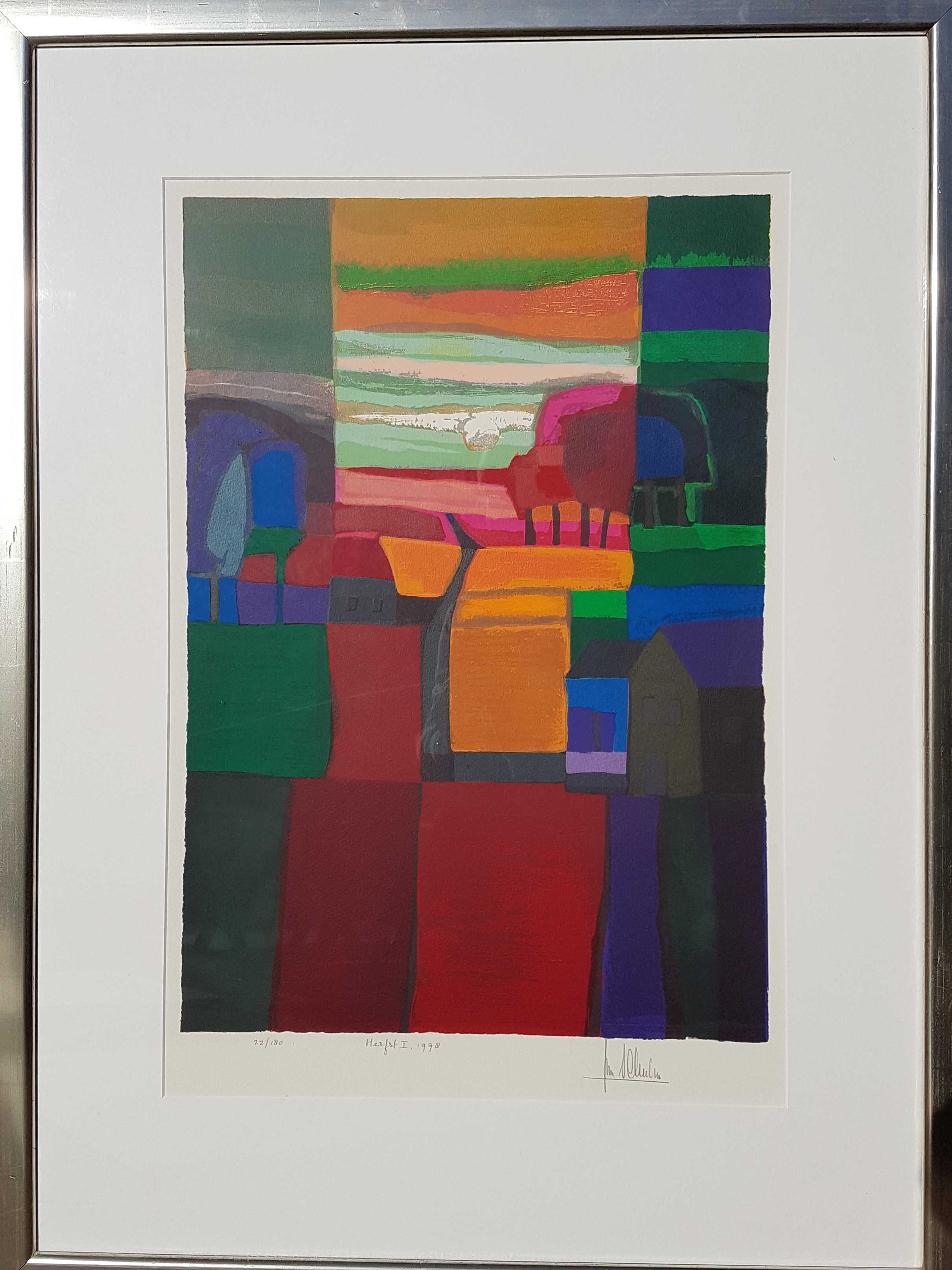 Keurig met passe-partout ingelijste zeefdruk van Ton Schulten uit 1998. Gesigneerd 22/180. Titel: Herfst I. Af te halen in Zwolle (ov)