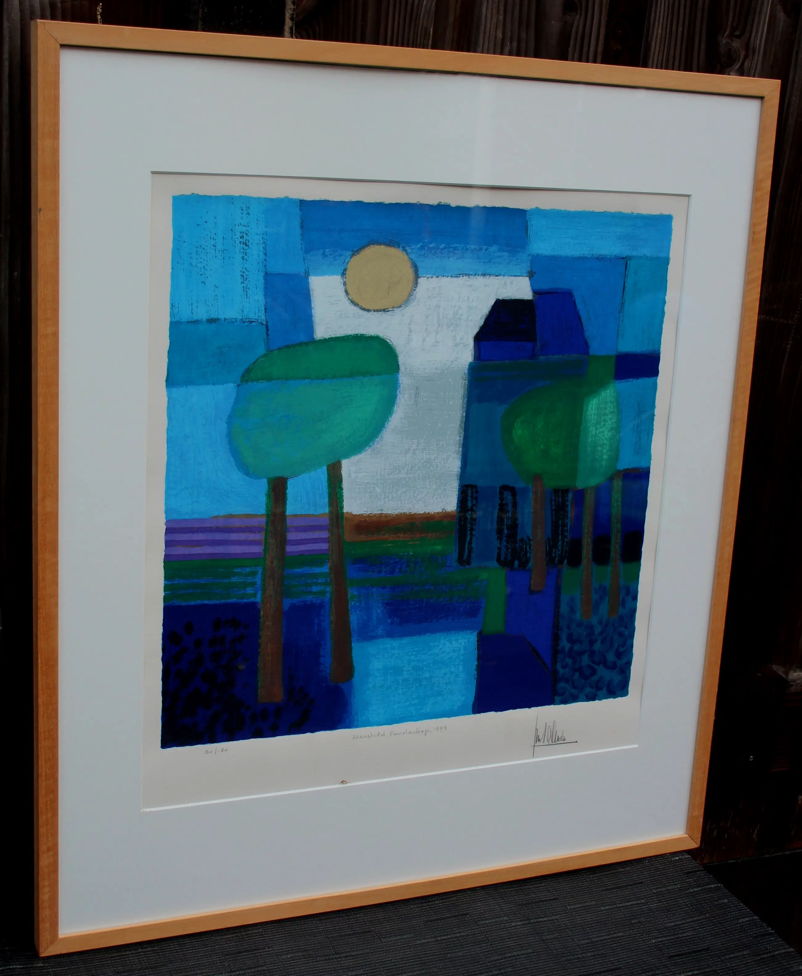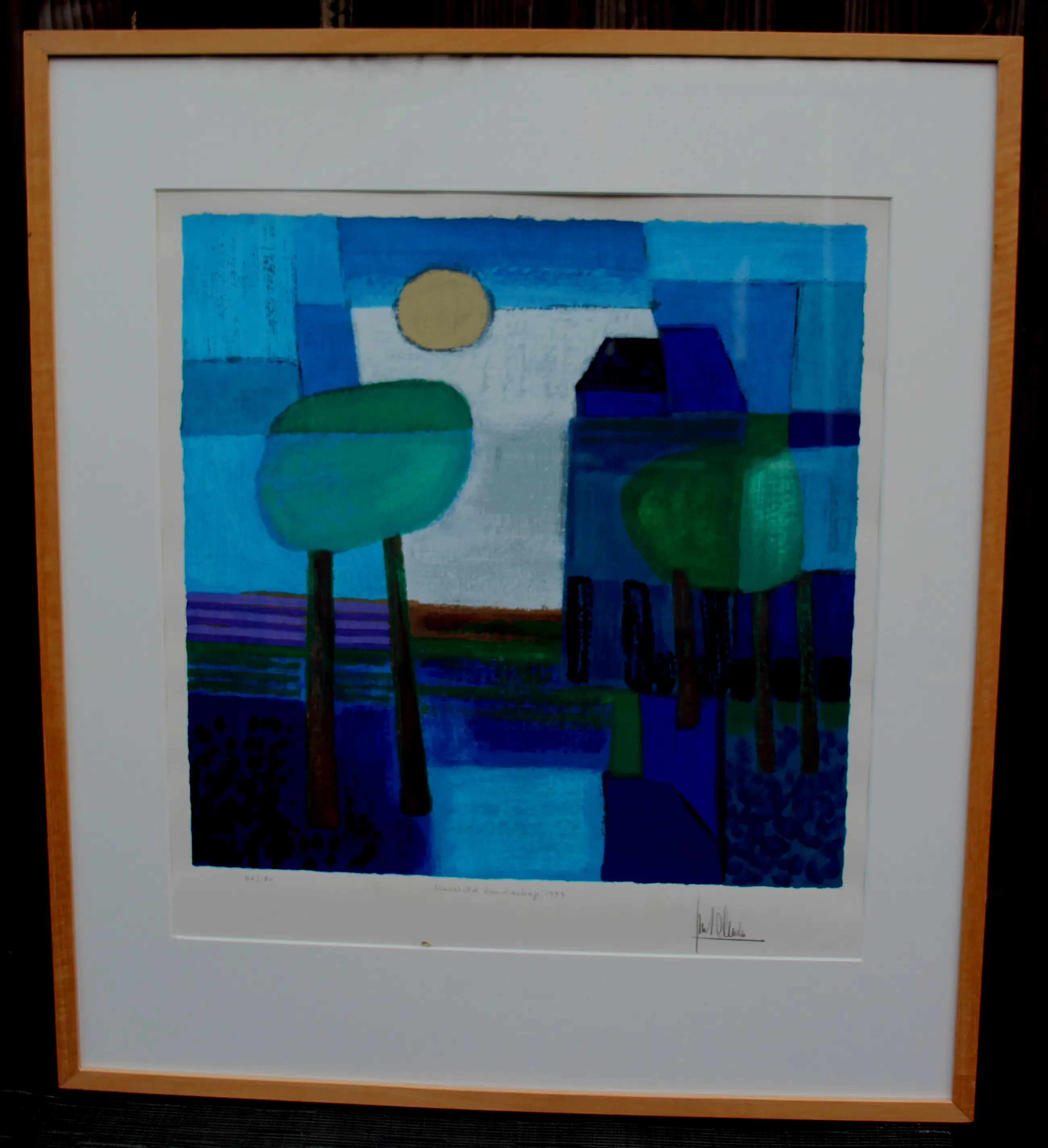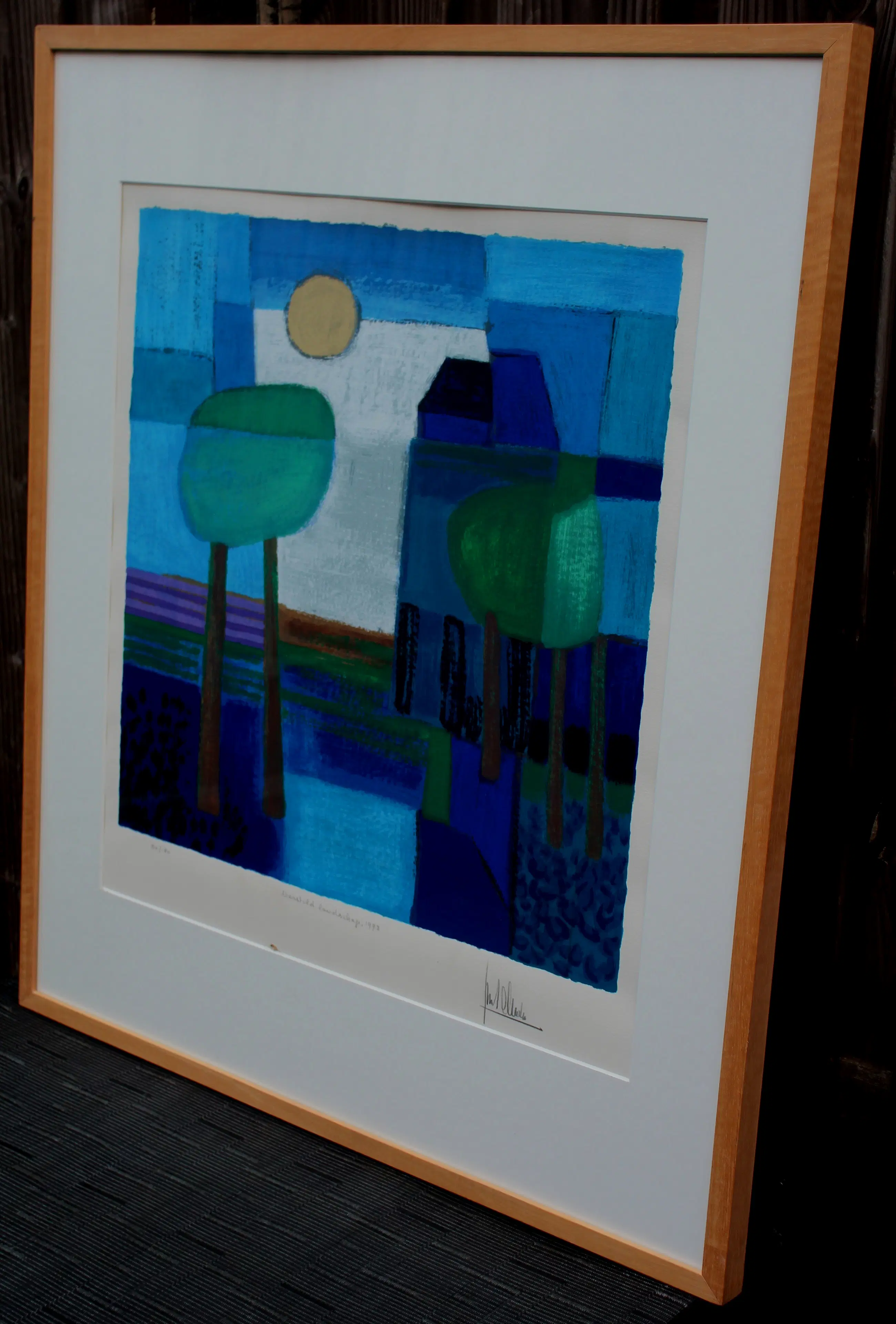 Ton Schulten - Ingelijste kleurenzeefdruk: ''Verstild landschap" - 1993