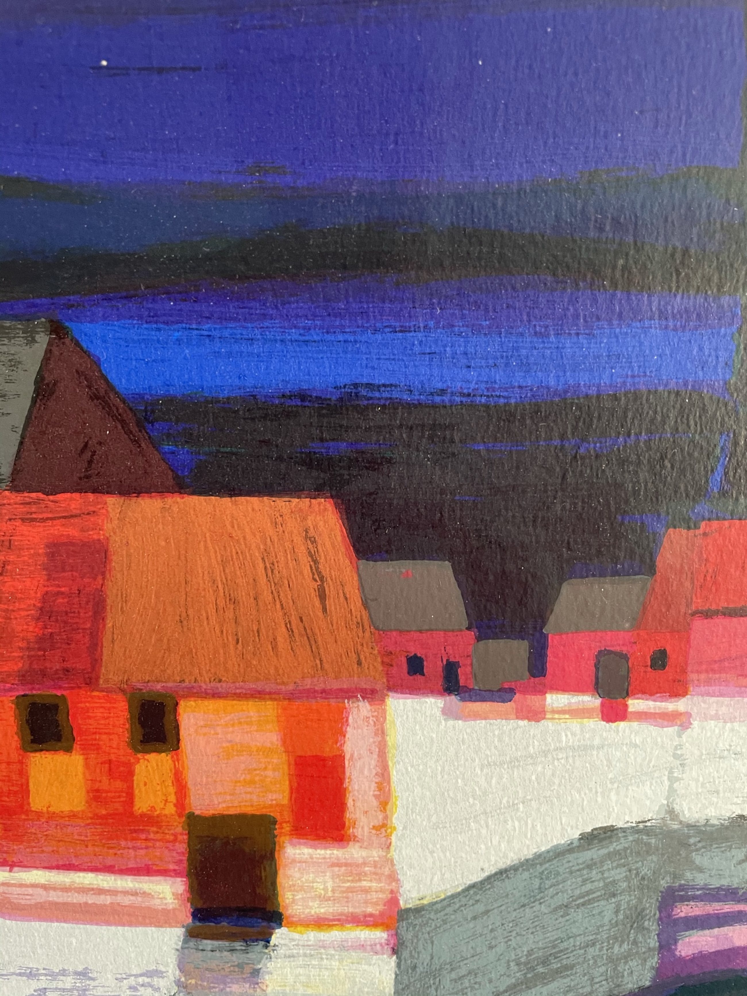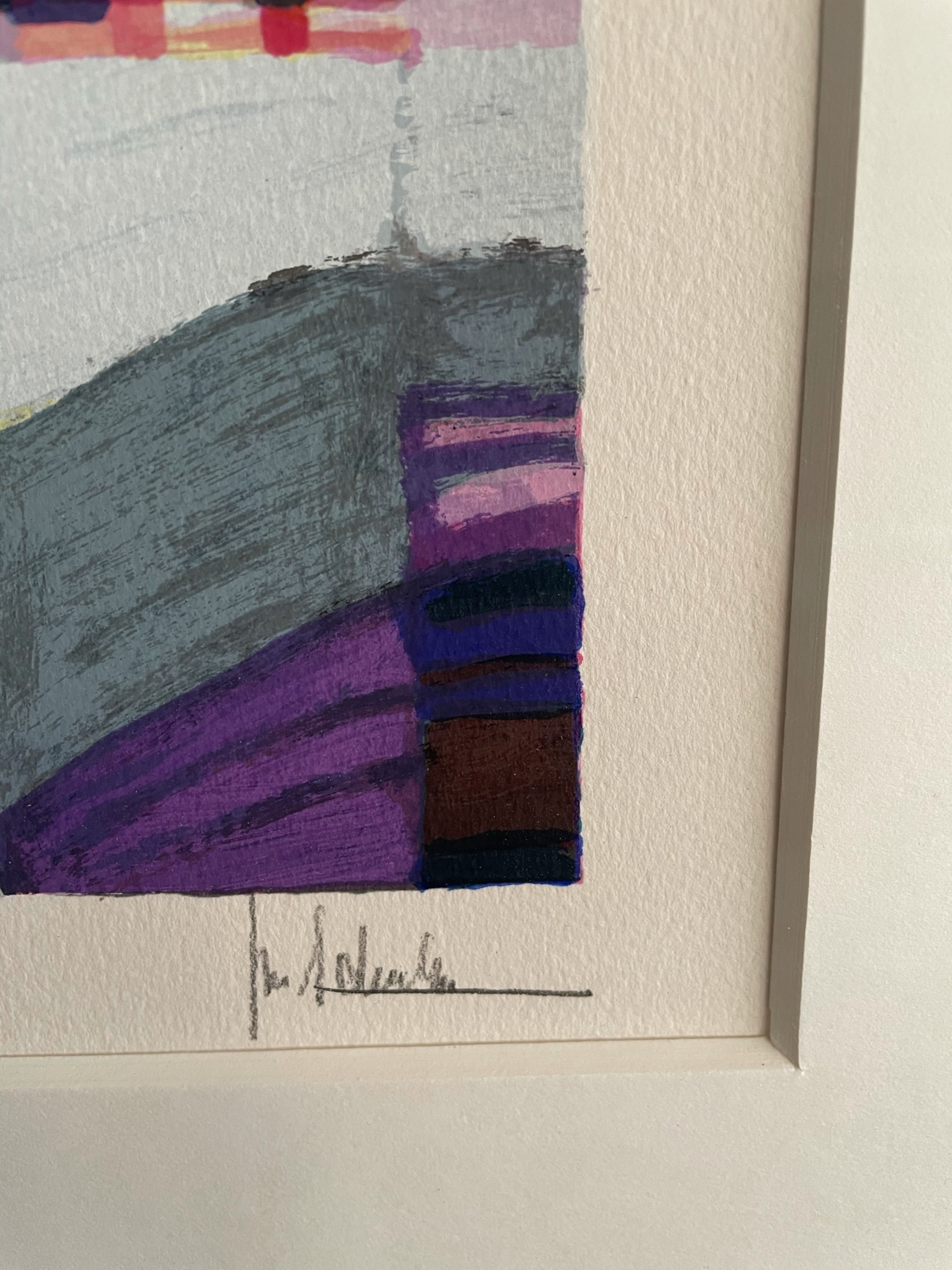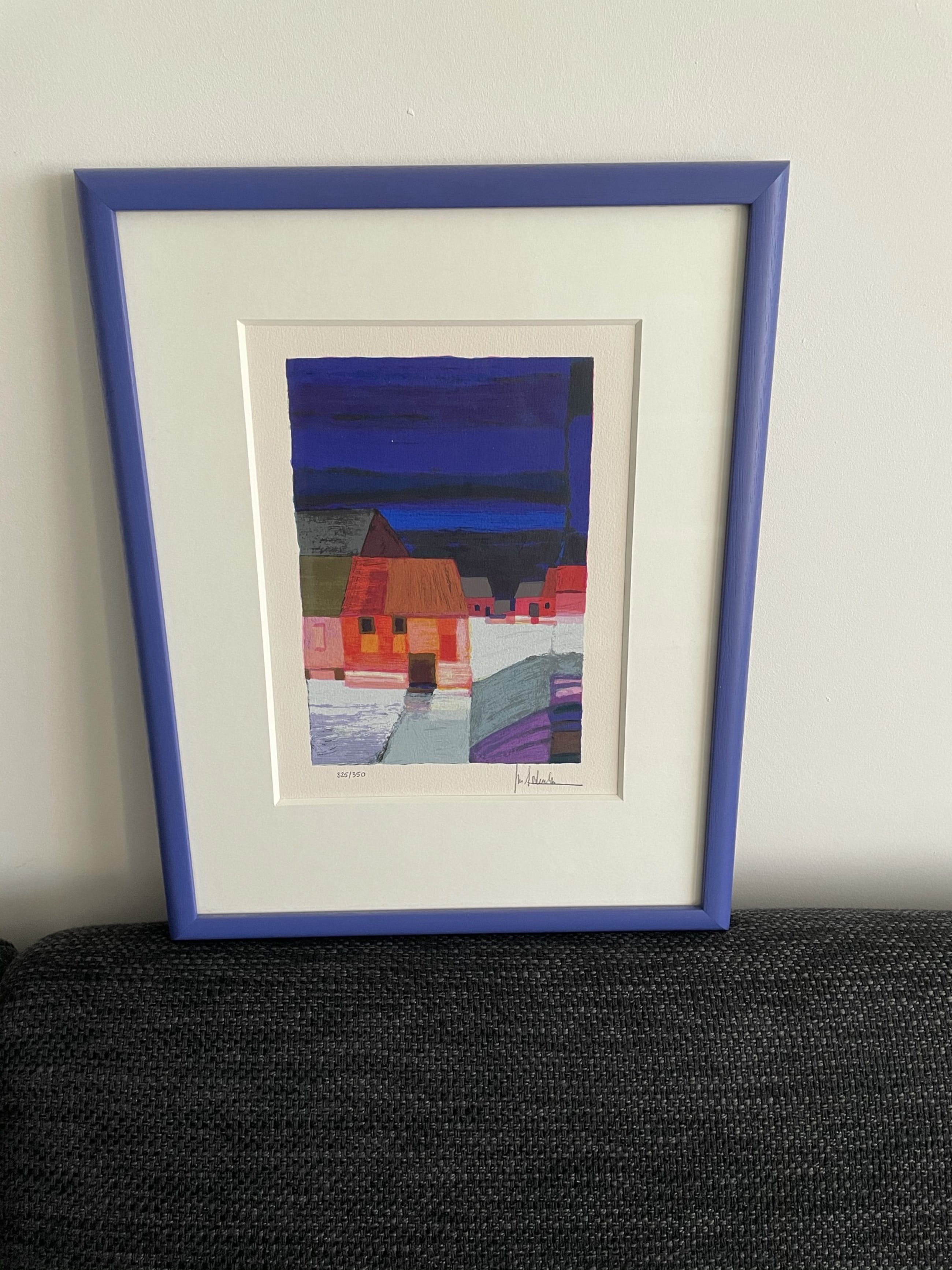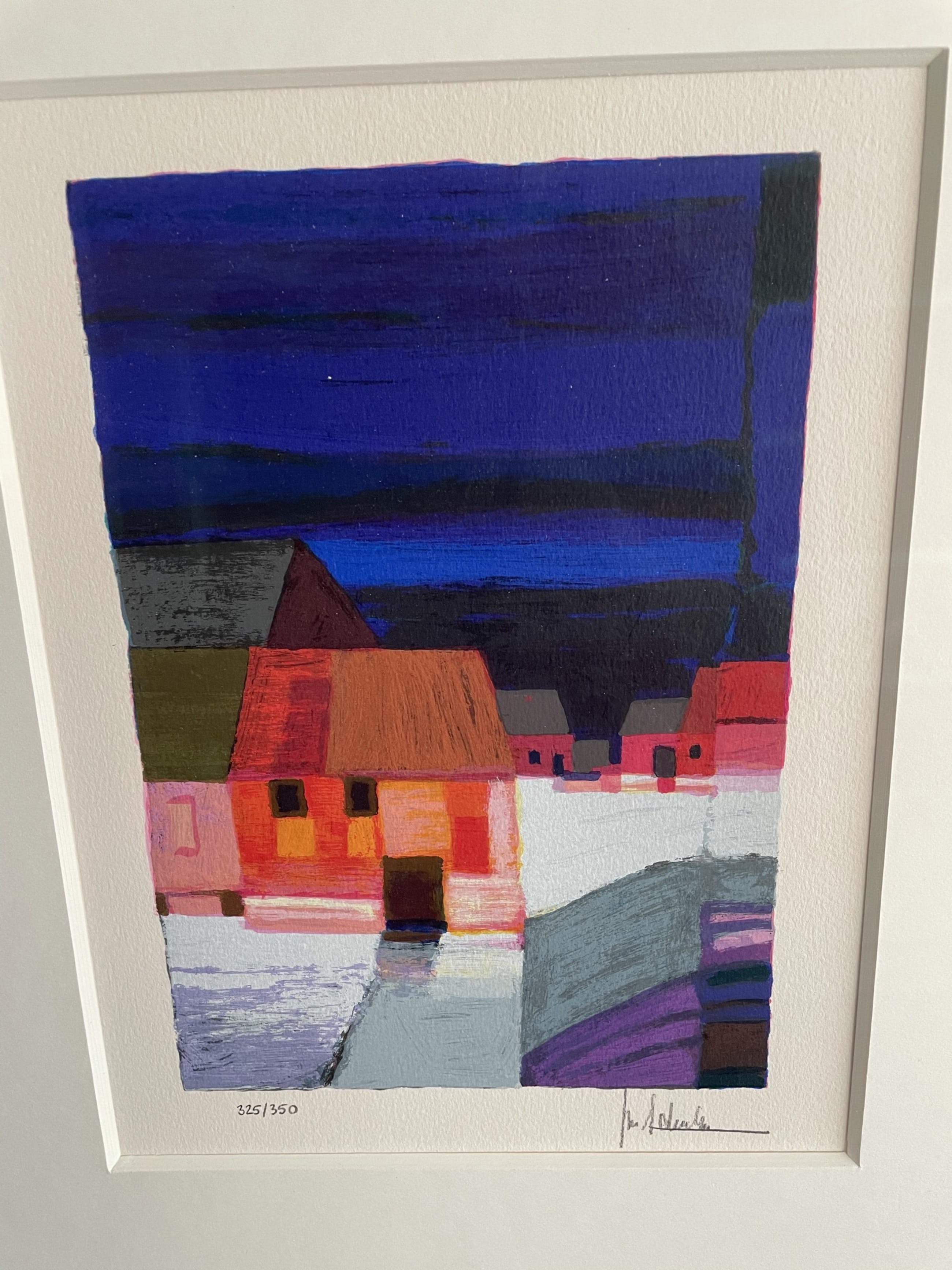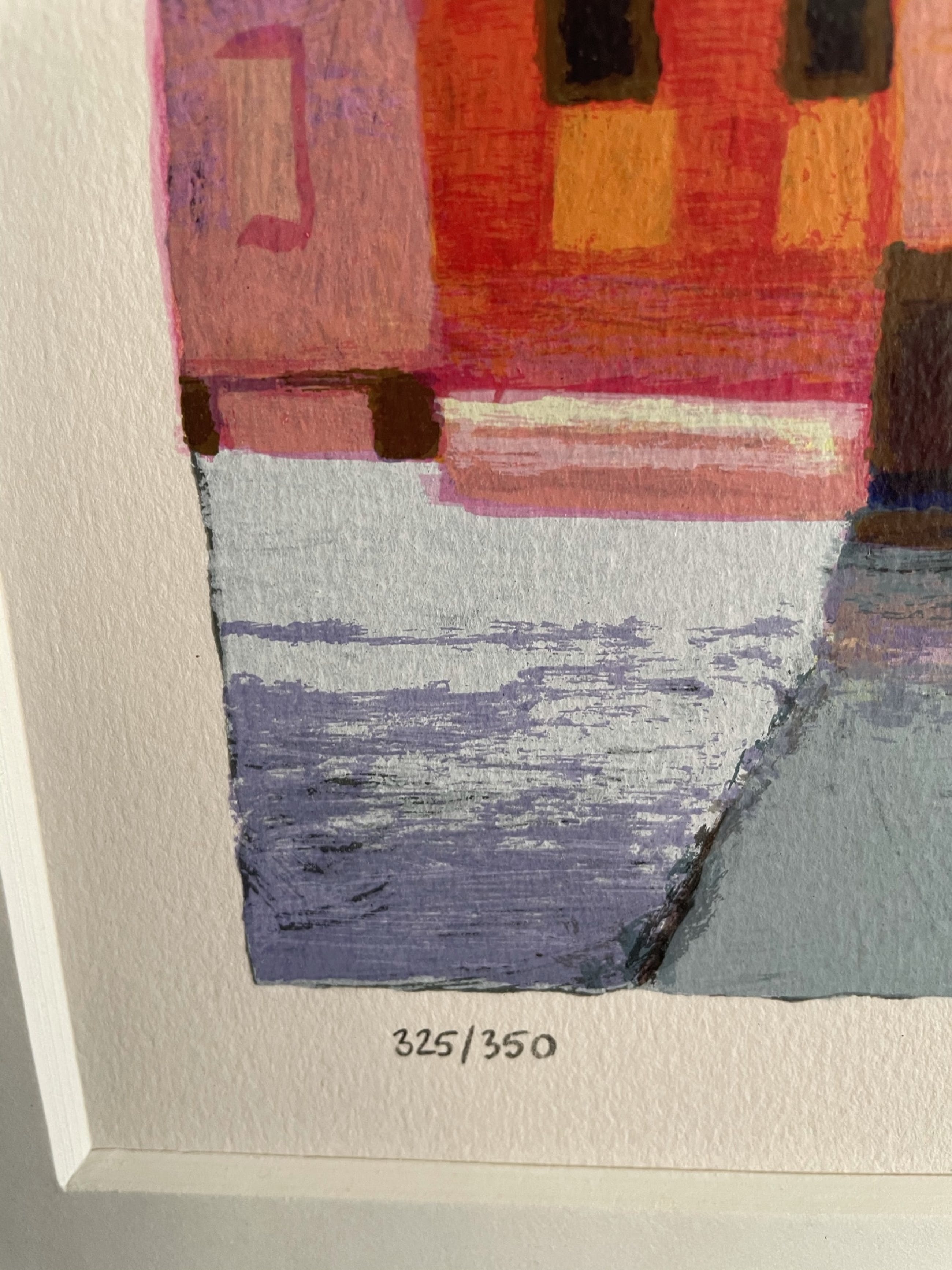 Het bijzondere werk van Schulten komt in deze speciaal in bijpassende kleur gemaakte lijst subliem tot zijn recht. Het werk is typerend voor Schulten. Hand gesigneerd en genummerd in potlood en in onberispelijke staat.