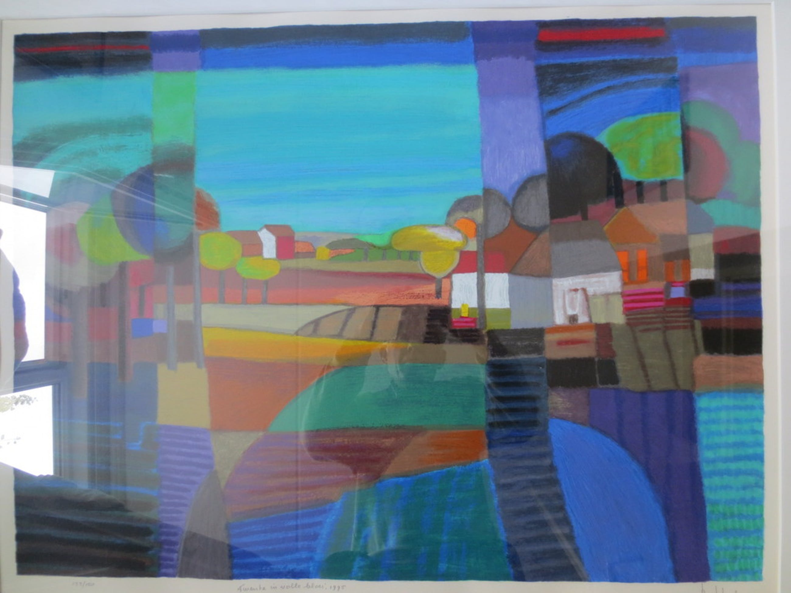 Schitttende grote zeefdruk van Ton Schulten - beeldformaat 62 x 80 cm - formaat 86 x 105 cm - met fraaie paarse brede lijst 3.5 cm -voorfront van paarse lijst 1,5 cm - zwart 2,5 cm- oplage 133/150 - 1995 - prima staat