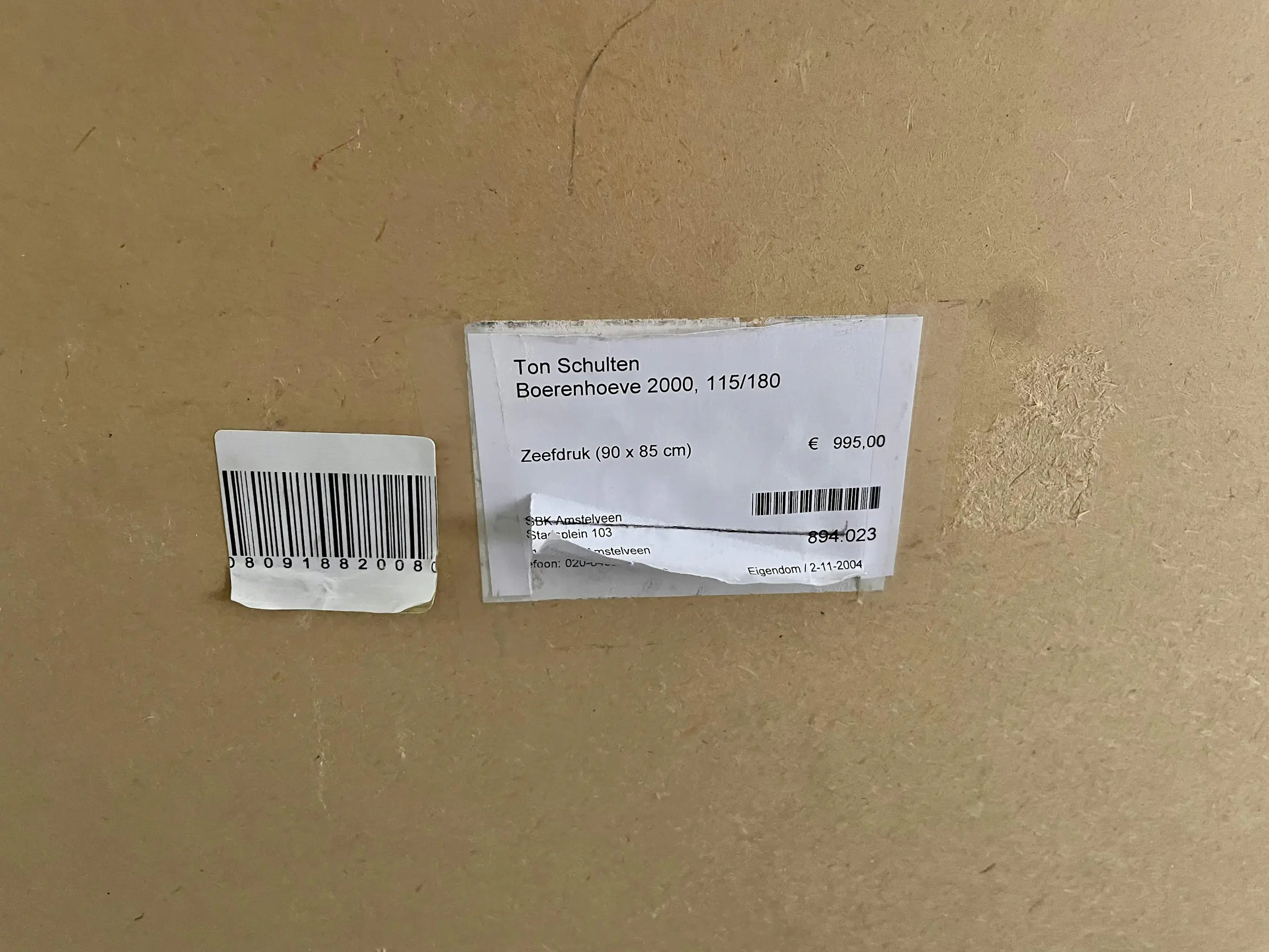 Het werk is af te halen op locatie. Als koper dient u zelf verpakkingsmateriaal mee te nemen. De locatie is: Leiderdorp, Nederland