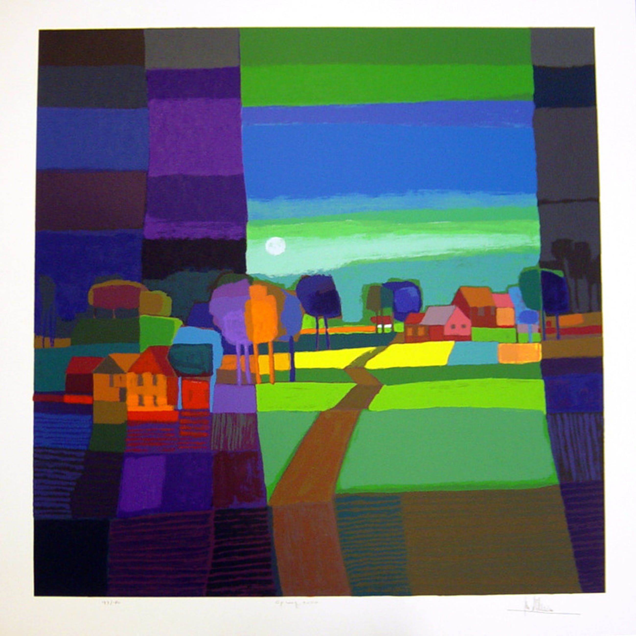 Prachtige grote zeefdruk van Ton Schulten. Nr 177/180. Beeldformaat 80x80 cm. Inlijstmaat 107x105 cm. Dit werk is nooit ingelijst geweest en overal uitverkocht. Op de site van Schulten worden zeefdrukken in inlijstmaat 98x92 cm ingelijst aangeboden voor € 1710,- tot € 1790,- In verband met afbouw Heyster'Art wordt dit werk nu aangeboden voor de minimale prijs van € 495.-