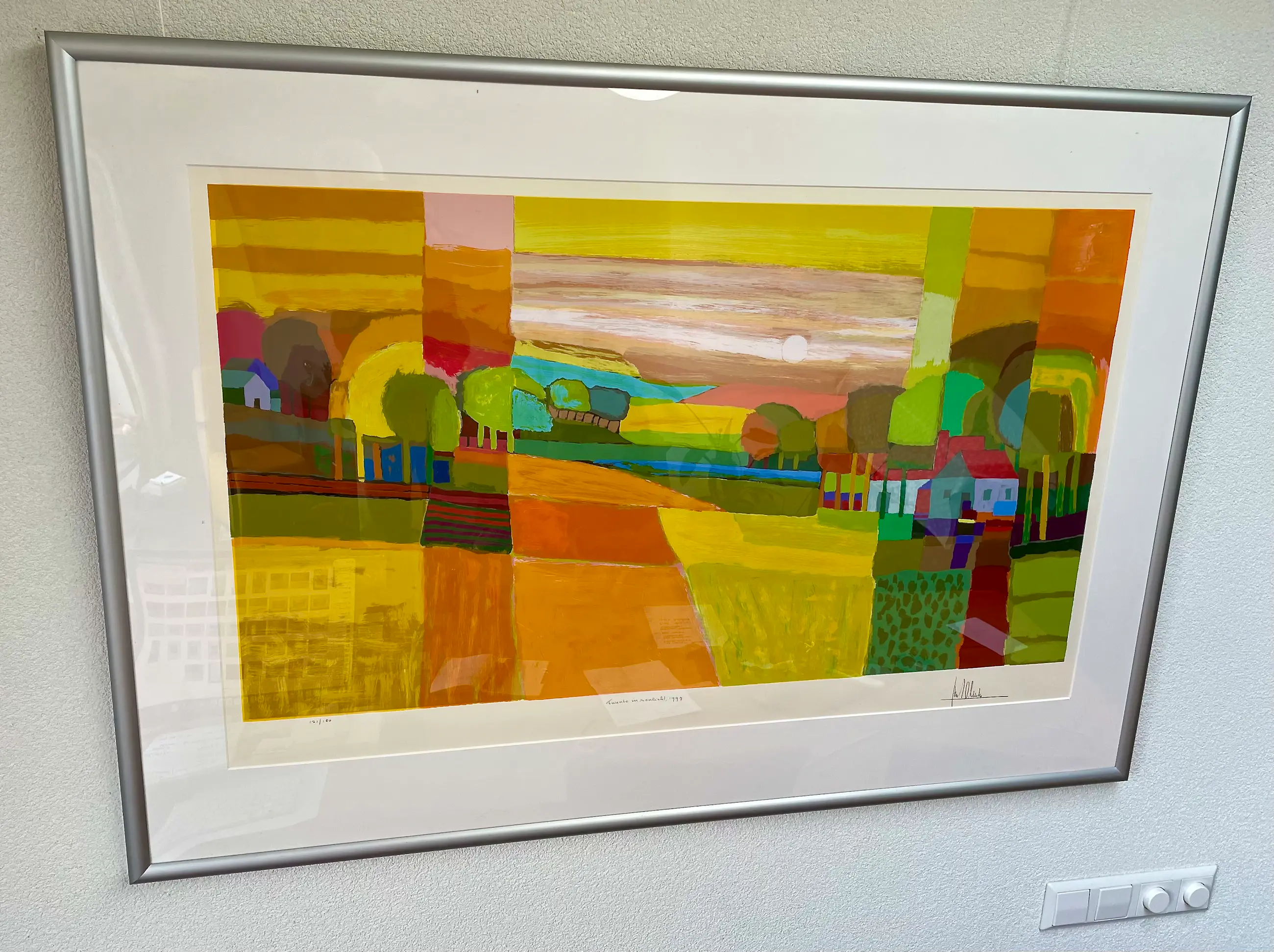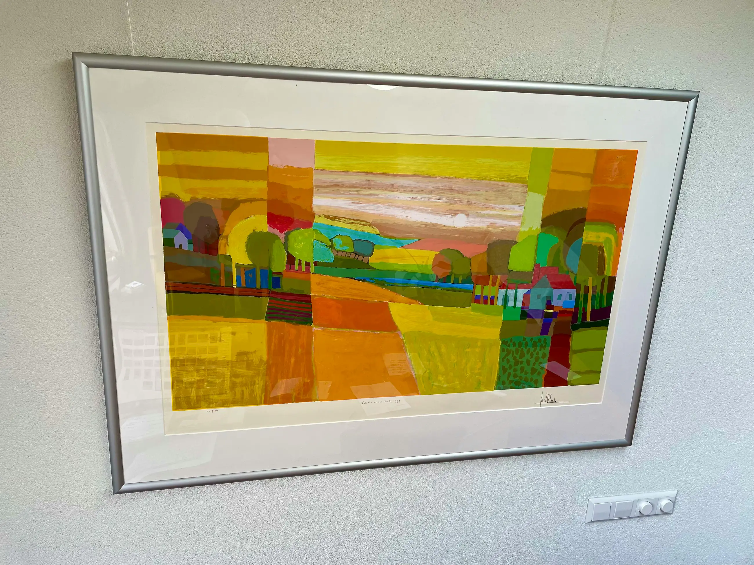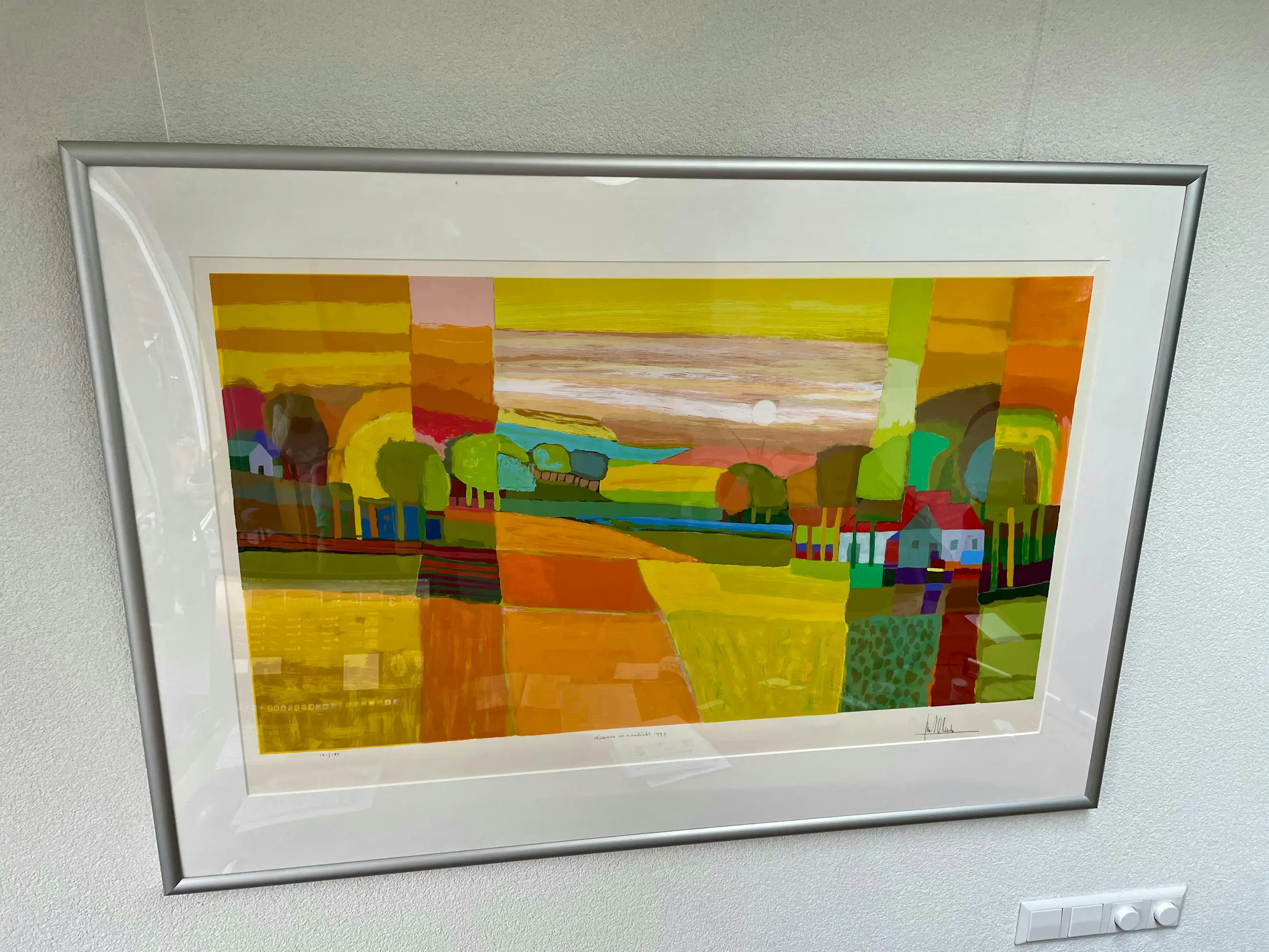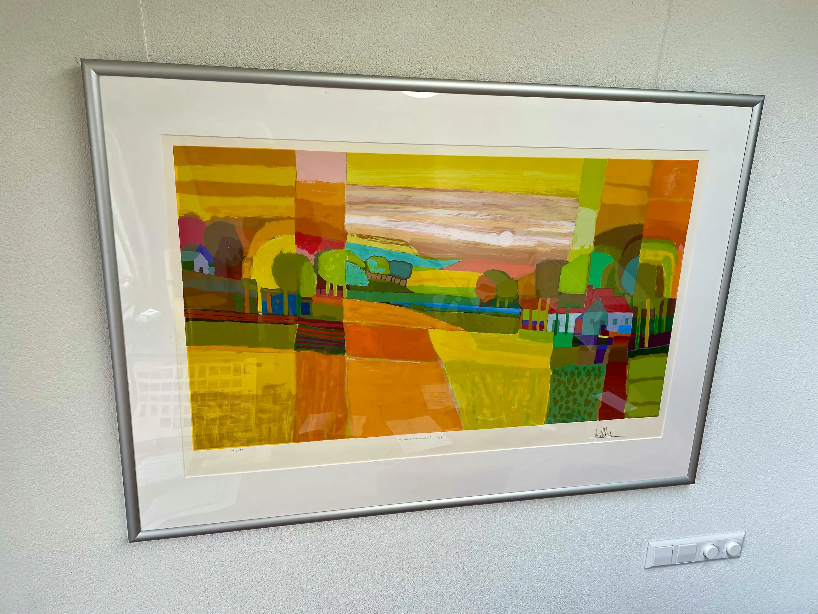 * Jaartal: 1997 * Techniek: Zeefdruk * Drager: Papier * Stijl: Abstract * Onderwerp: Landschap * Ingelijst: Ingelijst * Afmetingen: 67 x 115 cm (h x b) * Incl. lijst 88 x 130 cm (h x b) Gesigneerd: Handgesigneerd Oplage: 121 van 180