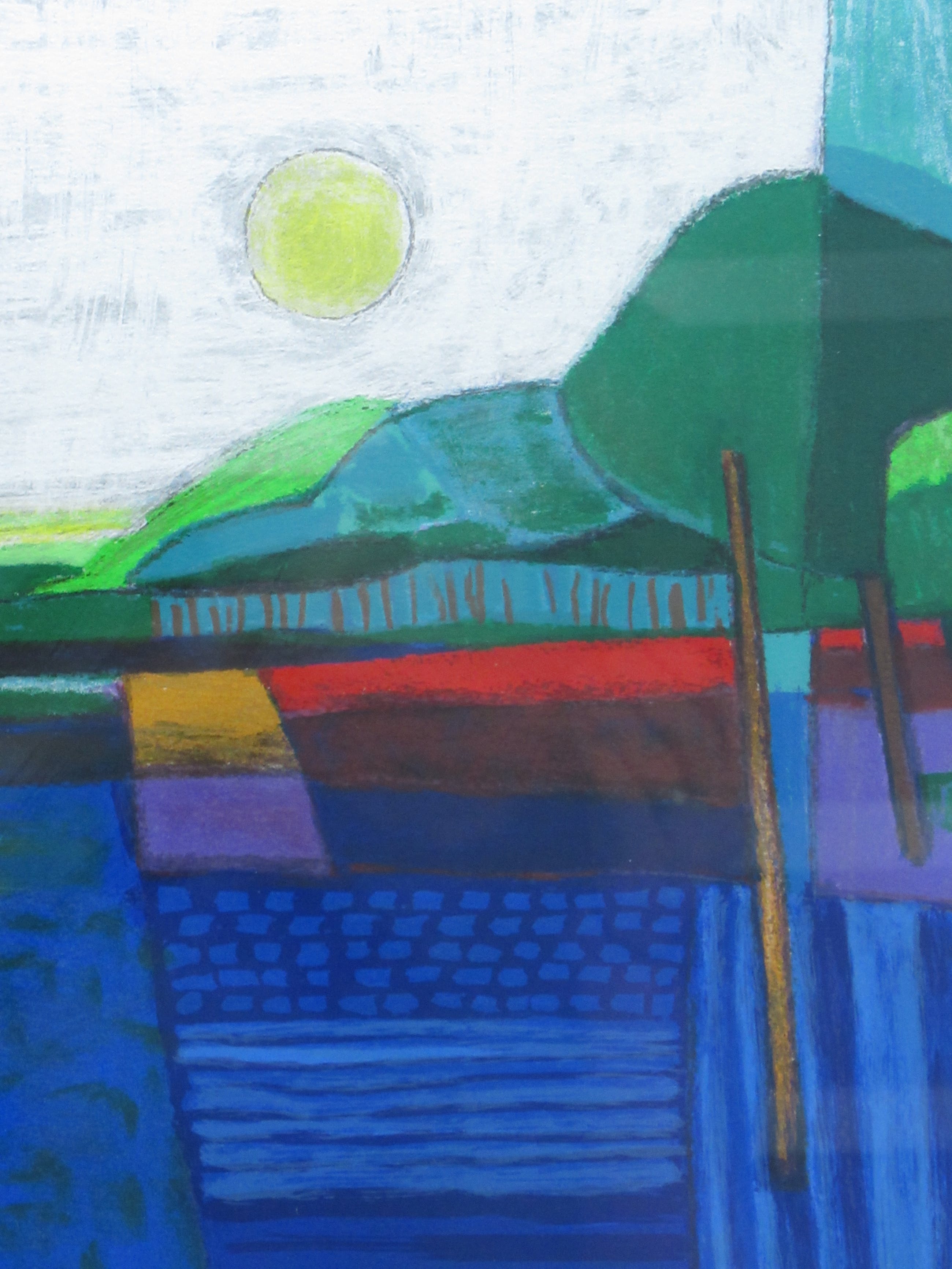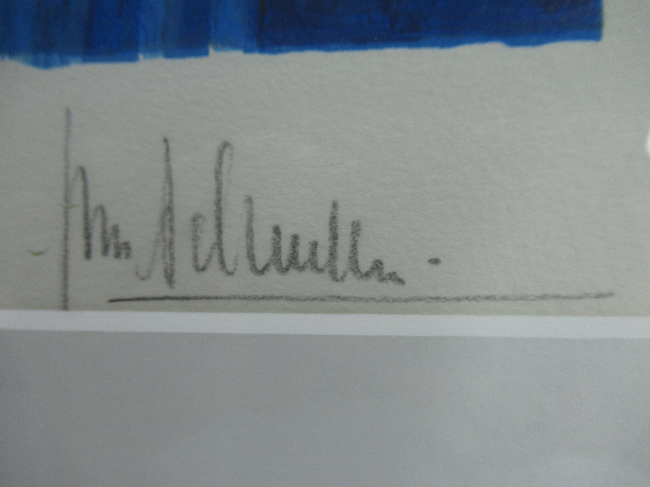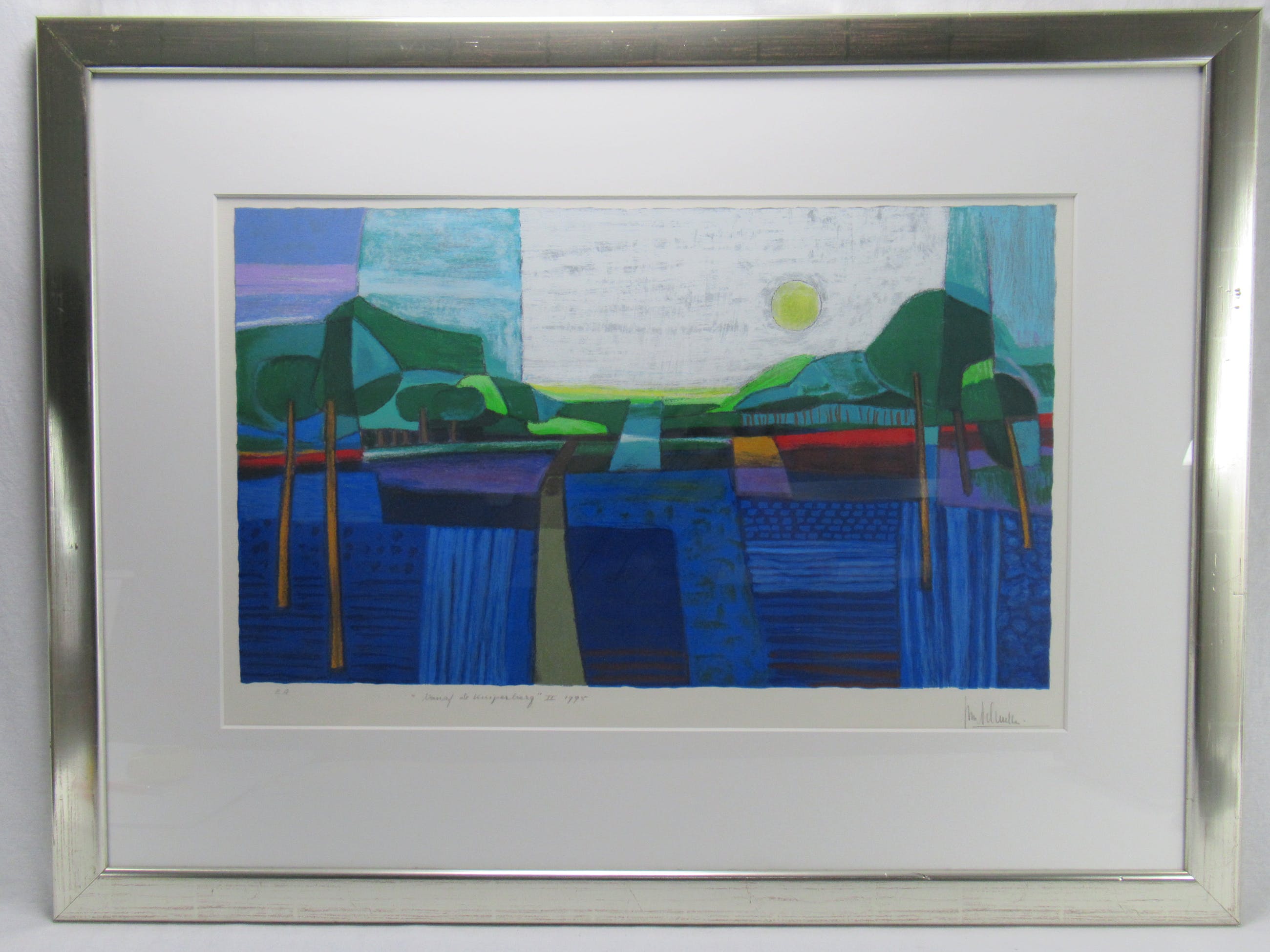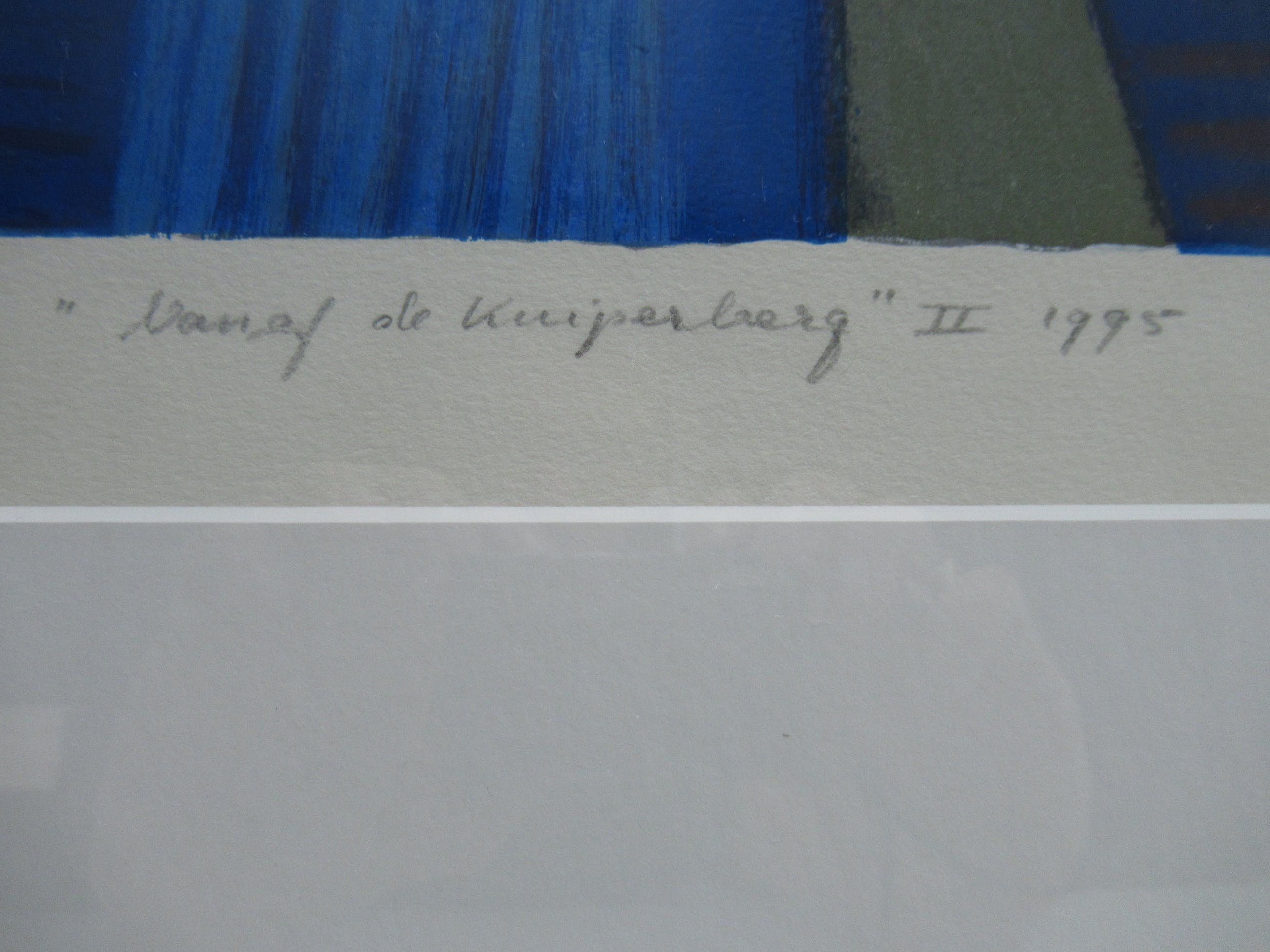 Prachtige heldere kleuren op deze moderne zeefdruk van Ton Schulten.In zeer goede staat in een strakke zilverkleurige lijst. Groot werk.Dit werk betreft een EA druk. Dit is een druk voor de kunstenaar zelf.