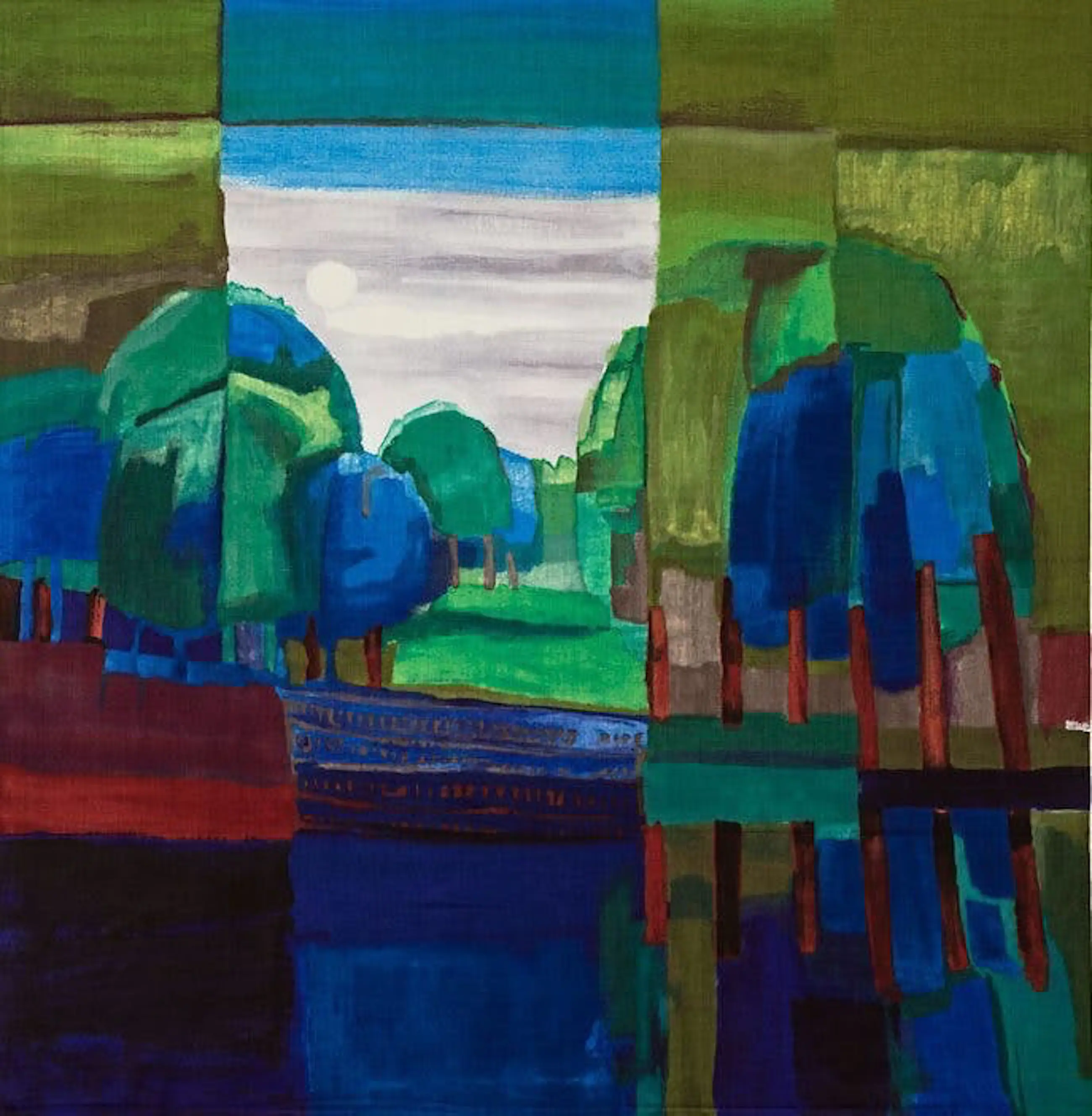 Texoprint bv vroeg jaarlijks een kunstenaar voor de vervaardiging van een zeefdruk op zijde. Titel: AT THE LAKE uit 1988 Afmeting zijde,op karton gespannen 74x74 cm in perfecte staat(kan zo worden ingelijst) Oplage 200 exemplaren,niet genummerd Het werk is in de druk gesigneerd.