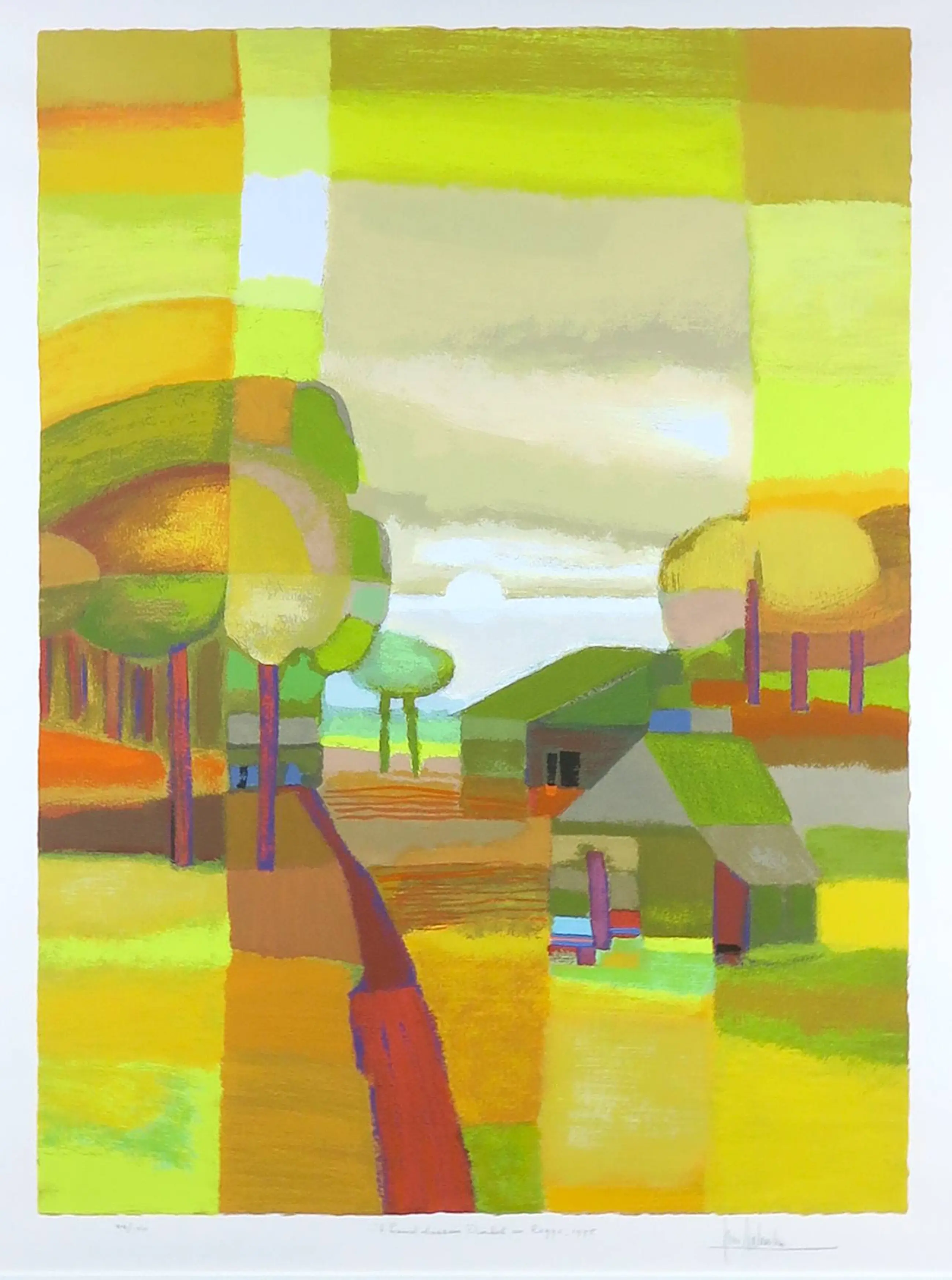 Zeer grote, fraai ingelijste zeefdruk van Ton Schulten.