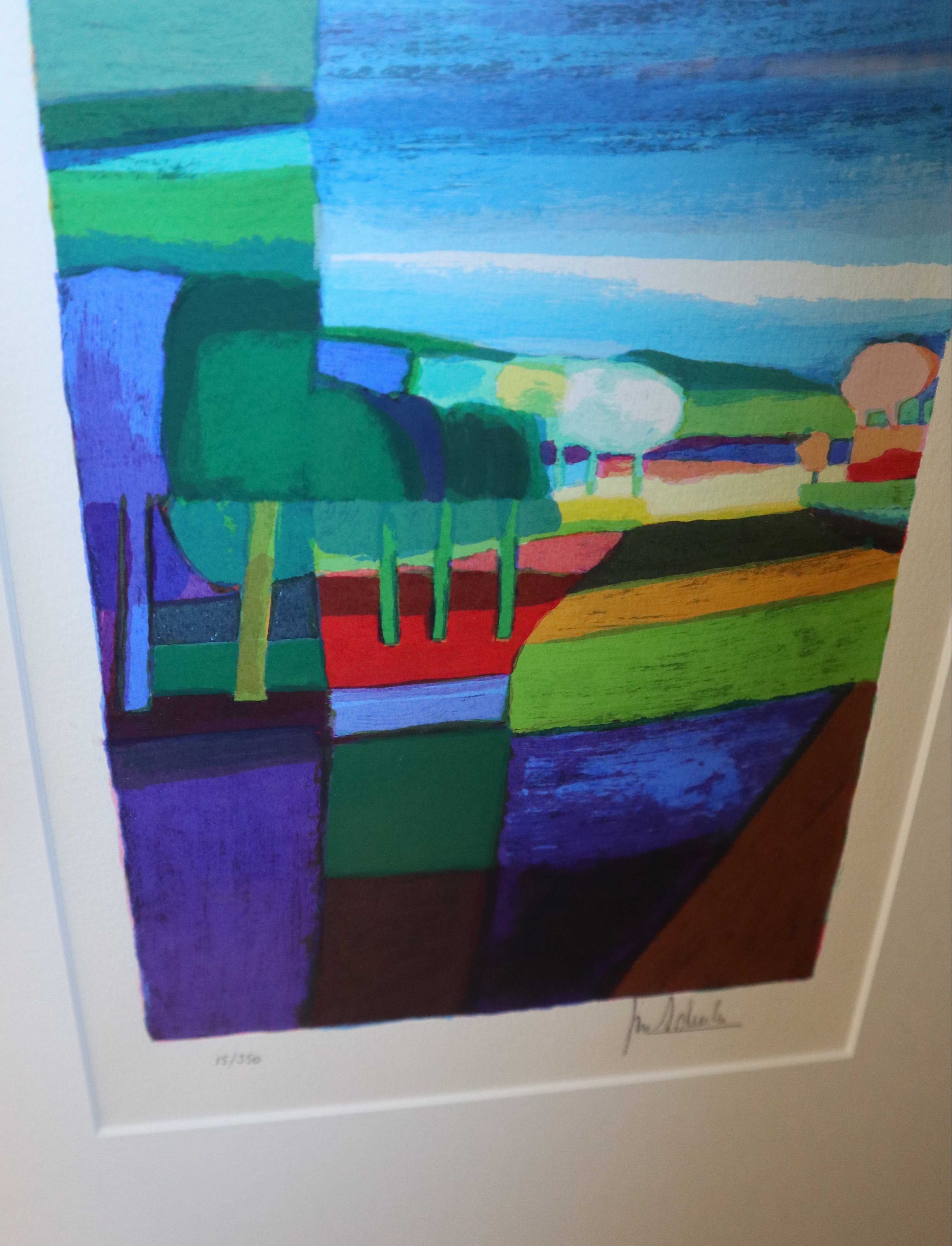 Karakteristiek werk van Ton Schulten, gemonteerd in smetteloos dubbel passe-partout. Met potlood gesigneerd en genummerd (15/350).